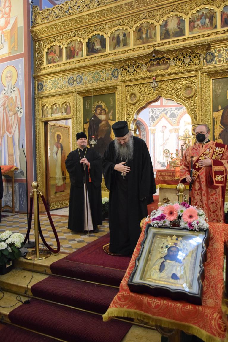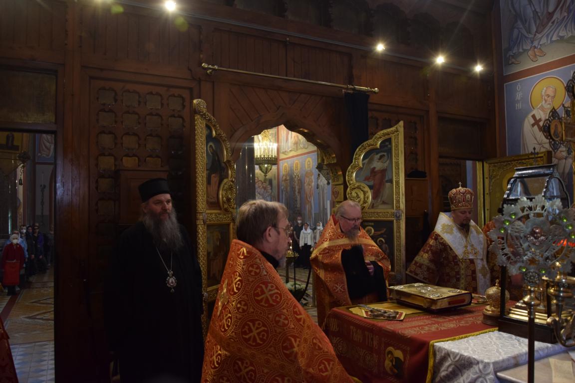 После службе, Преосвећени Епископ Алексеј је за Владику Андреја приредио братски пријем и пасхално послужење.