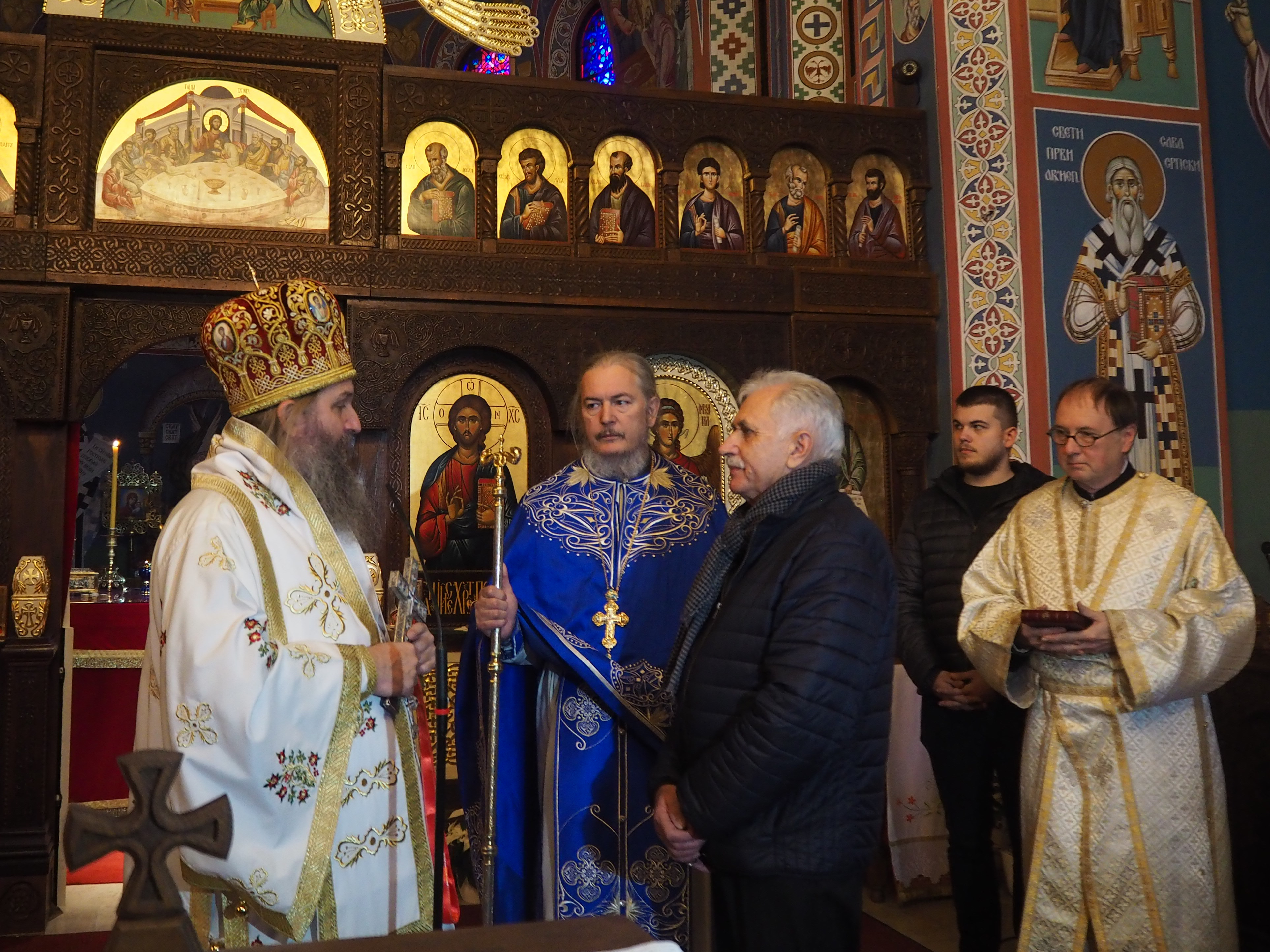 Вредни парохијани су у парохијској сали припремили трпезу љубави на којој се поред конзумирања квалитетне хране могло чути и много мудрих речи. Прота Драган је упознао Епископа Андреја са активностима које се ових дана спроводе на уређењу црквеног дворишта а и о плановима у наредном периоду.