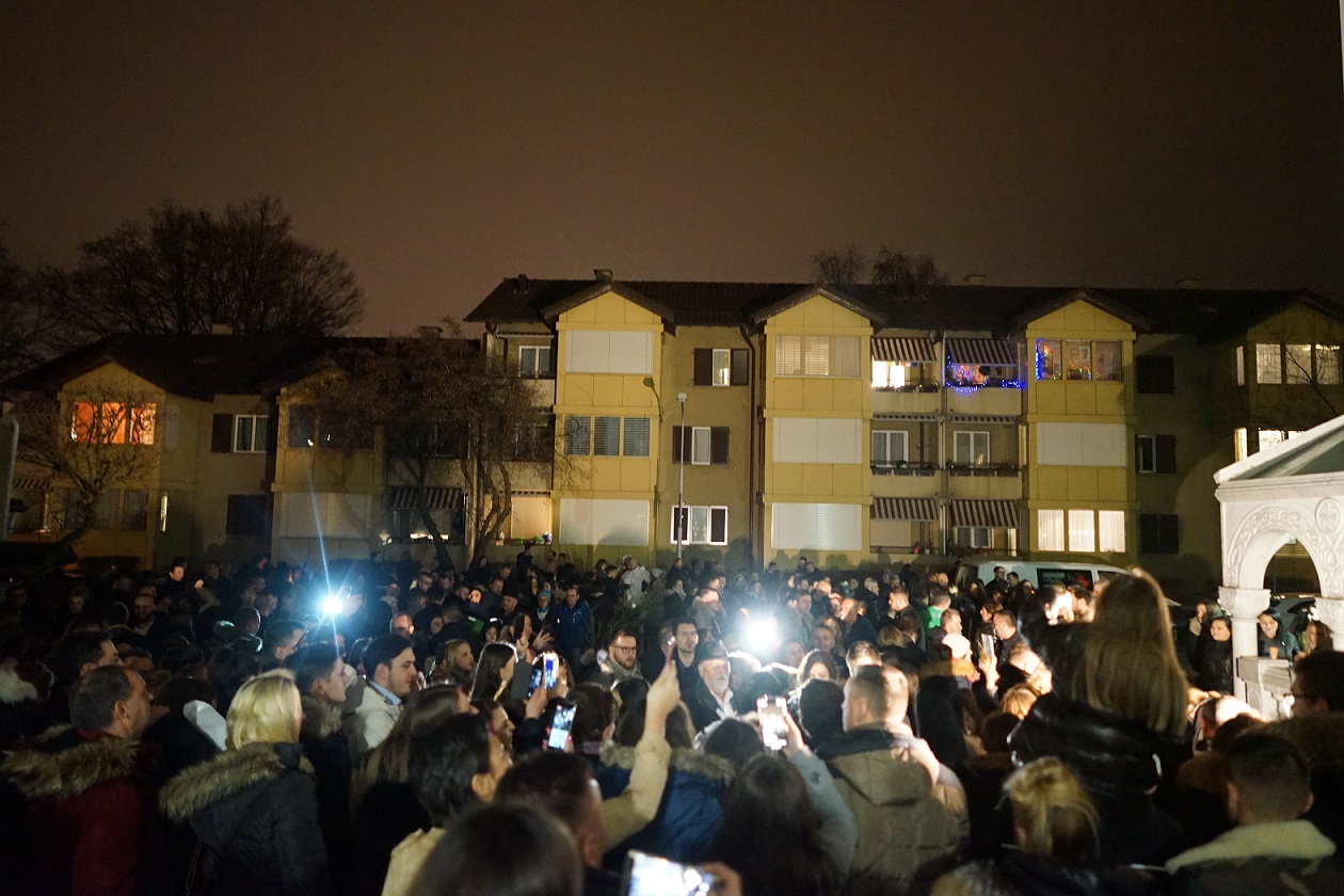 Домаћини славе, брат и сестра Богдан и Јована Топаловић са Ирином и Софијом Симијоновић, предали су део славског колача Марку Пешићу, који ће следеће године бити кум хорске славе.