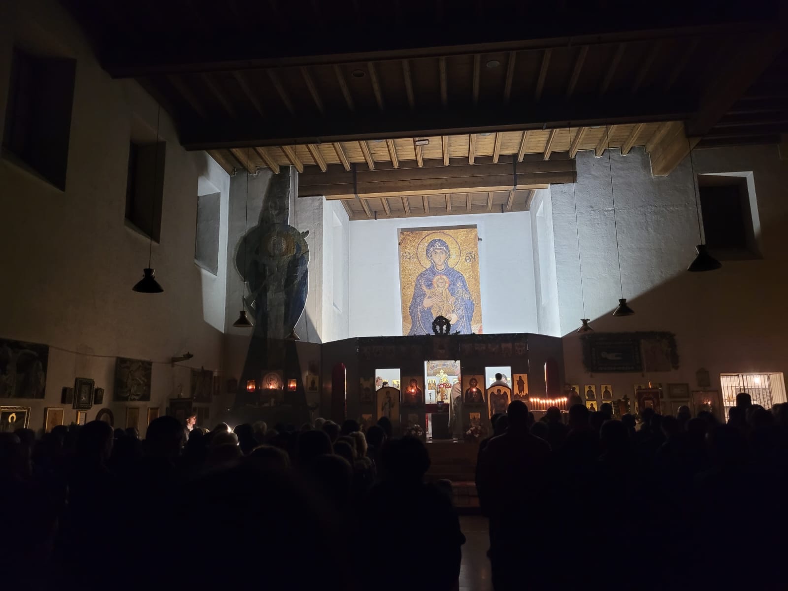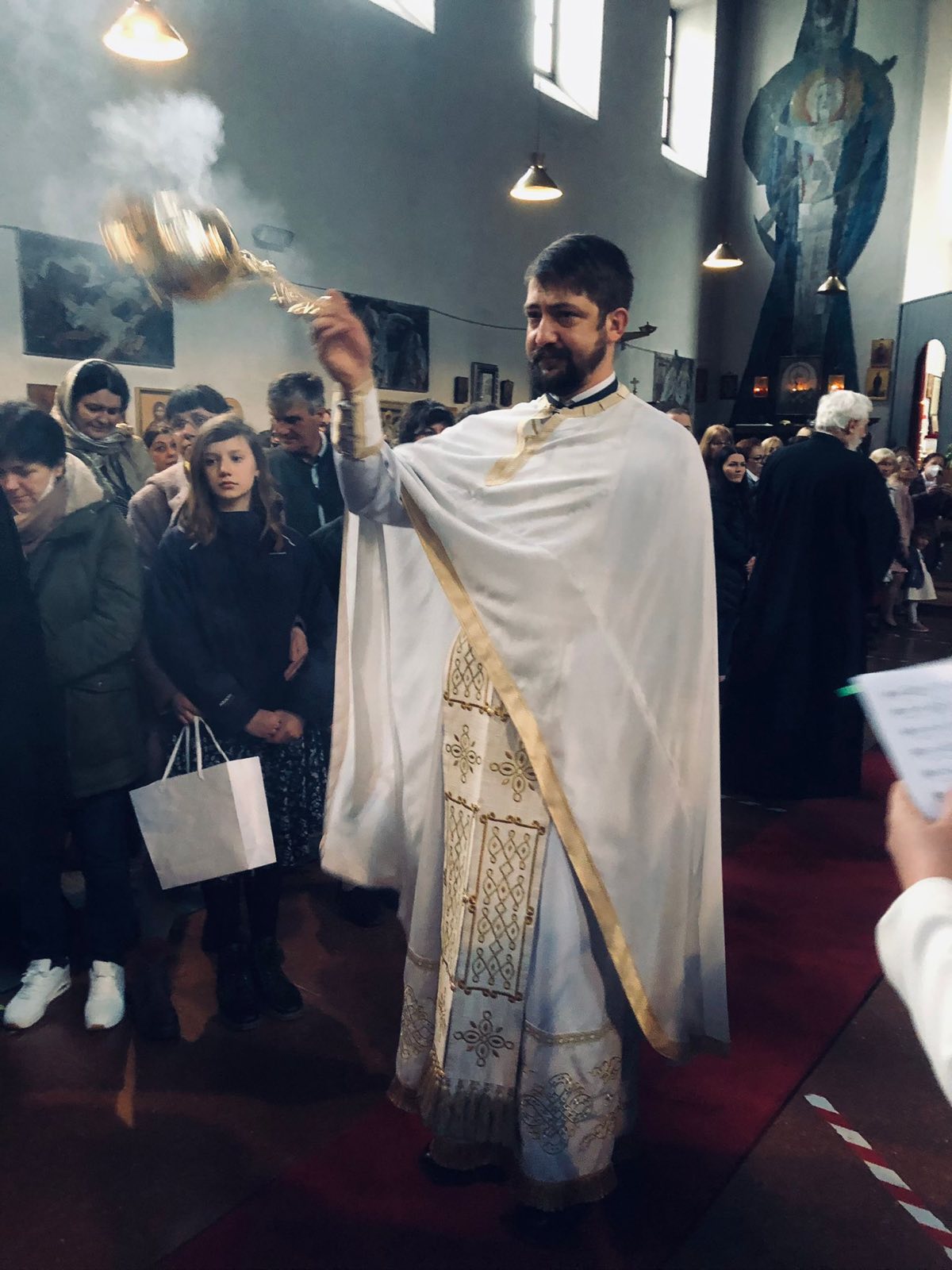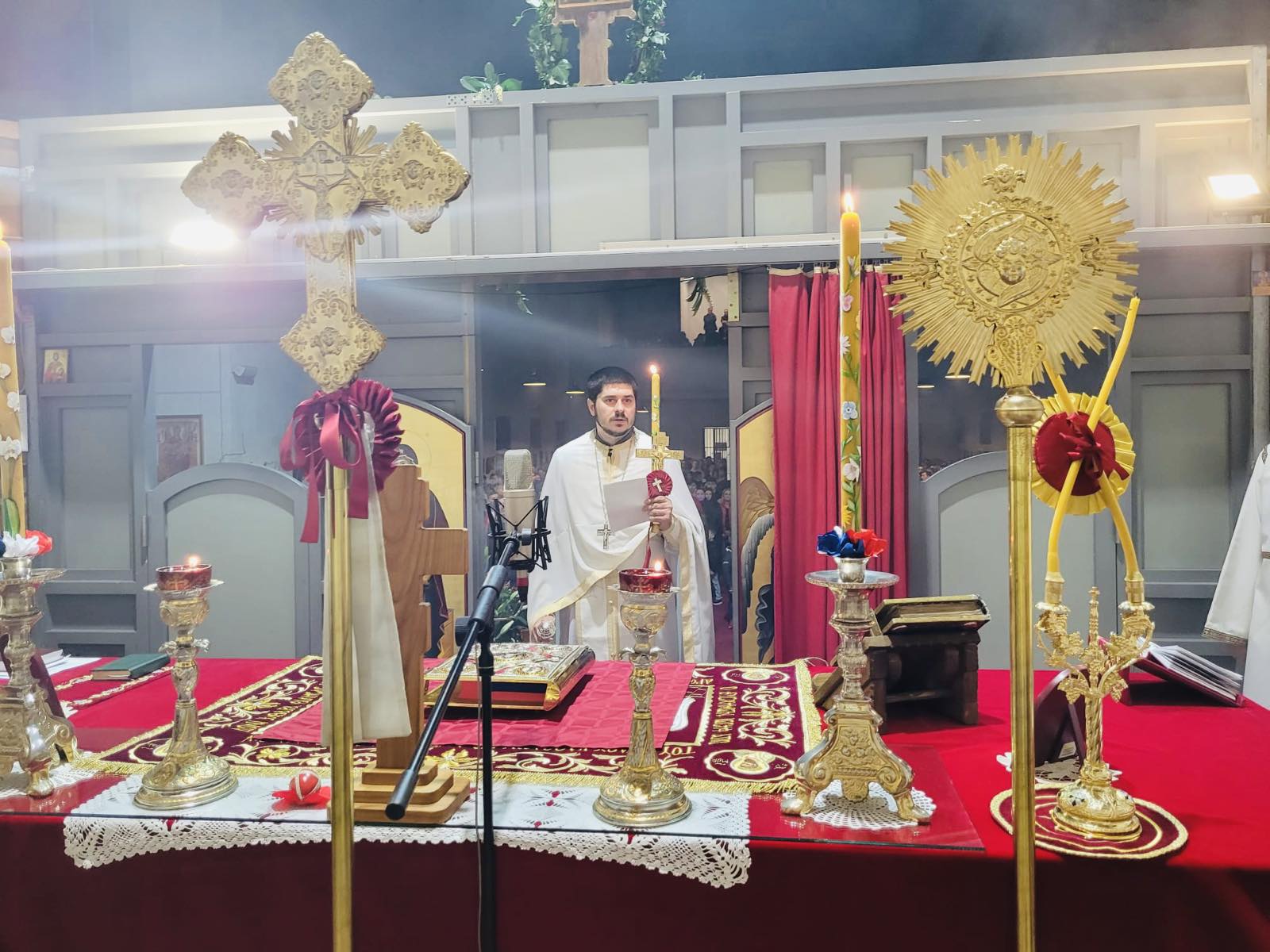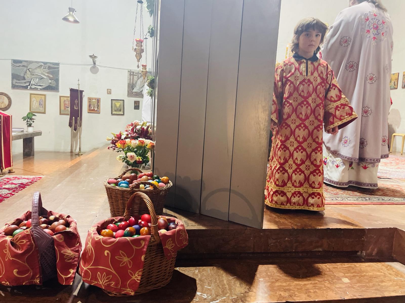 Такође су претходну ноћ, а тачно у поноћ, празничну Васкршњу Литургију одслужили украјински свештеник о. Сергиј Шулгах, заједно са свештенством Богородичиног храма, дочекавши уз присуство мноштва народа славно Васкрсење Христово.