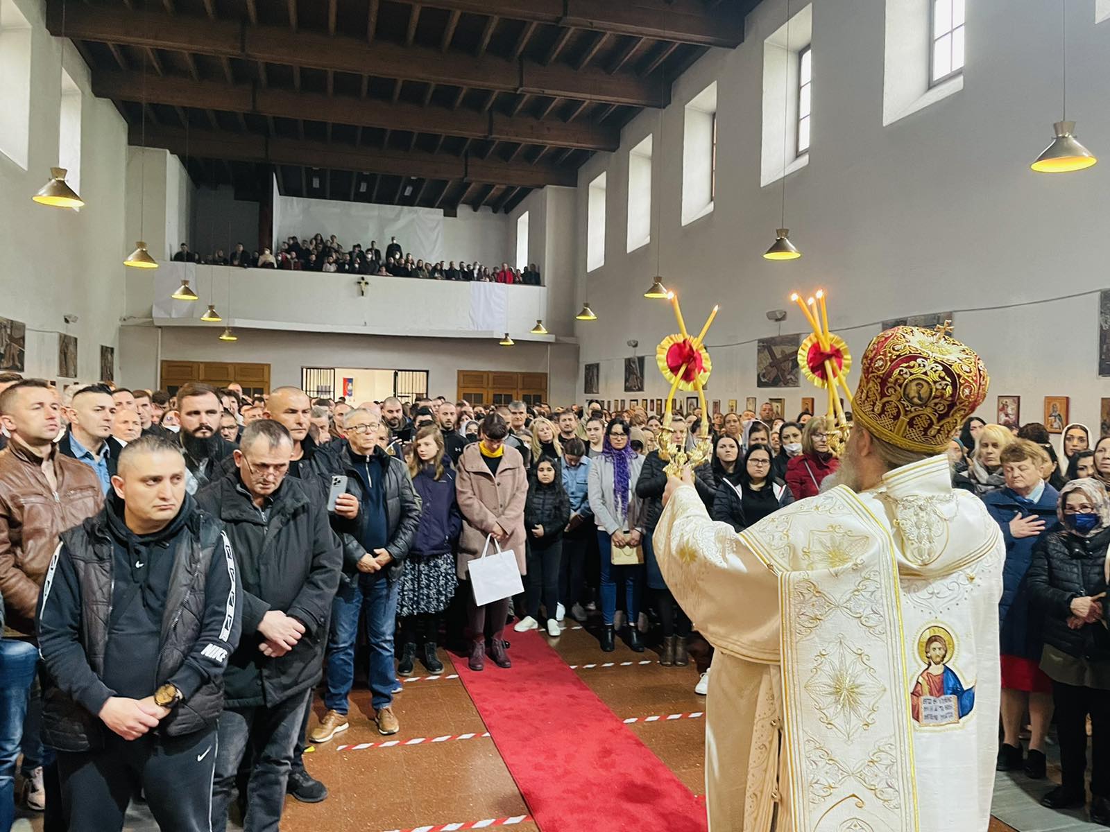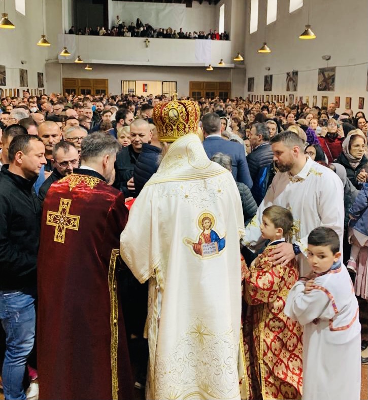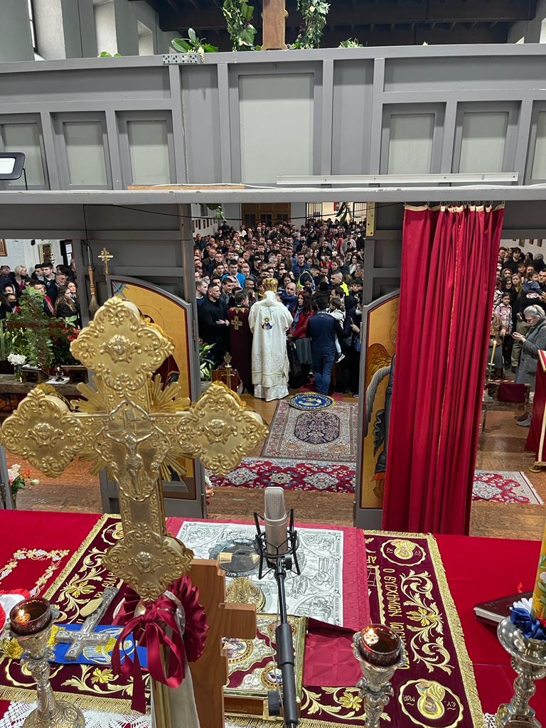 За време Васкршње Литургије посебно је био приметан мир и пажња са којом је верни народ пратио Свету службу, крепећи своје биће радосним химнама: Христос васкрсе из мртвих, смрћу смрт уништи и онима који су у гробовима Живот дарова. У својој пастирској беседи Епископ Андреј је са посебном радошћу говорио о Празнику над празницима и преласку из смрти у Живот, као и о томе да је Васкрсењем Христовим смрт побеђена и да је тиме тријумфовала љубав Богочовека Христа, који је тиме једини истински Победитељ смрти и Дародавац Живота. Зато је овај Празник Светлост јер је све овога дана у знаку незалазне светлости новога Живота у Христу Васкрсломе. Светој Чаши усрдно је приступио значајан број верника, на радост свих.