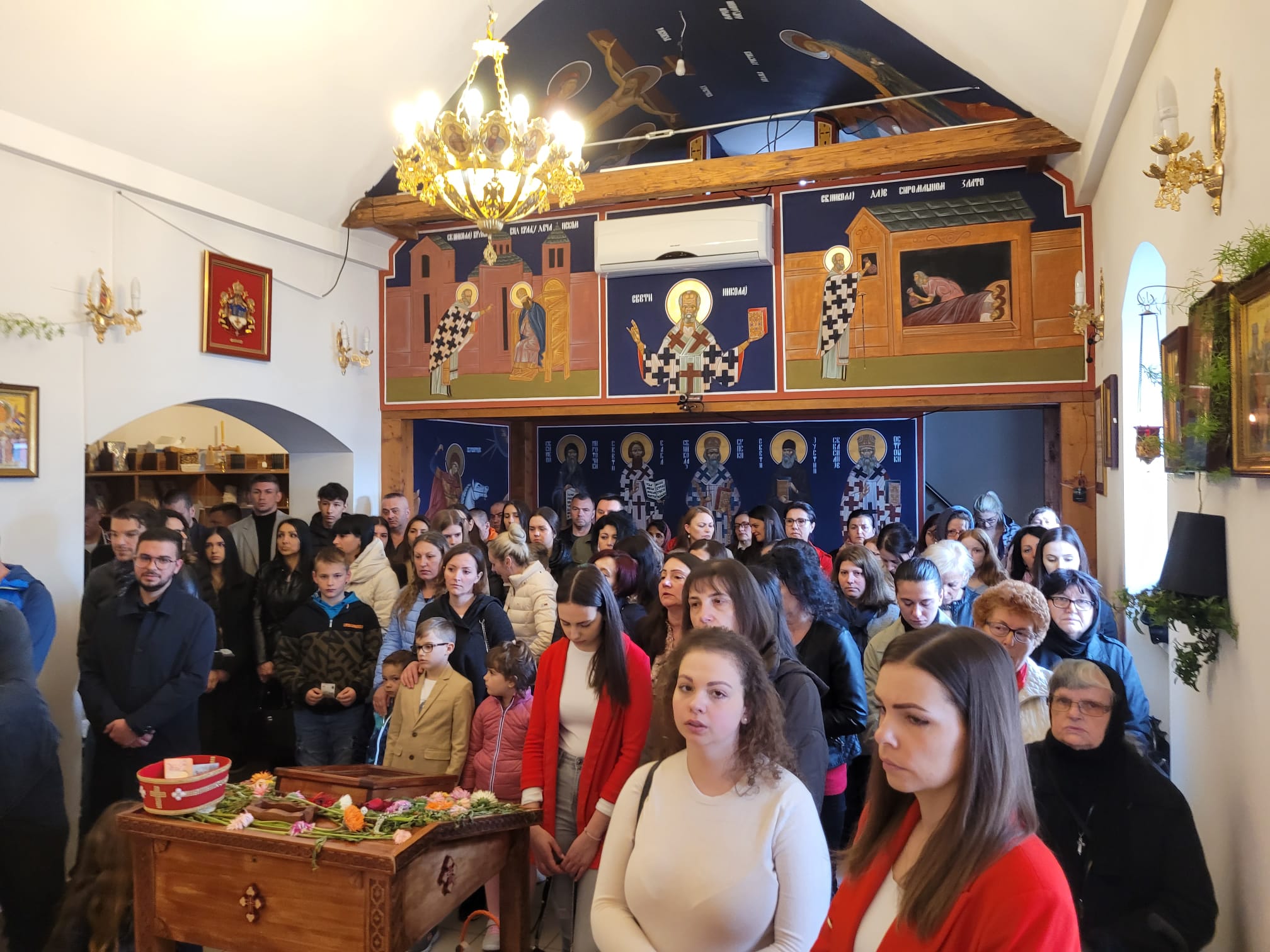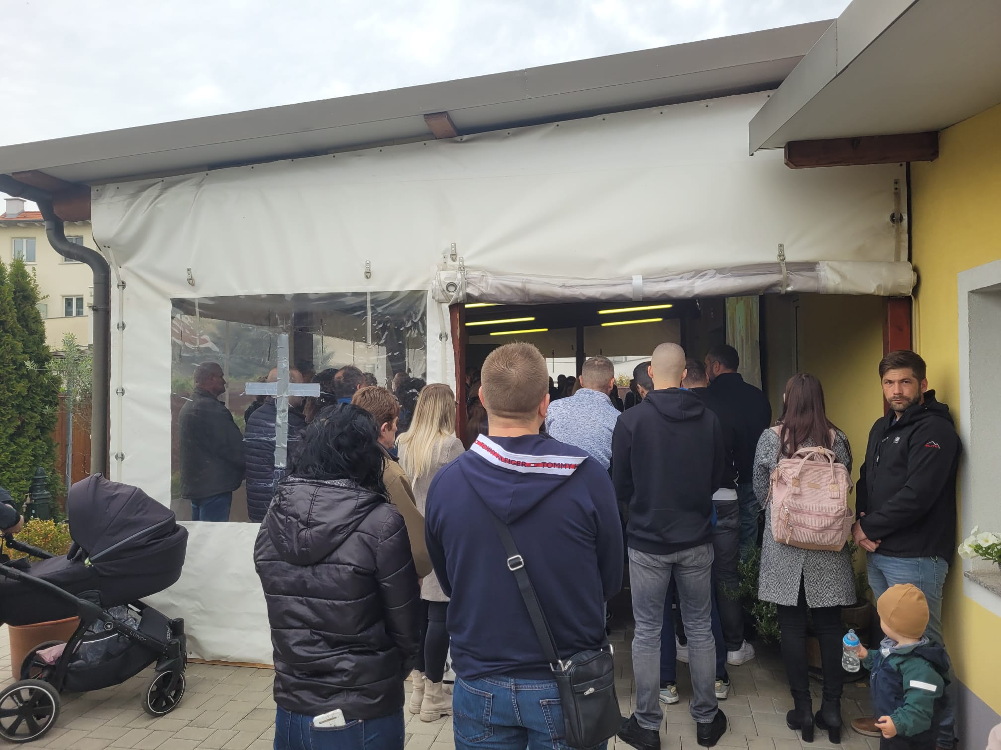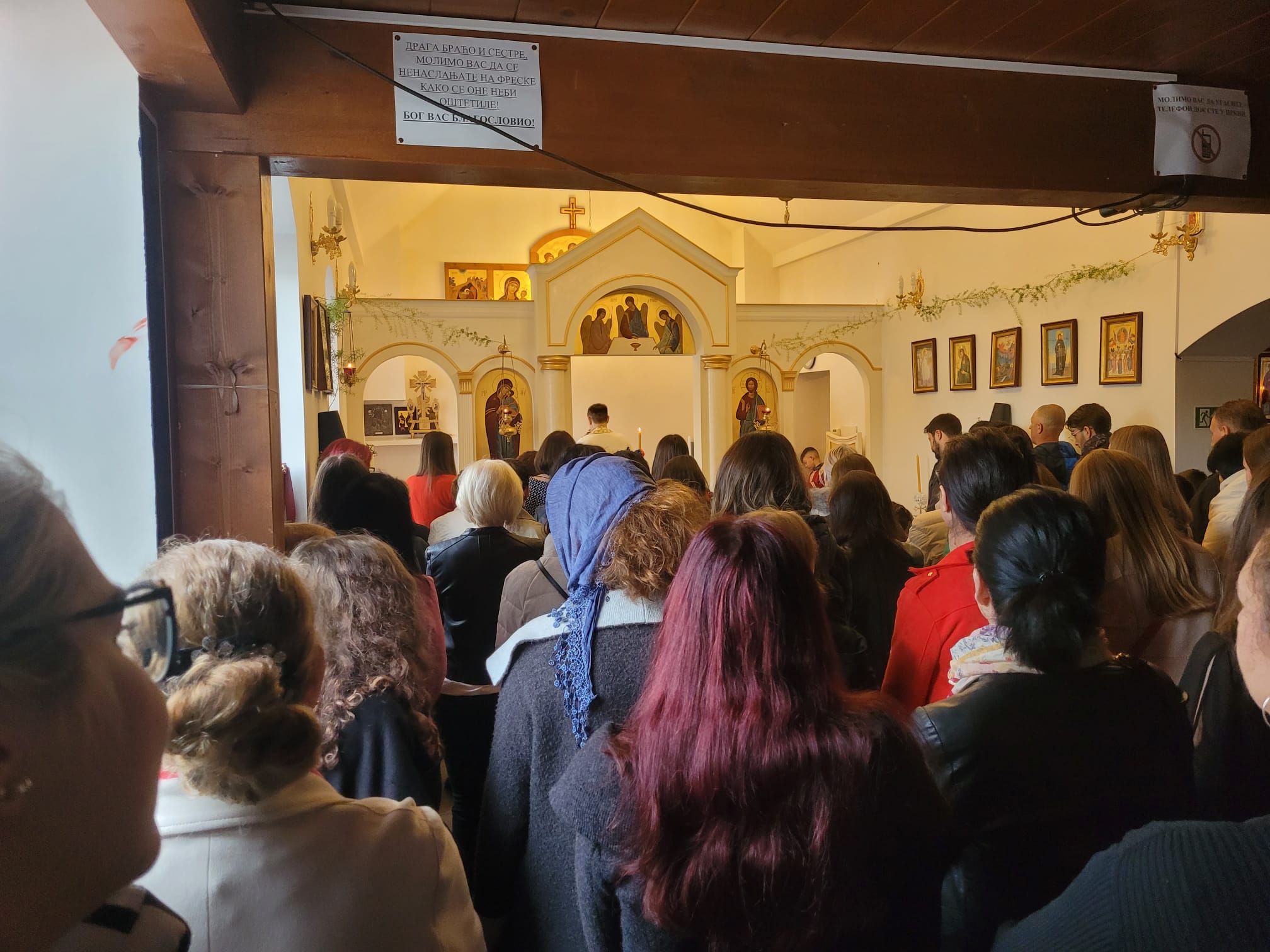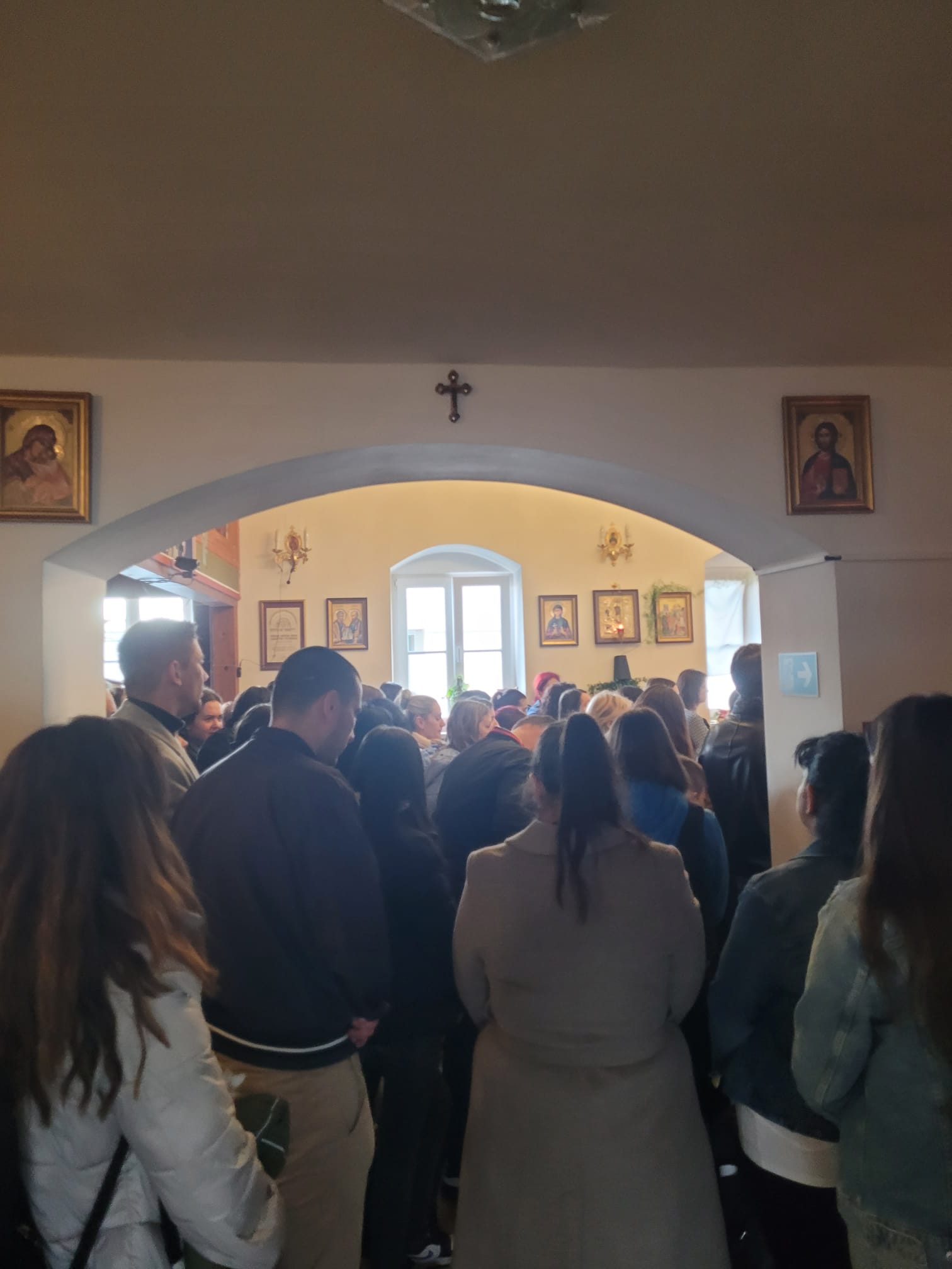 На крају Свете Литургије, отац Вељко је поздравио све са традиционалним поздравом Христос Васкрсе, и поделио васкршња јаја, а најмлађима чоколадна јаја. По Светој Литургији у порти храма организовано је такмичење у куцању јајима и изабрано најлепше офарбано јаје, а све то је допуњено весељем уз хармонику и клавијатуре које су свирали отац и син, Радоје и Емануел Лукић из Ајхграбена (Eichgraben).