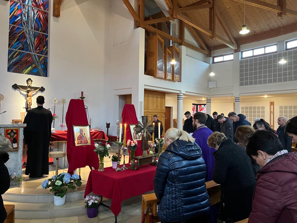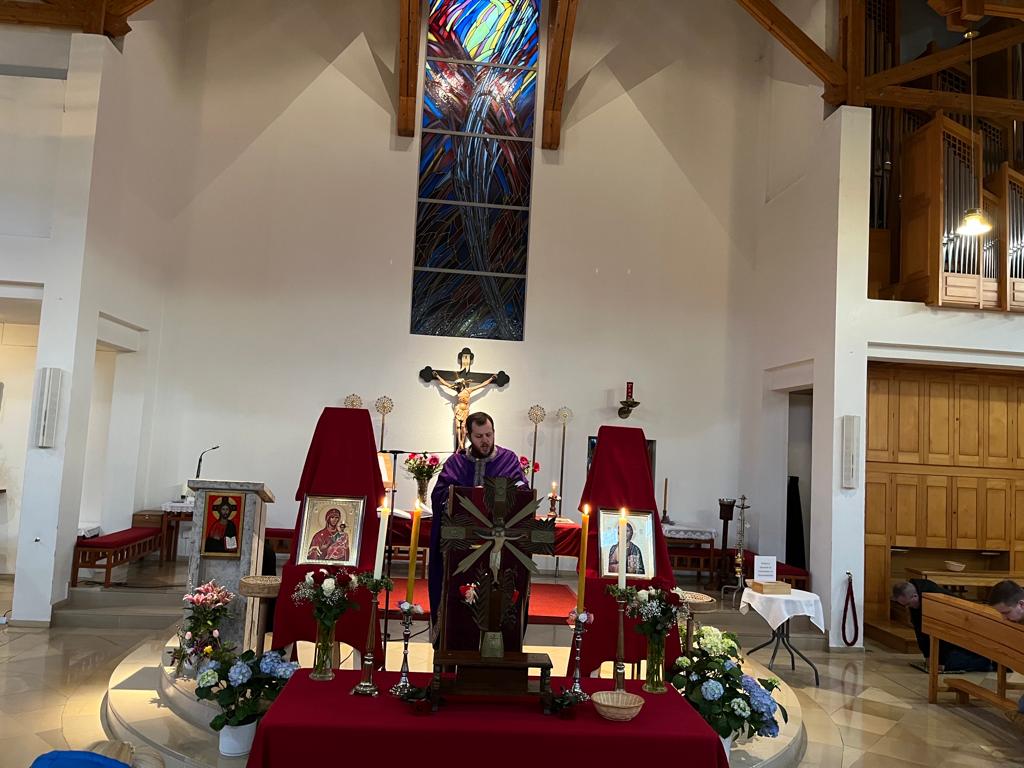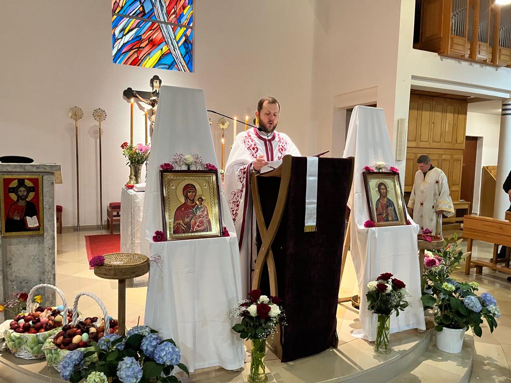 Верници парохије Светог великомученика Георгија у Гмундену дочекали су Празник над празницима у поноћ између суботе и недеље у осветљеном и украшеном храму, радосно потврђујући „Ваистину васкрсе!“ свом свештенику који је узвикивао „Христос васкрсе!„.