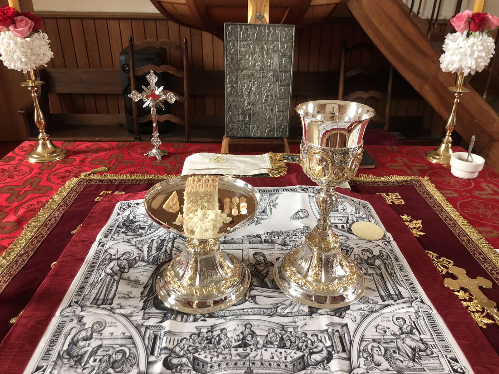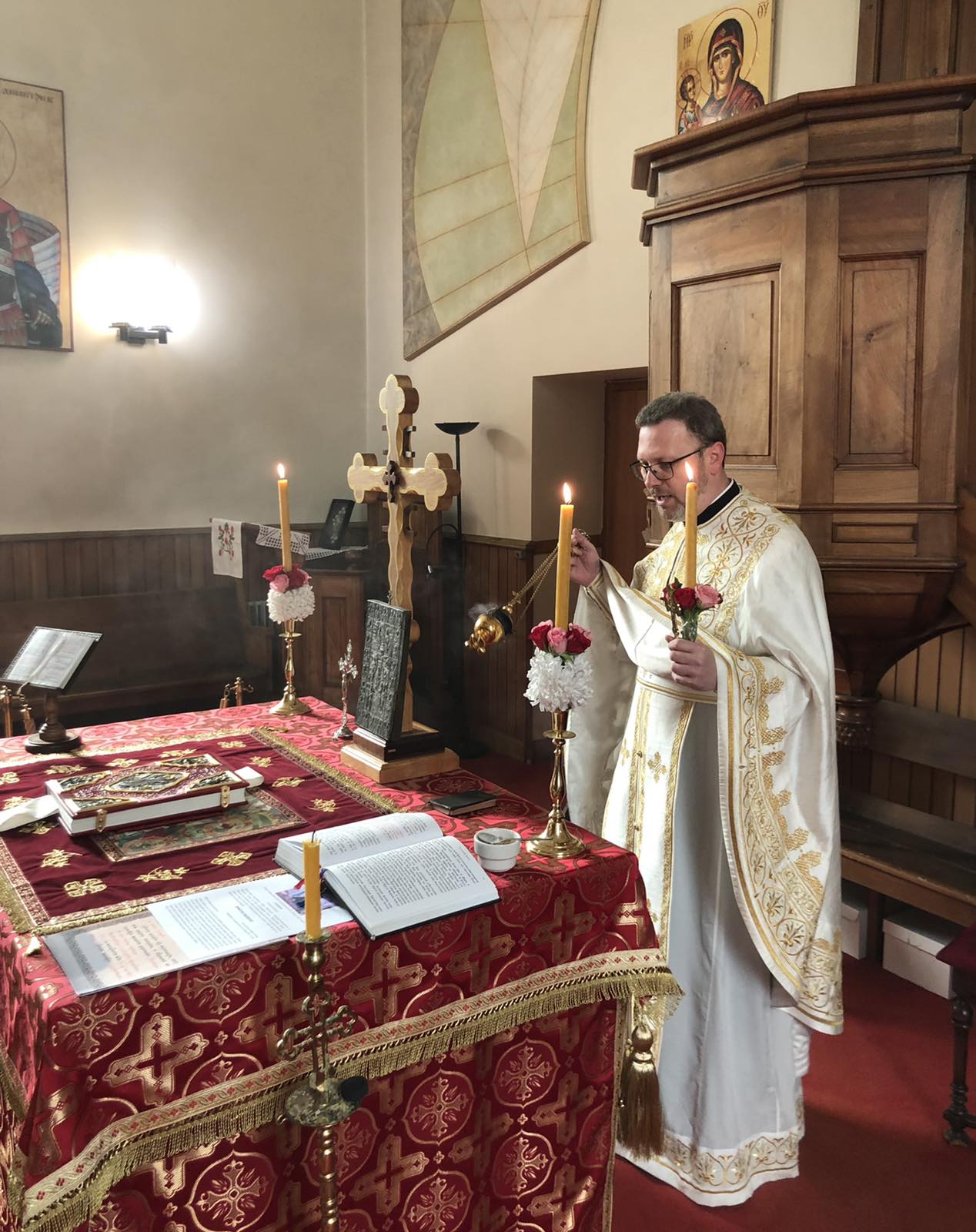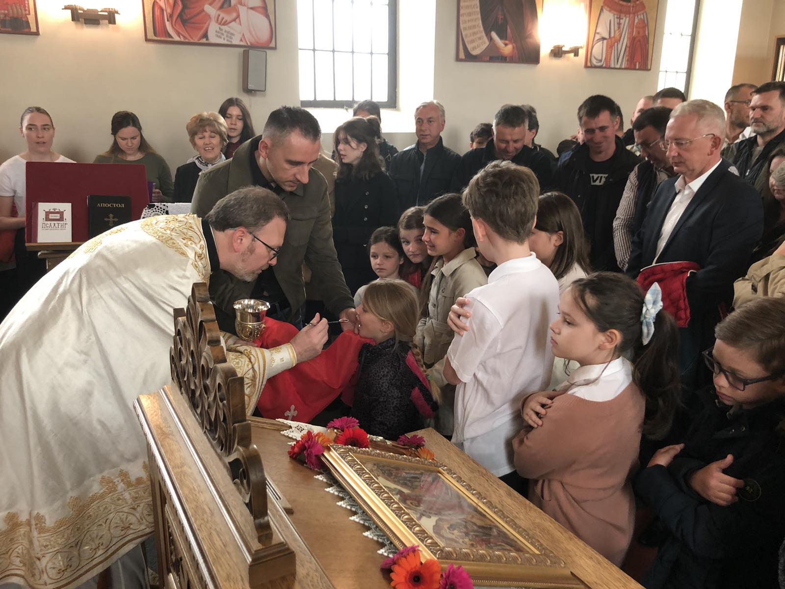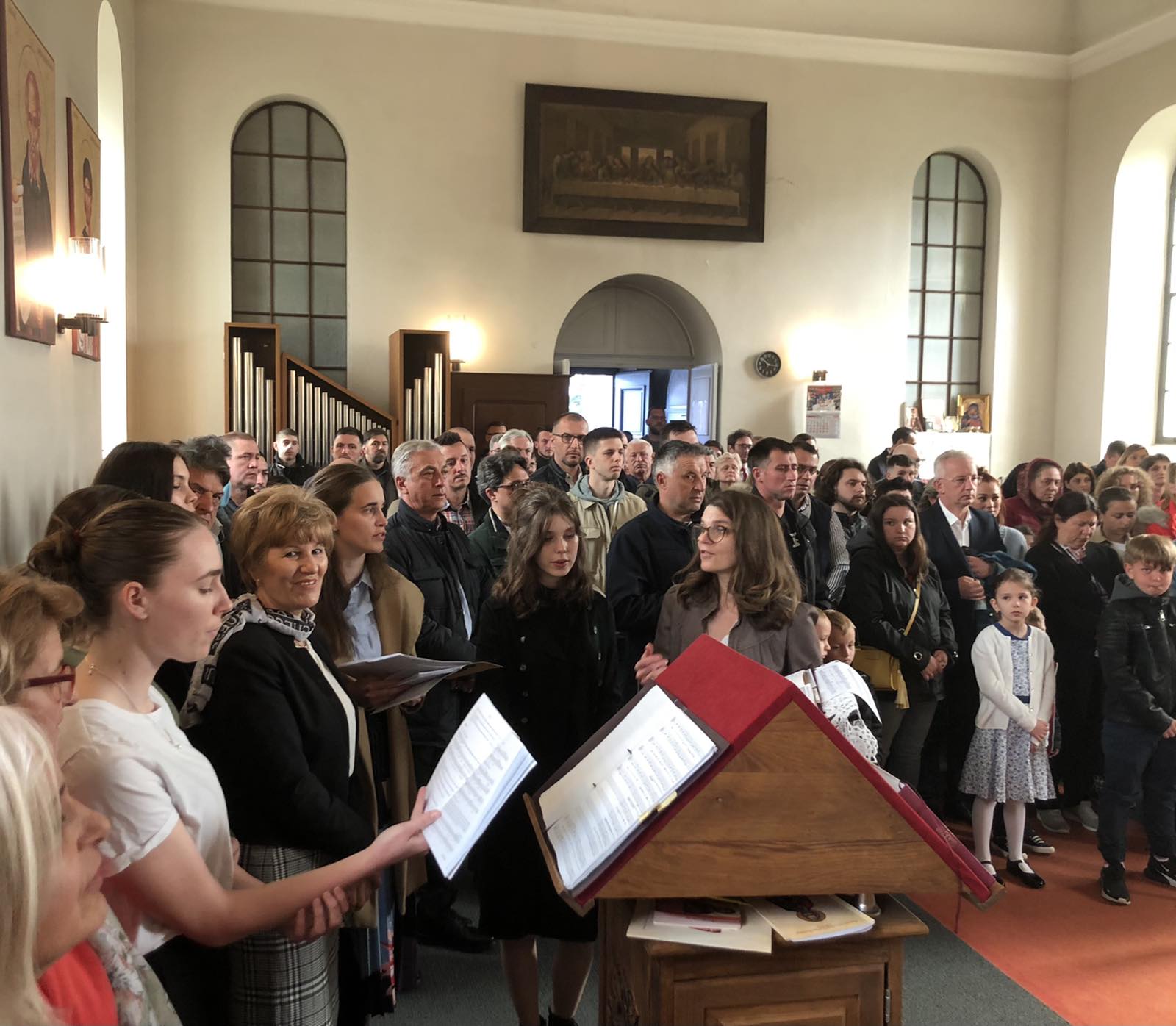 На крају литургије, отац Александар је прочитао посланицу Његове Светости Патријарха српског Г. Порфирија и пренео поздраве и благослове нашег надлежног Епископа аустријско-швајцарског Г. Андреја а затим разделио антидор и освећена јаја, уз радосни хришћански поздрав „Христос Васкрсе”. Сви присутни су затим отишли на сада већ традиционално васкршње послужење у парохијску салу, где је настављено прослављање овог најрадоснијег хришћанског Празника.