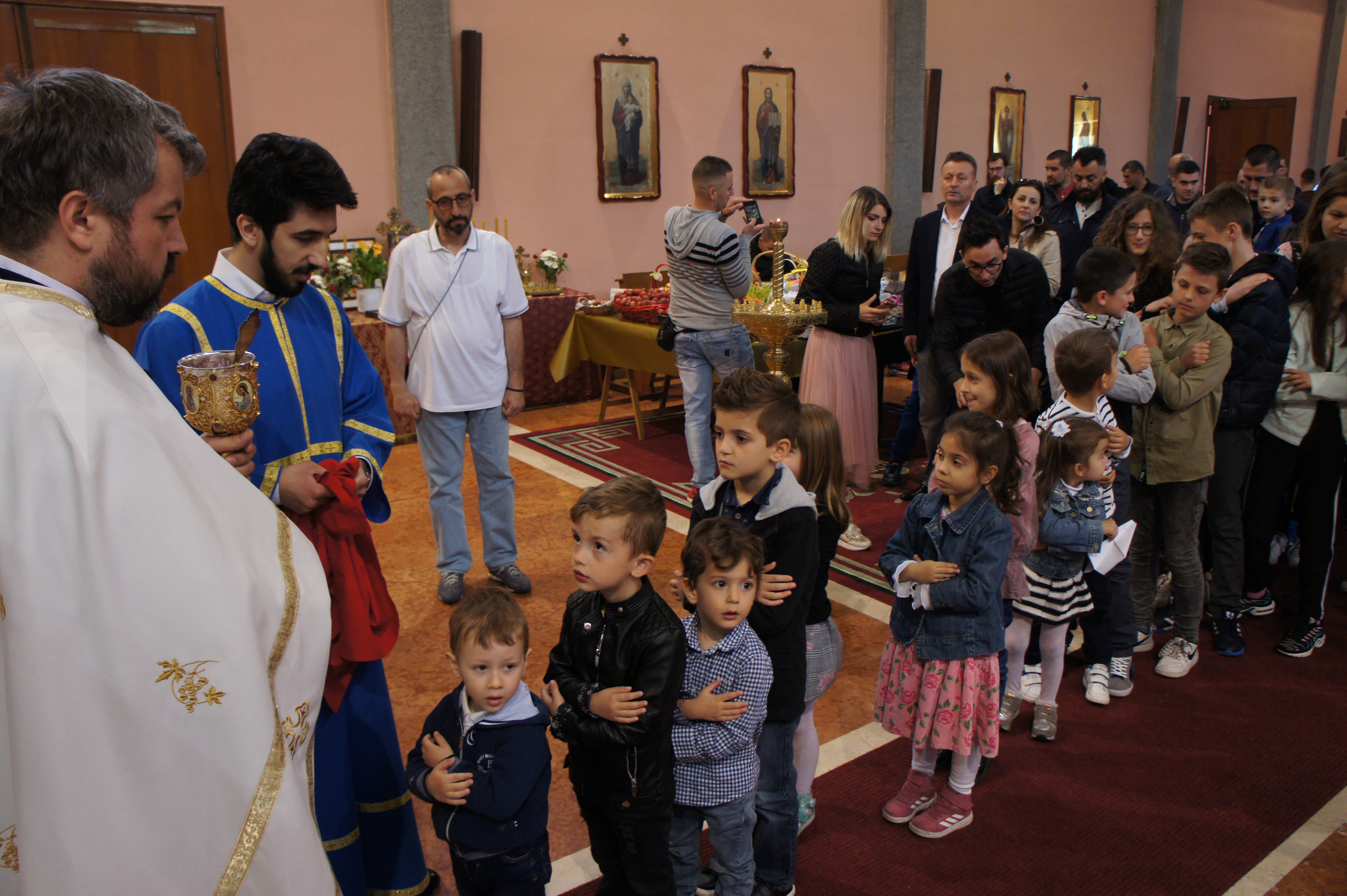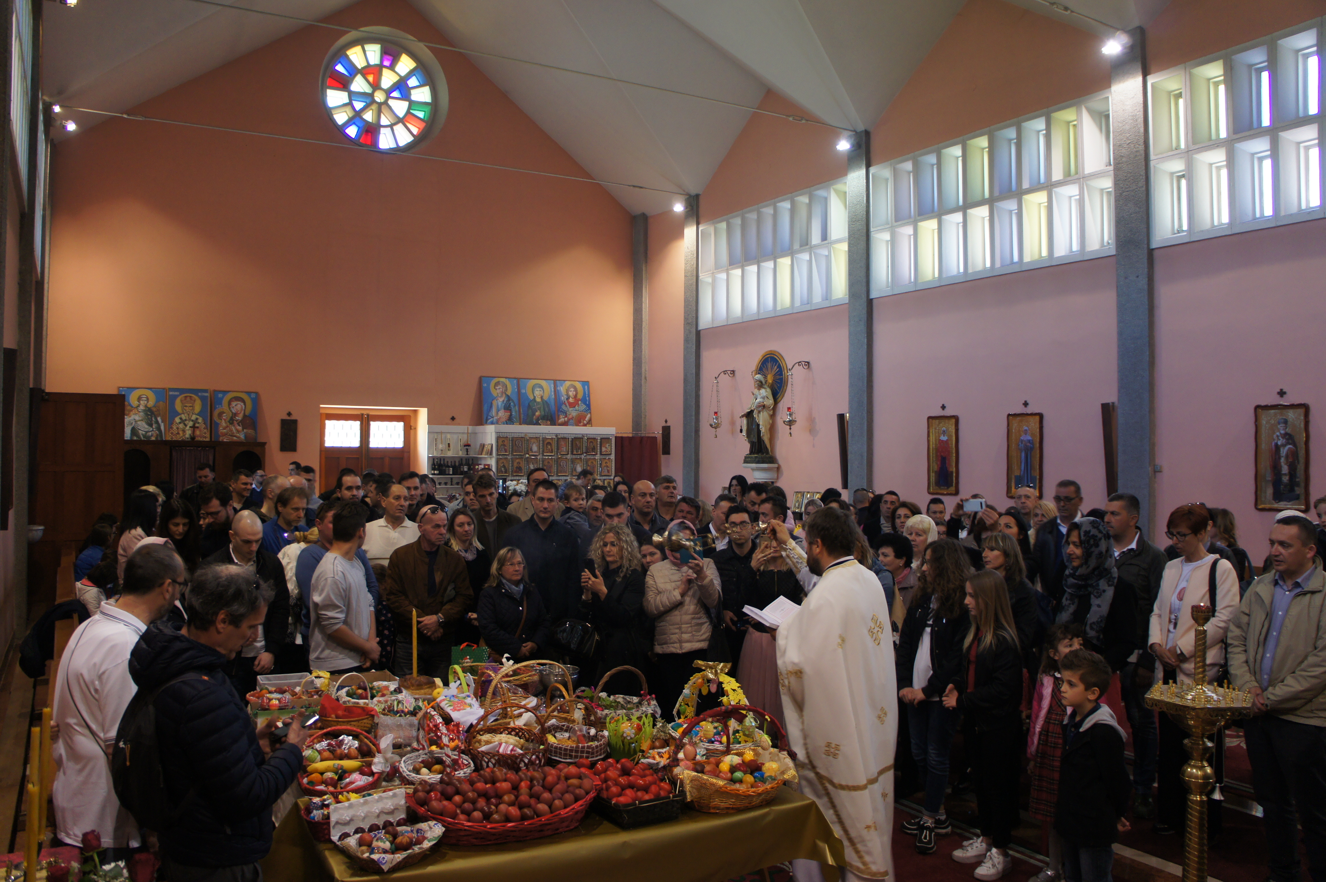 Велики број присутних верника се и причестио, а након завршене Литургије подељена су освештана васкршња јаја. Радост празника се видела и на лицима најмлађих парохијана који су са нестрпљењем чекали традиционално куцање јаја. Затим је уследила трпеза љубави коју су вредни парохијани припремили за све присутне.