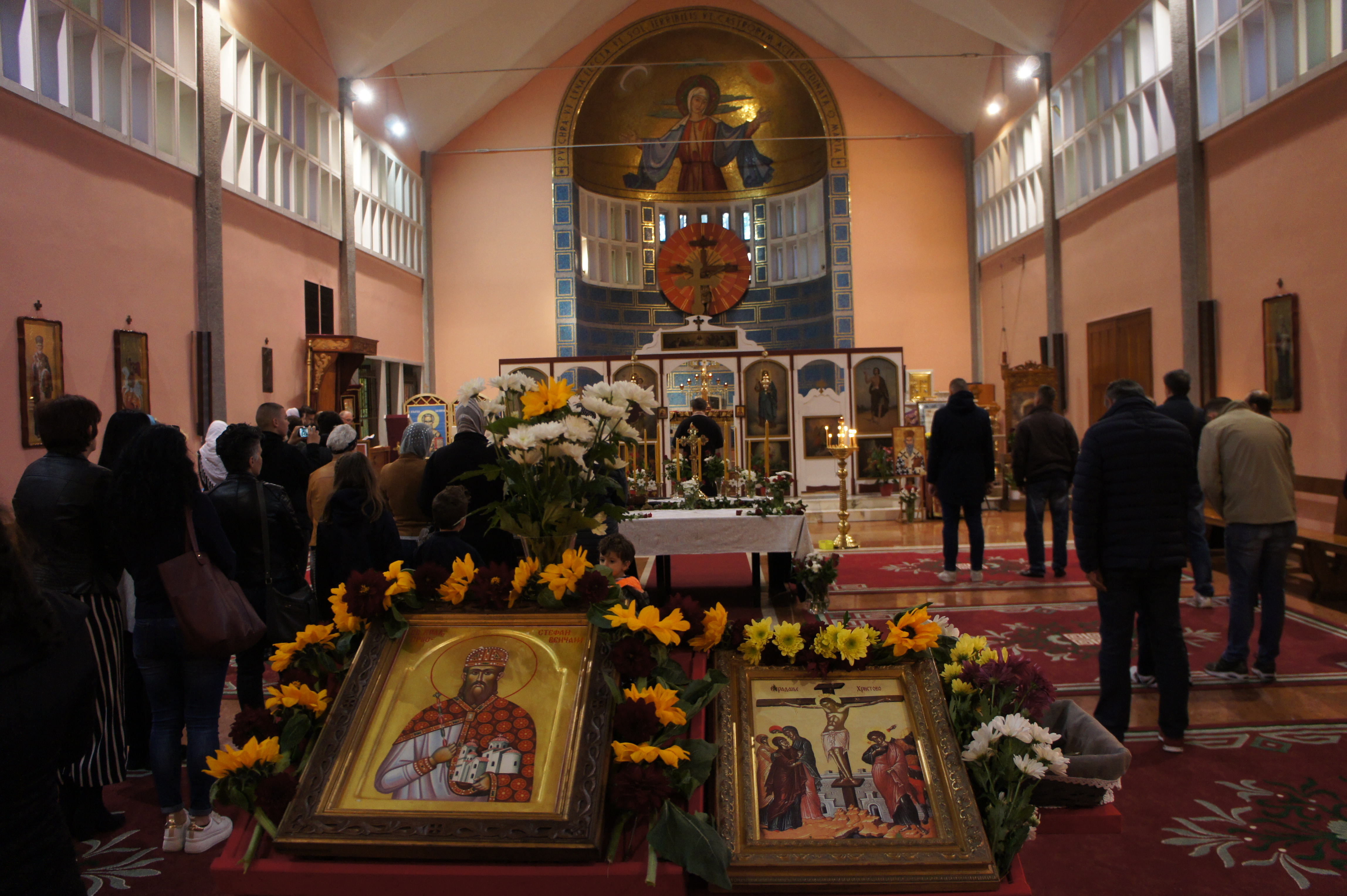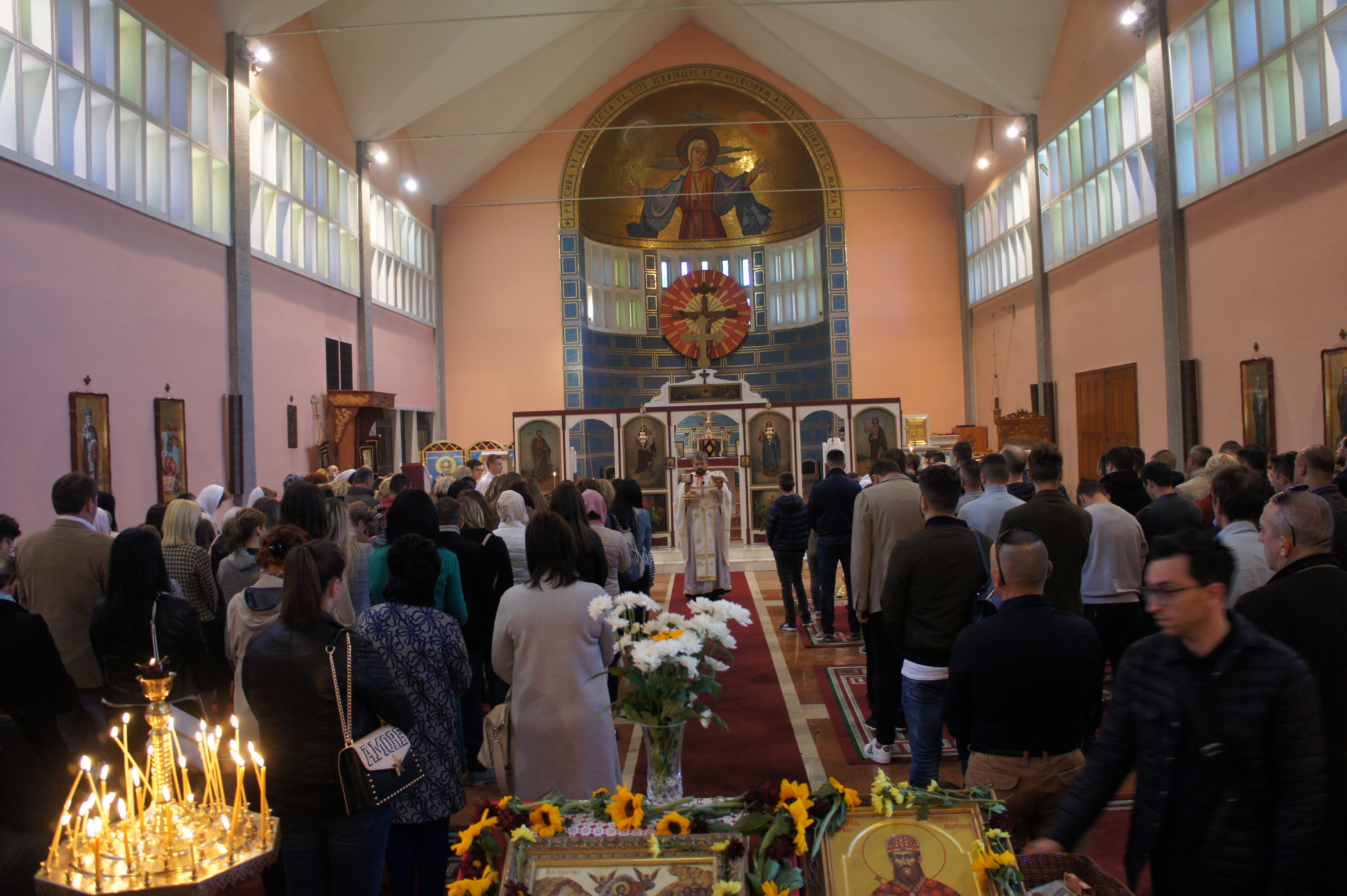 Прослава Празника над празницима отпочела је Литургијом у храму Светог Симона мoнаха у Carate Brianza на којој је учешће узео велики број верног народа ове парохије. Сабрање је почело свечаном Литијом око храма, а након прочитаног Јеванђеља свештеник је у својој проповеди истакао важност доласка на Литургију као и важност причешћивања и бриге верног народа о својој Цркви.