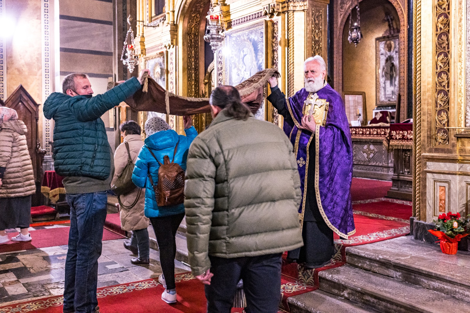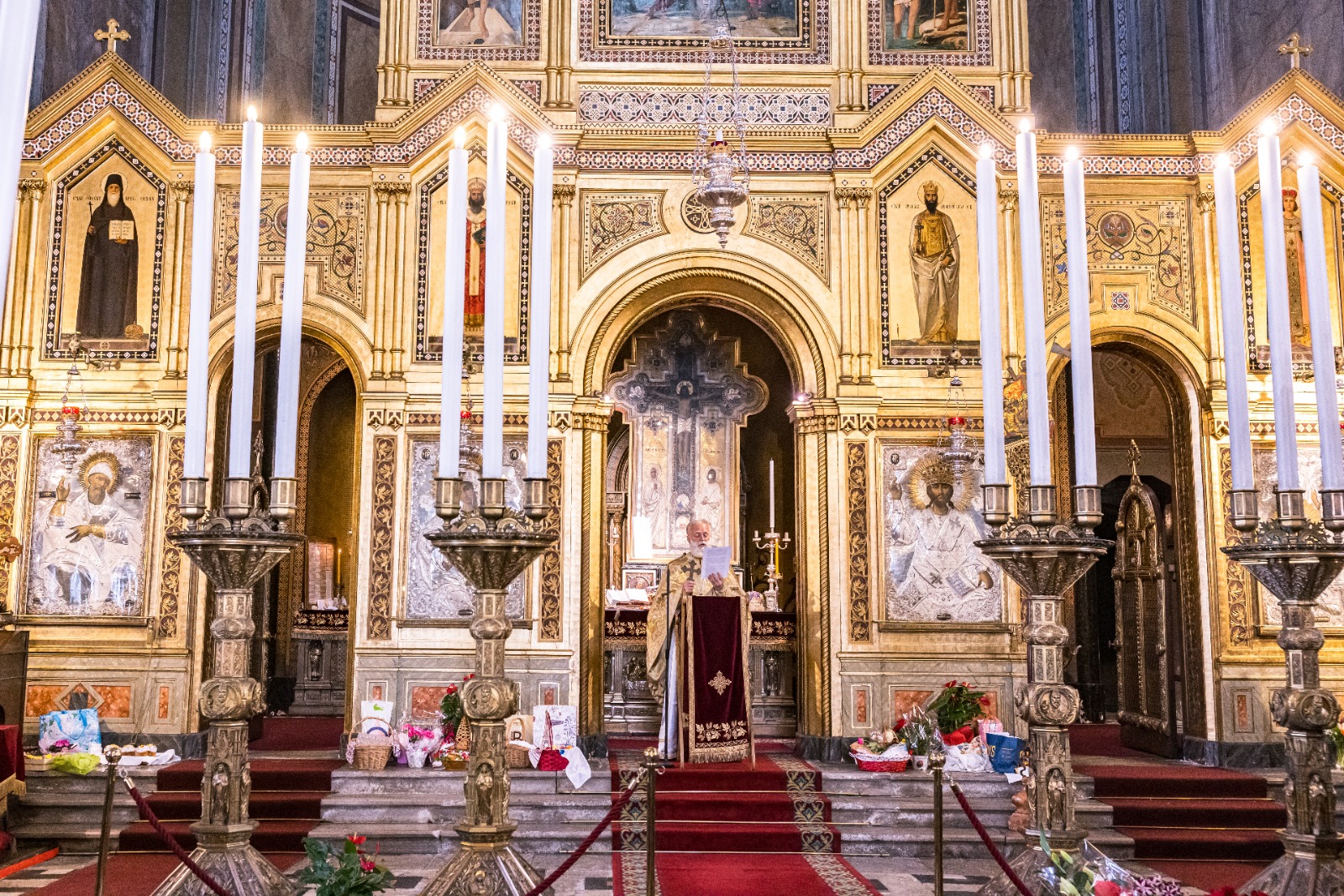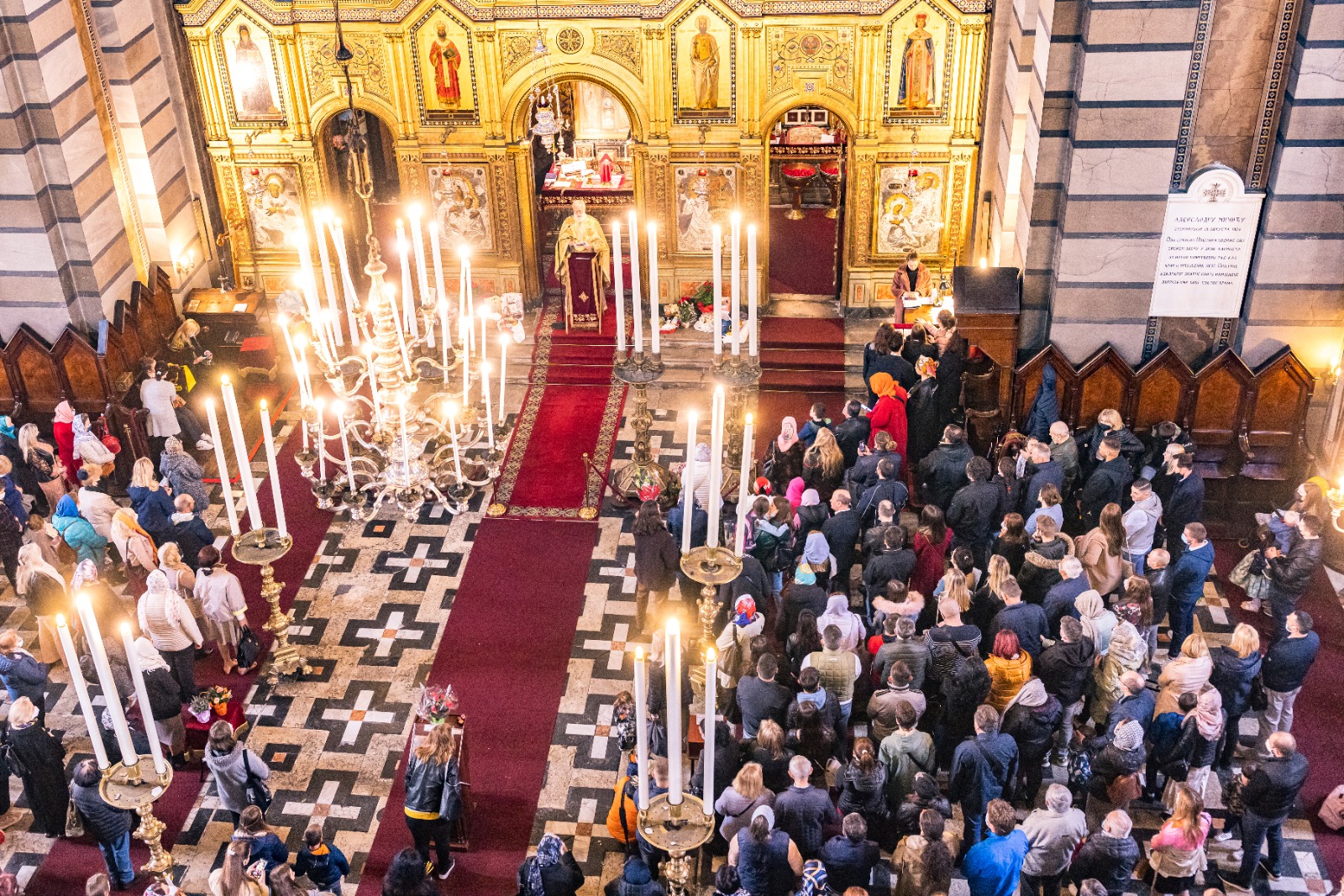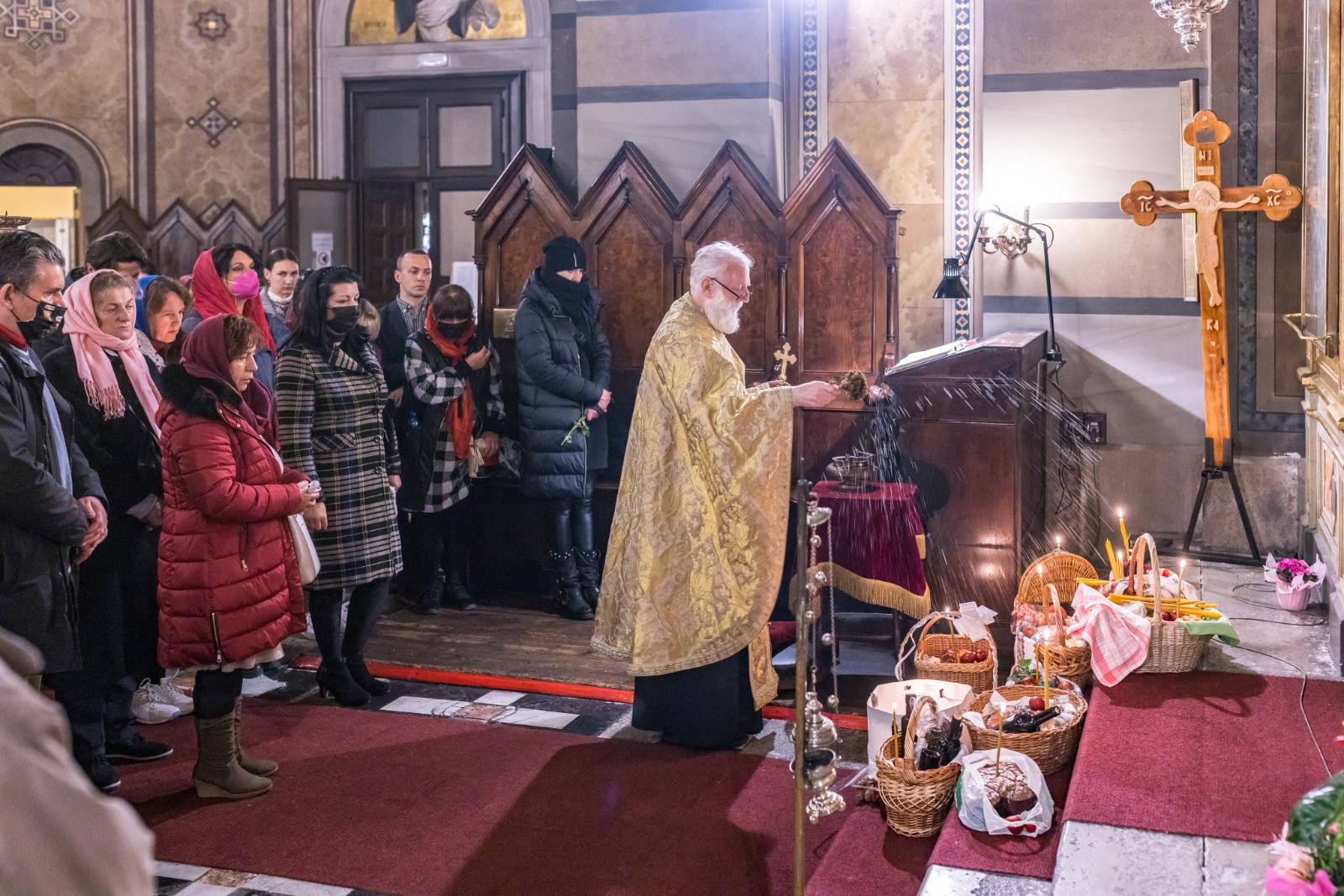 У вечерњим часовима, служен је акатист Сладчајшем Исусу, а затим су освећена васкршња јаја и дарови које су донели, како наши, тако и верници других православних Цркава (Руси, Украјинци, Молдавци и други).