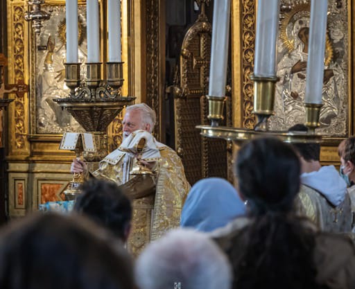 Евхаристијским Сабрањем на Васкрс началствовао је прота Рашко уз одговарање храмовног хора, којим диригује професорка Ана Каира из Трста. У служби је молитвено учествовао и причестио се велики број православних Срба и верника из других православних Цркава. Отац Рашко је, након прочитане посланице, честитао Празник вернима на српском и италијанском језику, посебно заблагодаривши свима који су му помогли да се највећи и најрадоснији хришћански Празник организује и прослави у Трсту како Бог милује и како доликује овој древној Црквеној општини.