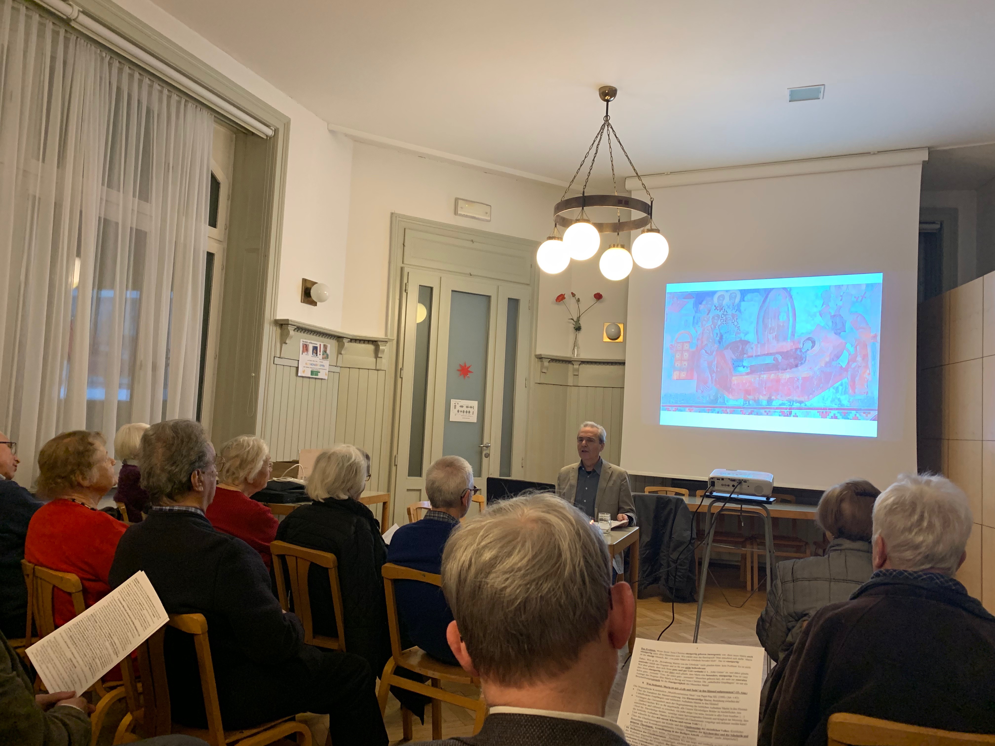 У четвртак, 09. јануара 2020. године, у 18-ом бечком округу, у студијском центру храма Св. Леополда, одржано је предавање на тему Догма о Пресветој Богородици-данас још увек актуелна? На ову тему говорио је професор Др Паул Вајцер (Paul Weitzer). У своме садржајном предавању, професор Вајцер је одговорио на питање: ко је била Пресвета Богородица, ко је био Исус Христос? И шта је то догма? По благослову Његовог Преосвештенства Епископа аустријско-швајцарског Господина Андреја овом предавању присуствовао је студент теологије г. Андреј Живковић.