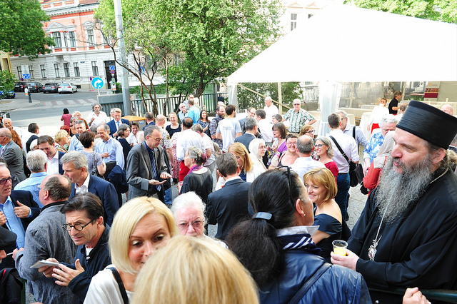 Поред Преосвећеног Епископа Андреја, евангелистичког бискупа Михаела Бинкера и римокатоличког умировљеног бискупа Максимилијана Ајхерна (носилац ордена Светог Саве 1. степена), међу високим званицама су били и представници државних социјалних служби, као и нова директорка Дијаконије Аустрије госпођа Марија Мозер, пасторина Евангелистичке жупе у Бечком округу Симерингу. У својим обраћањима, сви говорници су подвукли тесну везу Цркве са хуманитарним и социјалним службама.