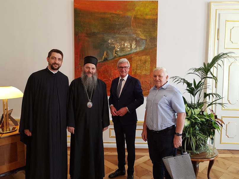 У понедељак, 11. јуна 2018. године, Његово Преосвештенство Епископ аустријско-швајцарски Г. Андреј, у пратњи старешине храма Покрова Пресвете Богородице у Салцбургу, јереја Јована Говедарице и председника Ц.О. Салцбург г. Петра Ковачевића, посетио је градоначелника Салцбурга, г. Харалда Пројнера (Harald Preuner).