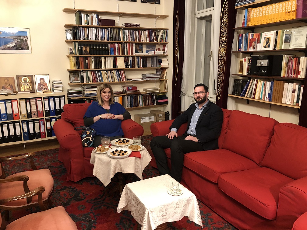 У Владичанском двору, Његово Преосвештенство Епископ аустријско-швајцарски Г. Андреј примио је уметнички ансамбл Дуо Аркорд који чине виолончелисткиња Ана Топаловић и акордеониста Никола Ђорић. У срдачном разговору, Владика Андреј је упознао драге госте са идејом да се српској деци у оквиру црквених просторија широм Аустрије етапно прикажу различити музички инструменти у циљу њиховог широког културног образовања и васпитања. Такође су саговорници евоцирали успомене на добротворне концерте у многим од најзначајнијих концертних дворана у Бечу, на првом месту на концерт за обнову изгорелог храма у Њу Јорку у лето 2017. године. Овај изврсни дуо, у своме савременом, иновативном тумачењу презентује виртуозне и личне визије познатих композиција Баха, Дворжака, Чајковског, Бартока, и других.