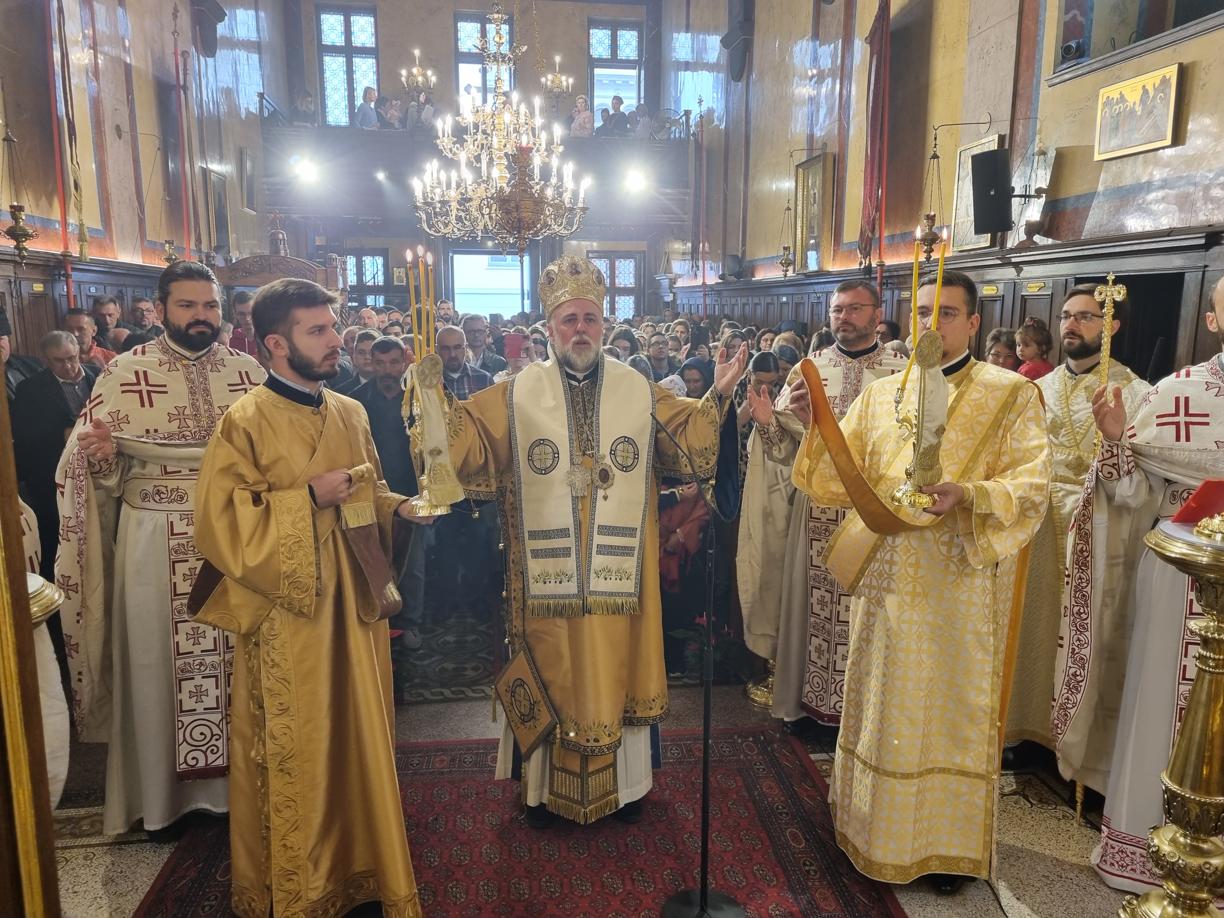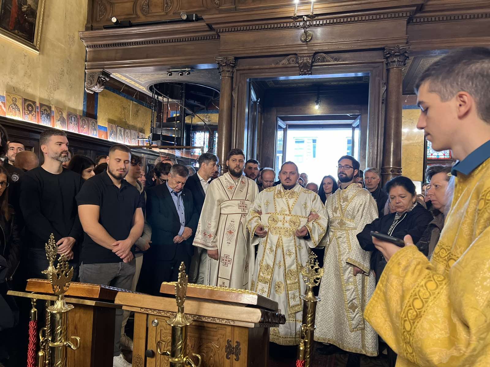 По завршетку Свете Литургије, Епископ Григорије се обратио настојатељу Саборног храма, јереју Филипу Милуновићу и братству његовом уз благодарење, а посебно се захвалио доласку многобројном верном народу. Након подељене просфоре, Епископ, свештенство и верни народ се упутио у свечану салу где је било организовано од стране Саборног храма и КСС богато послужење.