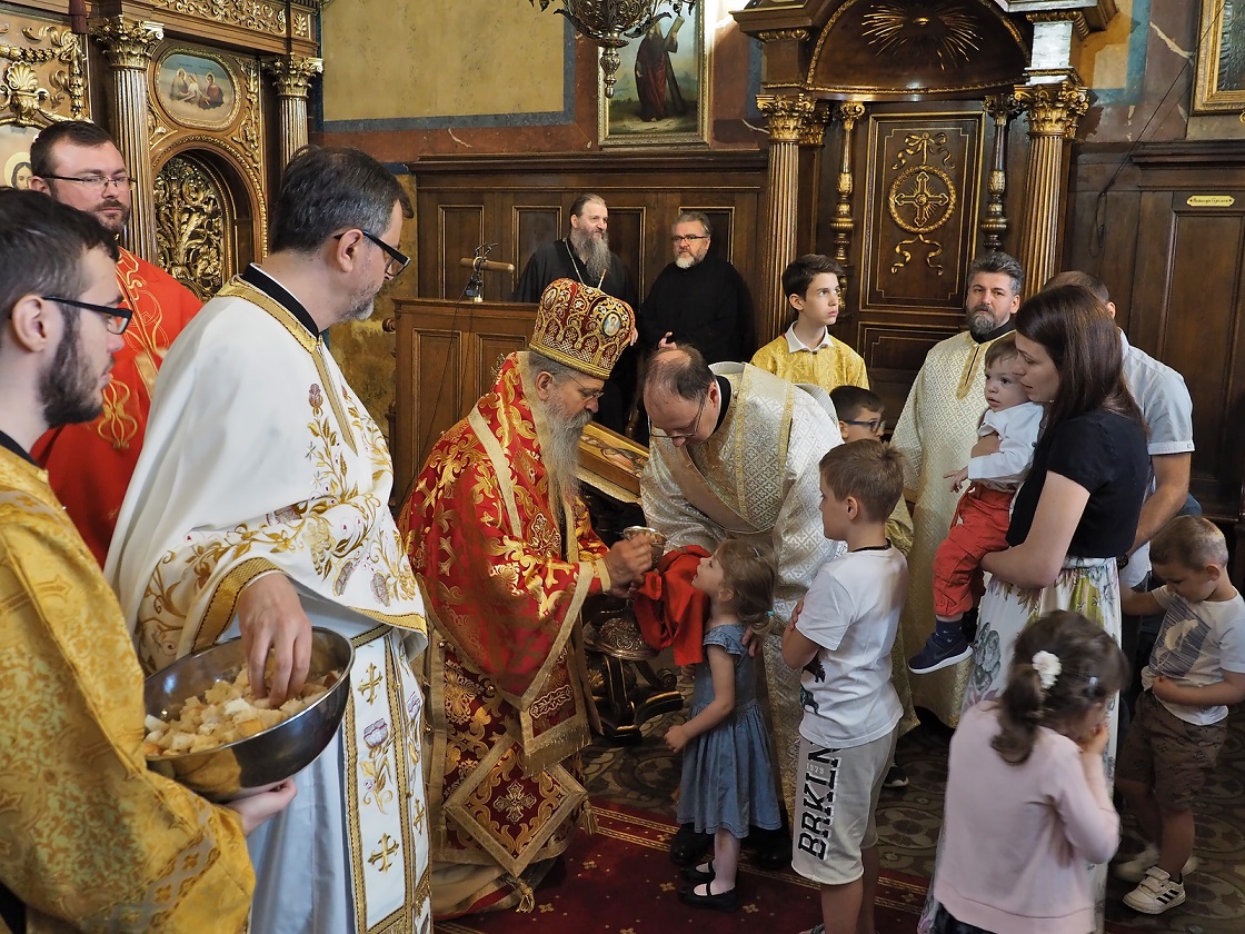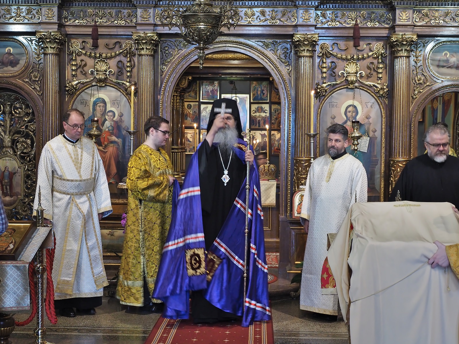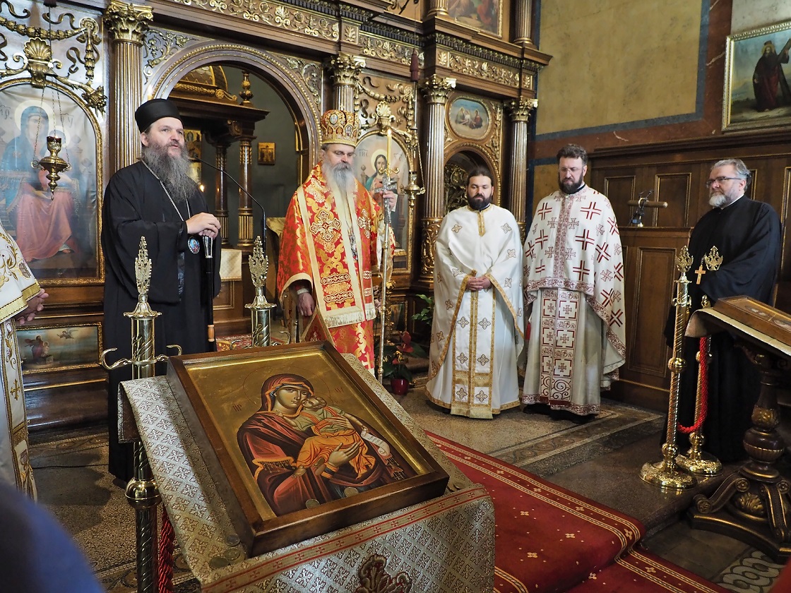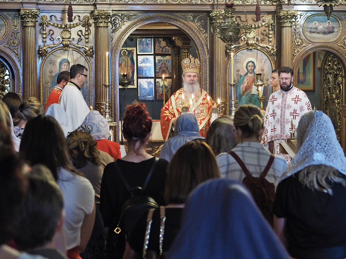 У својој беседи на прочитано Јеванђеље, Владика Теодосије говорио је о смислу подвига и идењу за Христом у времену у коме живимо. Такође, пренео је верном народу, окупљеном око Свете Чаше, поздраве са многострадалног Косова и Метохије. Пожелевши срдачну добродошлицу драгом госту, Епископ Андреј је заблагодарио Богу на овом сусрету.