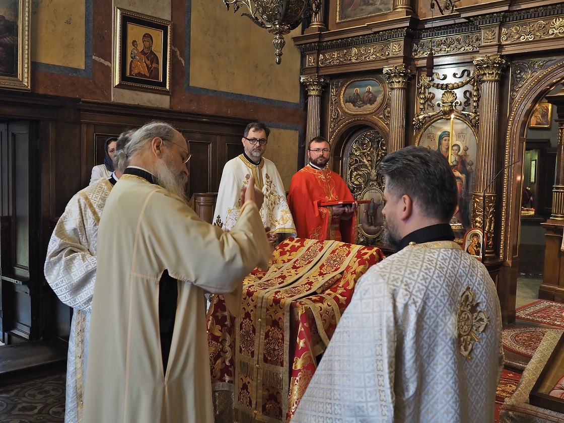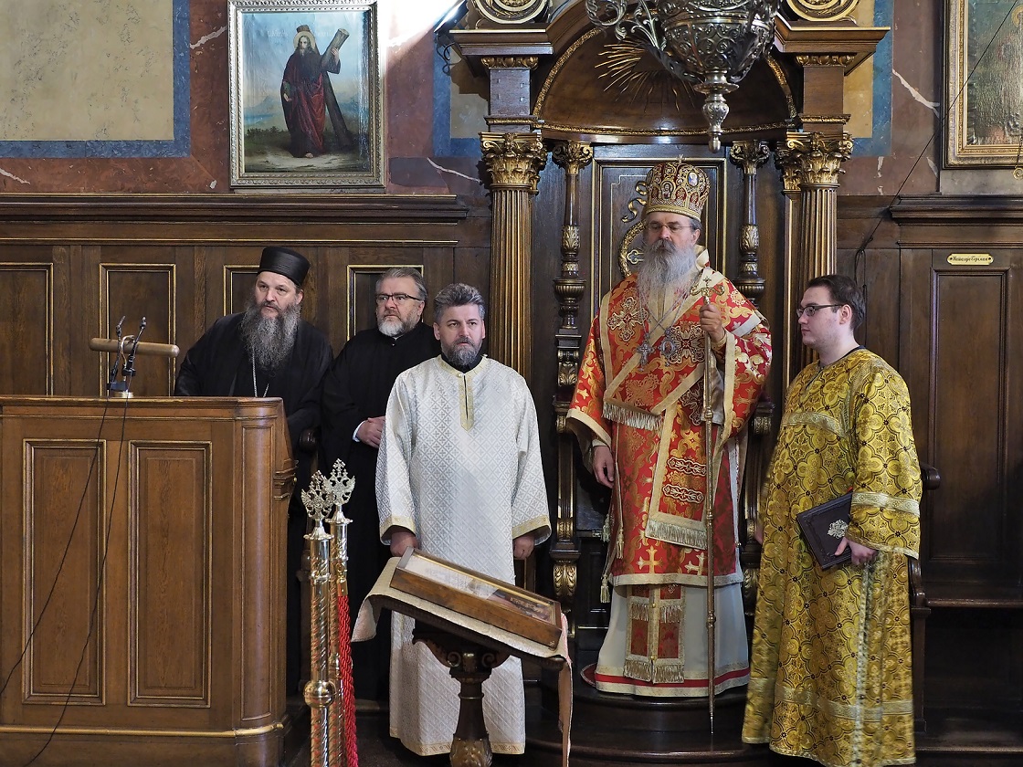 По благослову Његовог Преосвештенства Епископа аустријско-швајцарског Г. Андреја, Епископ рашко–призренски и косовско-метохијски Г. Теодосије боравио је у Бечу поводом промоције монографије „Задужбине Косова и Метохије“. Том приликом, у суботу 09. јуна 2018. године, Епископ Теодосије служио је Свету архијерејску Литургију у катедралном храму Светог Саве.