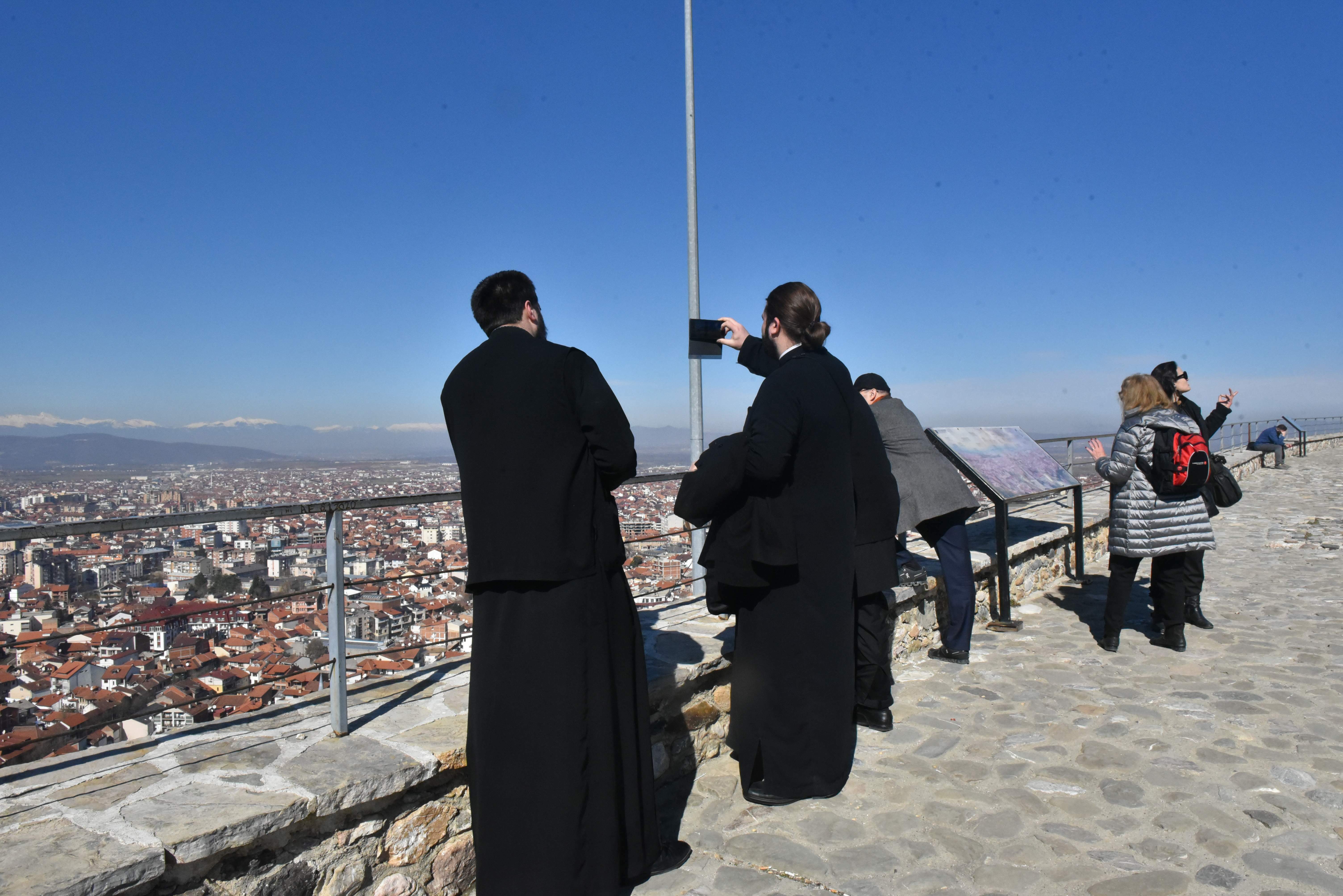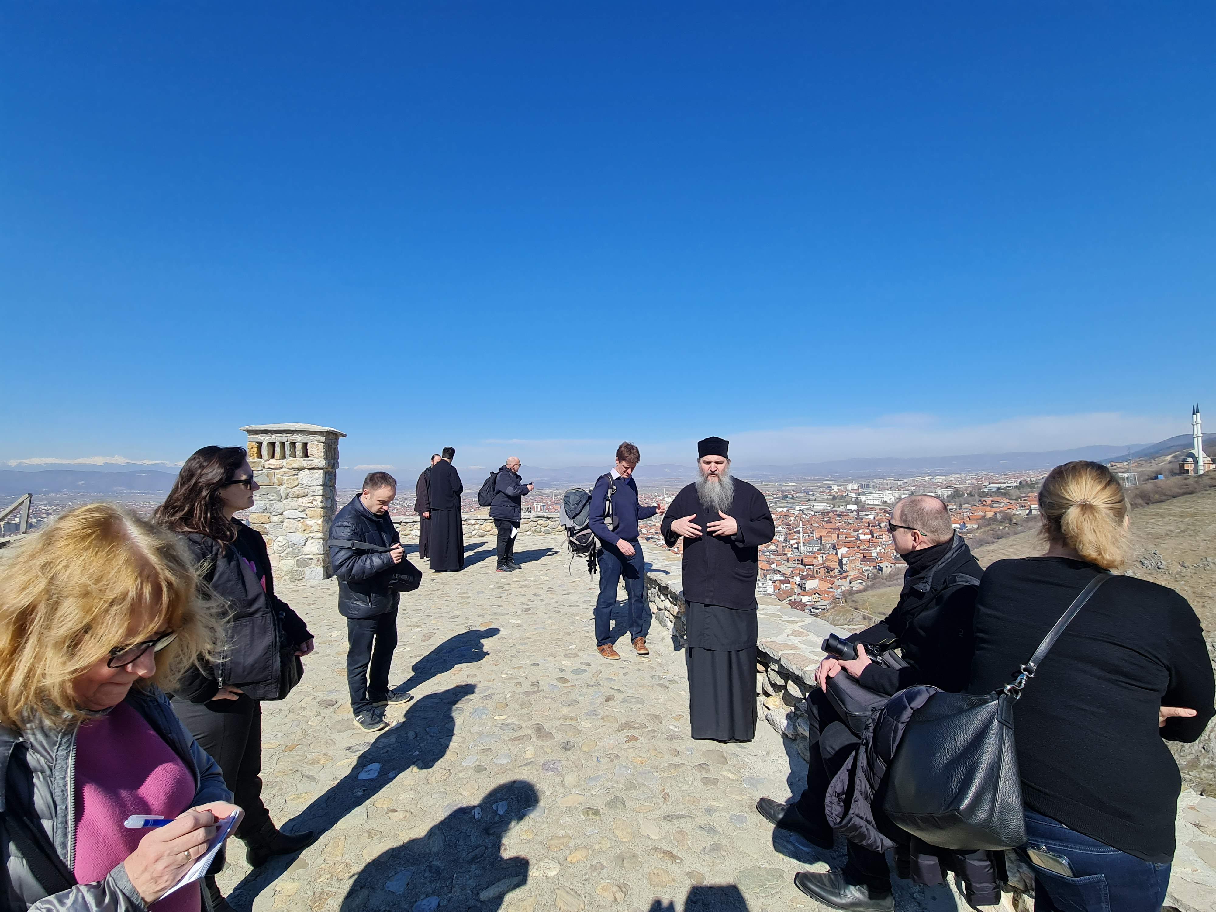 Истога дана, група аустријских новинара се пела на брдо Каљаја изнад Призрена (средњовековни Призренски Град) где је најпре разгледала храм Светог Спаса и затим горњу тврђаву одакле се пружа панорама на цео Призрен и околину. У наставку је група посетила Манастир Светих Арханђела код Призрена, где их је дочекао игуман отац Михаило са братством. Игуман отац Михаило је по манастирском типику новинарима приредио ручак, користећи прилику да прикаже проблеме и тешкоће са којима се суочавају свештена лица у овом делу Епархије. Поводом избијања рата у Украјини, група новинара је са благословом оца игумана у манастиру прочитала заједничку молитву за мир.