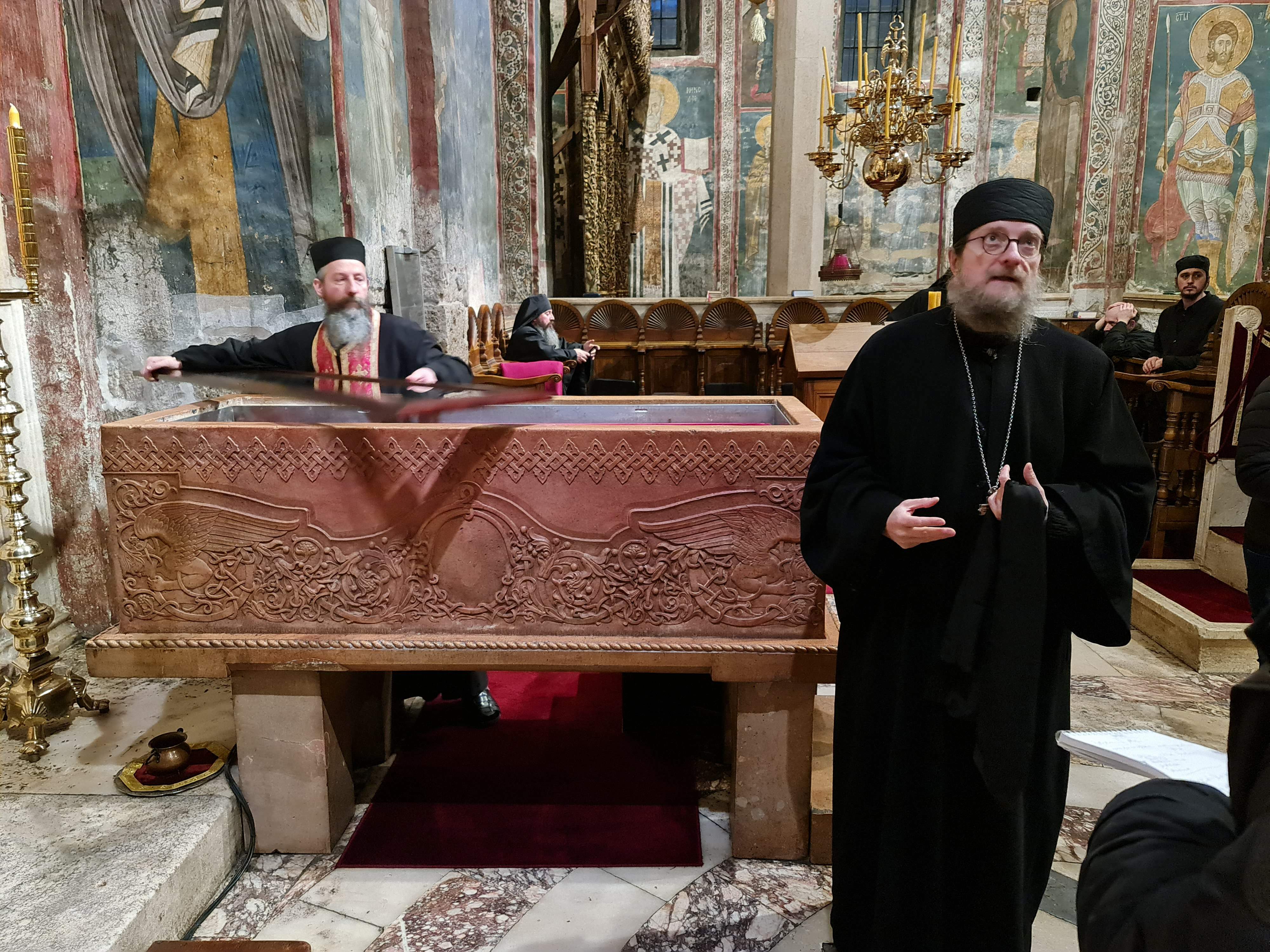 Из Призрена је група новинара продужила за манастир Дечани где их је топло дочекао игуман о. Сава са братијом. По изјави групе новинара ова тачка свеукупног програма је после посете Свјатјејшем Патријарху и Владици Теодосију, била најлепша тачка. Новинари су присуствовали вечерњем богослужењу у стародревном храму манастира, након чега је уследио трочасовни разговор са оцем игуманом Савом о проблемима са којима се суочава напаћени српски народ на Косову и Метохији.