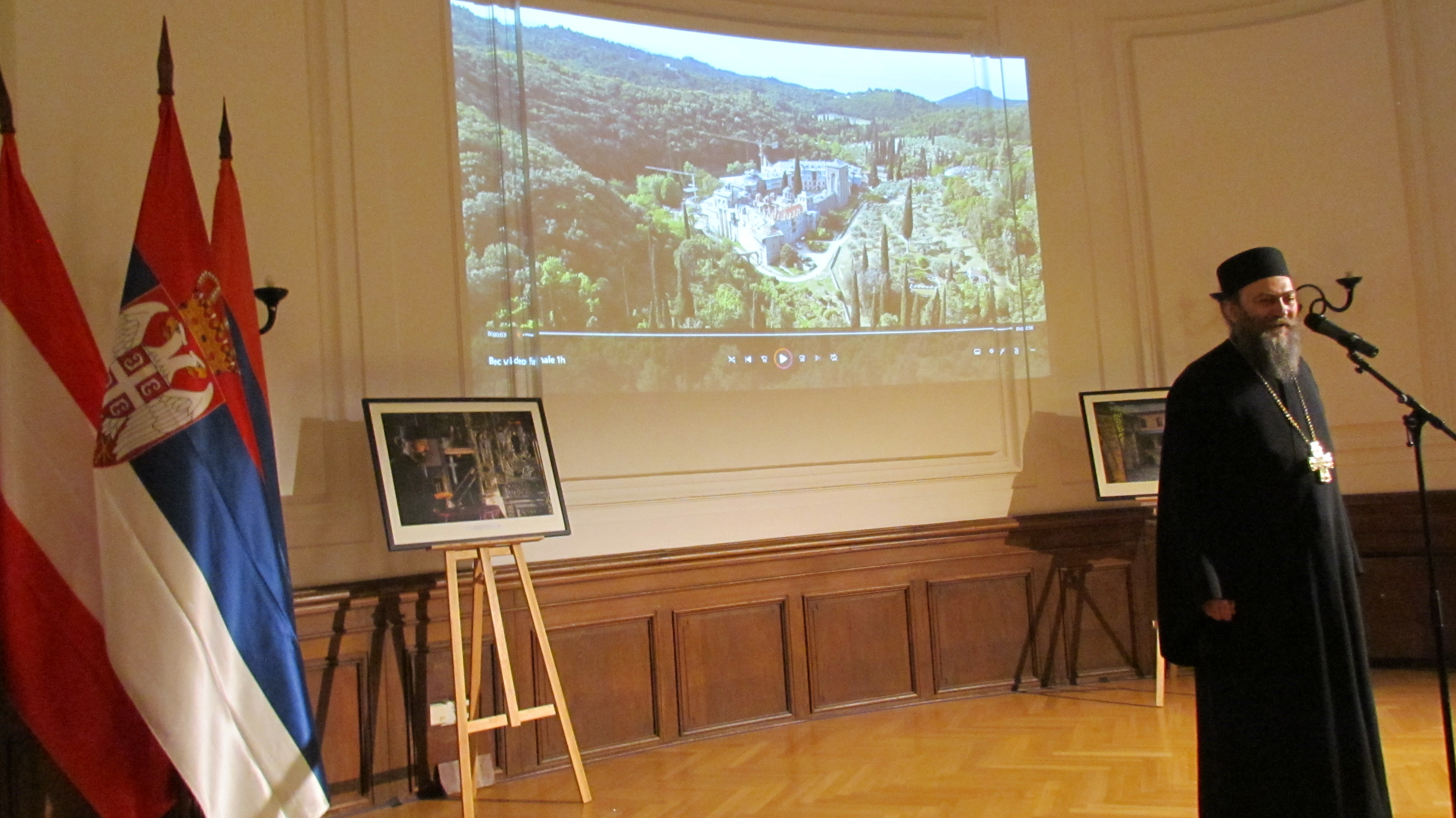 Са благословом Његовог Високопреосвештенства Митрополита бачког и администратора Епархије аустријске господина др Иринеја, у петак 3/16. јануара 2026. године уприличена је у главном граду Аустрије изложба фотографија Српске Царске лавре Манастира Хиландара са Свете Горе. Поздравну беседу изговорио је Његово Преосвештенство Епископ мохачки и викар Митрополита бачког господин Дамаскин, док је изложбу отворио високопреподобни игуман Хиландара архимандрит Методије. Догађају су присуствовали Његово Преосвештенство Епископ осечкопољски и барањски господин Херувим, ђакони и свештеници Епархије бачке и Епархије аустријске, Његова екселенција господин Марко Благојевић, амбасадор Републике Србије у Аустрији, Његова екселенција господин Синиша Бенцун, амбасадор Босне и Херцеговине у Аустрији, господин Денис Шулић, министар трговине и туризма Републике Српске, господин проф. др Жарко Обрадовић, амбасадор – стални представник Републике Србије при ОЕБС-у и другим међународним организацијама у Бечу, господин Младен Филиповић, шеф Представништва Републике Српске у Аустрији, господин др Ненад Иванишевић, покрајински секретар Аутономне покрајине Војводине за привреду и туризам, господин Марко Ромић, председник Комисије за Хиландар Републике Српске, као и велики број угледних дипломата и личности из јавног и културног живота. На фотографијама монаха Милутина Хиландарца приказани су Саборни Храм Хиландара, бројна пратећа светилишта, конаци, скитови, бунари, виноград, библиотека и простори у којима испосници обитавају, савршавају богослужења и обављају своја послушања и стварају рукодеље, служећи Богу и Светом Сави, и проводећи дуге часове пред великим бројем чудотворних икона, моштију и реликвија. Била је ово прилика да се посетиоци визуелно упознају са богослужбеним и испосничким животом и радом једног од најстаријих и најзначајнијих српских манастира, који баштини непролазна и непроцењива сведочанства о српском народу и његовом изузетном доприносу европској хришћанској култури. Изложба светлописа представља припрему за примопредају верног преписа иконе Богородице Тројеручице храму Светог Саве у Бечу, 17. јануара 2026. године у 18 часова.