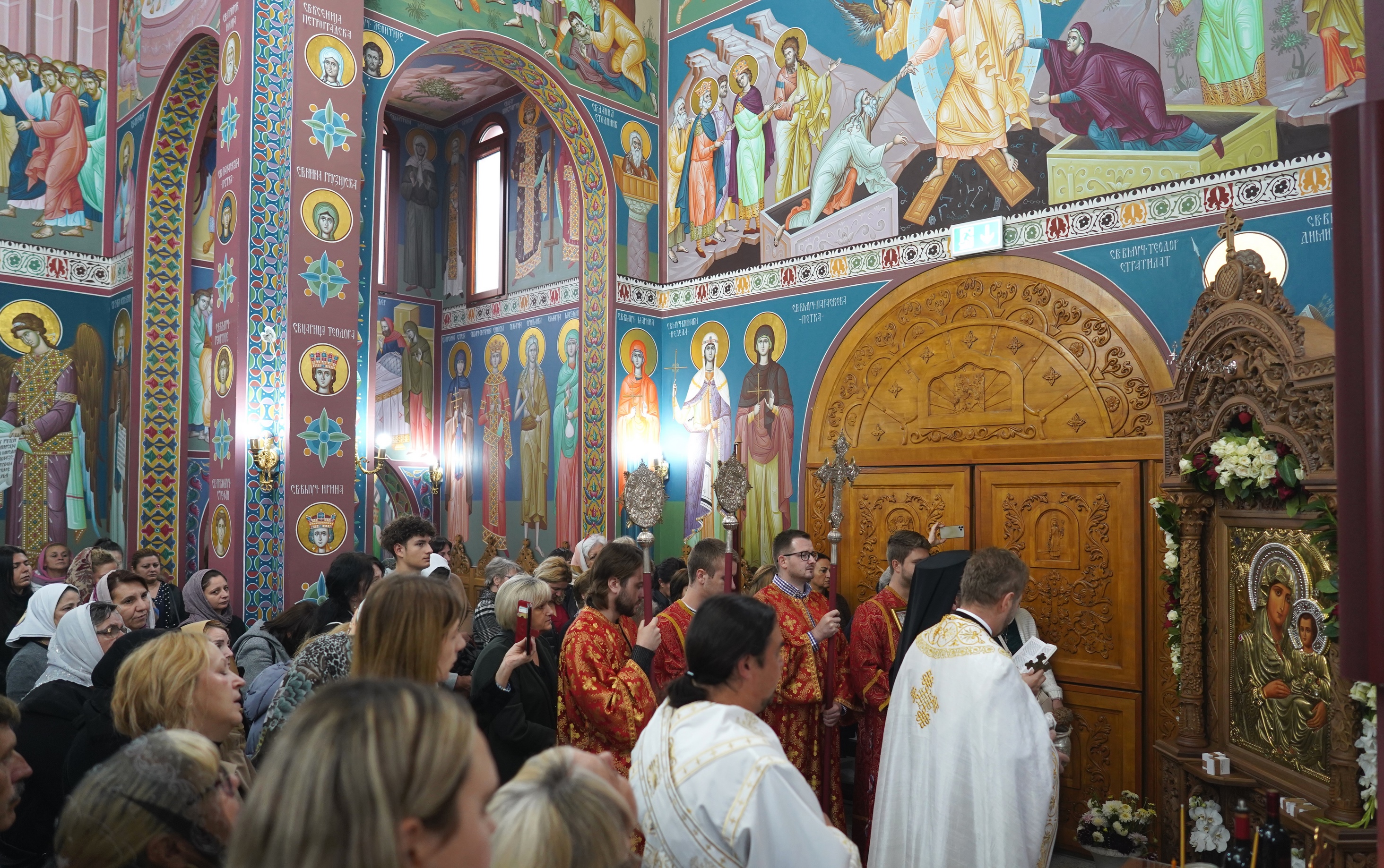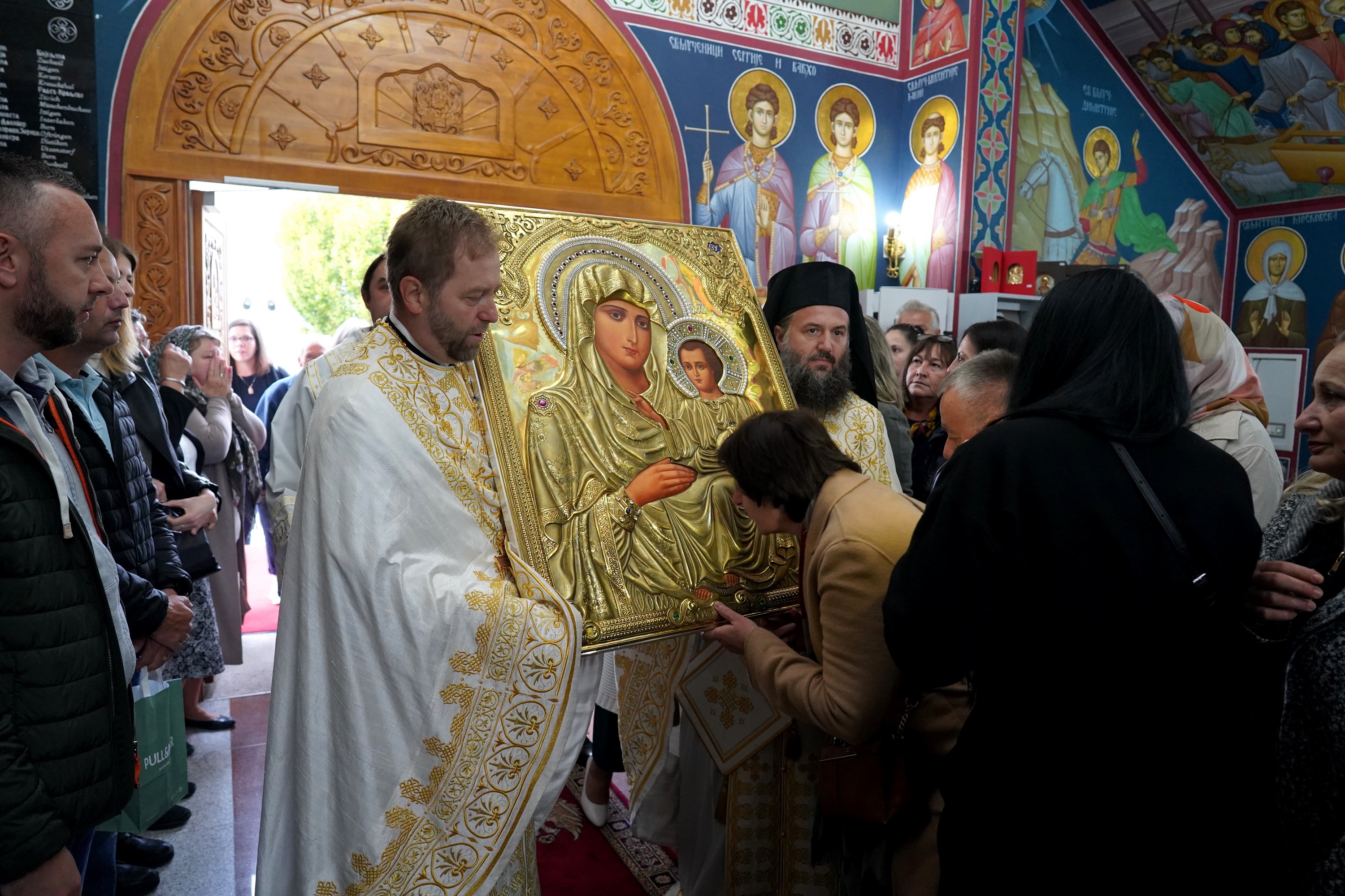 Након Свете Литургије верници су са страхопоштовањем прилазили и целивали Свету Икону, примивши по једну иконицу Богородице, благослов и помазивање освећеним уљем од свештенослужитеља.