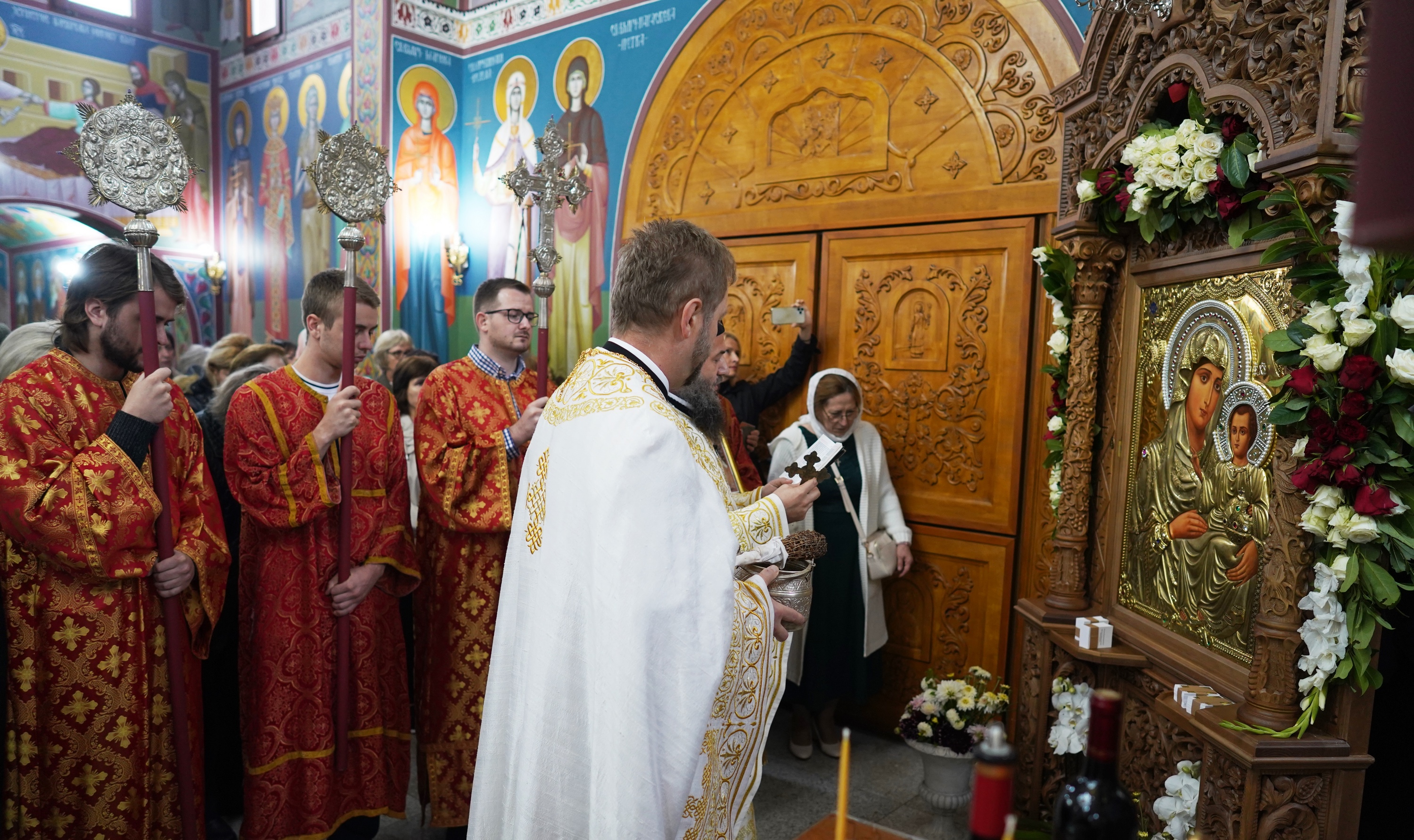 Пре Свете Литургије архимандрит Василије и прота Станко, настојатељ храма, унели су икону у Храм уз певање химне Пресветој Богородици, а верни народ је побожно са страхом прилазио и целивао Свету Икону. Након полагања Свете Иконе у припремљени и цвећем окићени трон обављен је обред освећења.