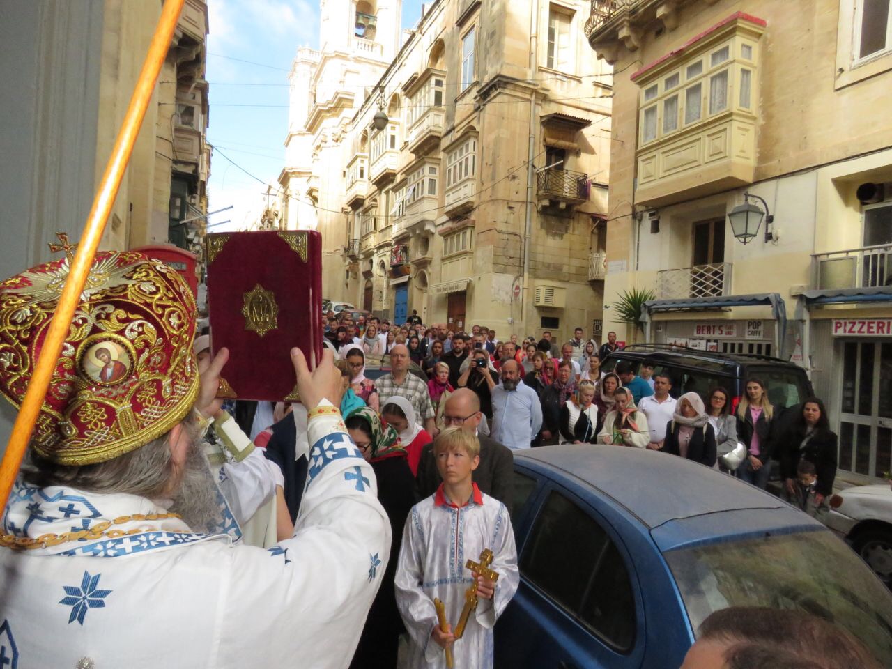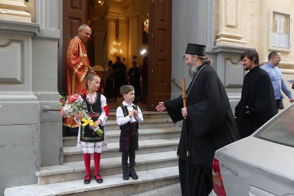 Током Страсне недеље и Васкрса, Епископ аустријско – швајцарски Господин Андреј боравио је на Малти. На Велики Четвртак, ујутру служена је Литургија Св. Василија Великог где се велики број народа причестио. У вечерњим часовима служена је јутарња служба са читањем дванаест Јеванђеља о страдању Господа Исуса Христа којом је началствовао Епископ Андреј. Јеванђеља су читали наизменично на српском и руском језику Епископ Андреј и парох малтешки отац Ристо. По завршеном богослужењу сабрање је настављено у сали где је Коло српских сестара припремило послужење. Сутрадан, на Велики петак у јутарњим часовима, у седишту Надбискупије на Малти одржан је састанак Епископа Андреја, пароха малтешког јереја Ристе Горанчића, председника Црквене општине Малта господина Љутомира Ђуровића и подпредседника господина Горана Тонкића са викаром надбискупа , бискупом Јозефом Галеом и секретаром оцем Хектором Скери. Разговарало се о стању наше Цркве на Малти и побољшању црквеног живота и међуверских односа. У вечерњим сатима одслужена је вечерња служба са изношењем Плаштанице, којом је началствовао Преосвећени Владика Андреј уз саслужење надлежног пароха јереја Ристе Горанчића. Током вечерње службе појала су два хора, српски и руски. Богослужењу је присуствовао и отац Џорџ Мифсуд, грко католички свештеник, старешина Цркве Св. Николе у којој наша црквена заједница одржава Литургије. На Велику суботу служена је Св. Архијерејска литургија, на којој је Преосвећени Владика Андреј причестио велики број верника. У поподневним сатима одржан је радни састанак Епископа Андреја са чланова Црквене општине Малта и парохом малтешким, на коме се разговарало о стању парохије по доласку сталног свештеника, могућности добијања Цркве на Малти и другим питањима.
