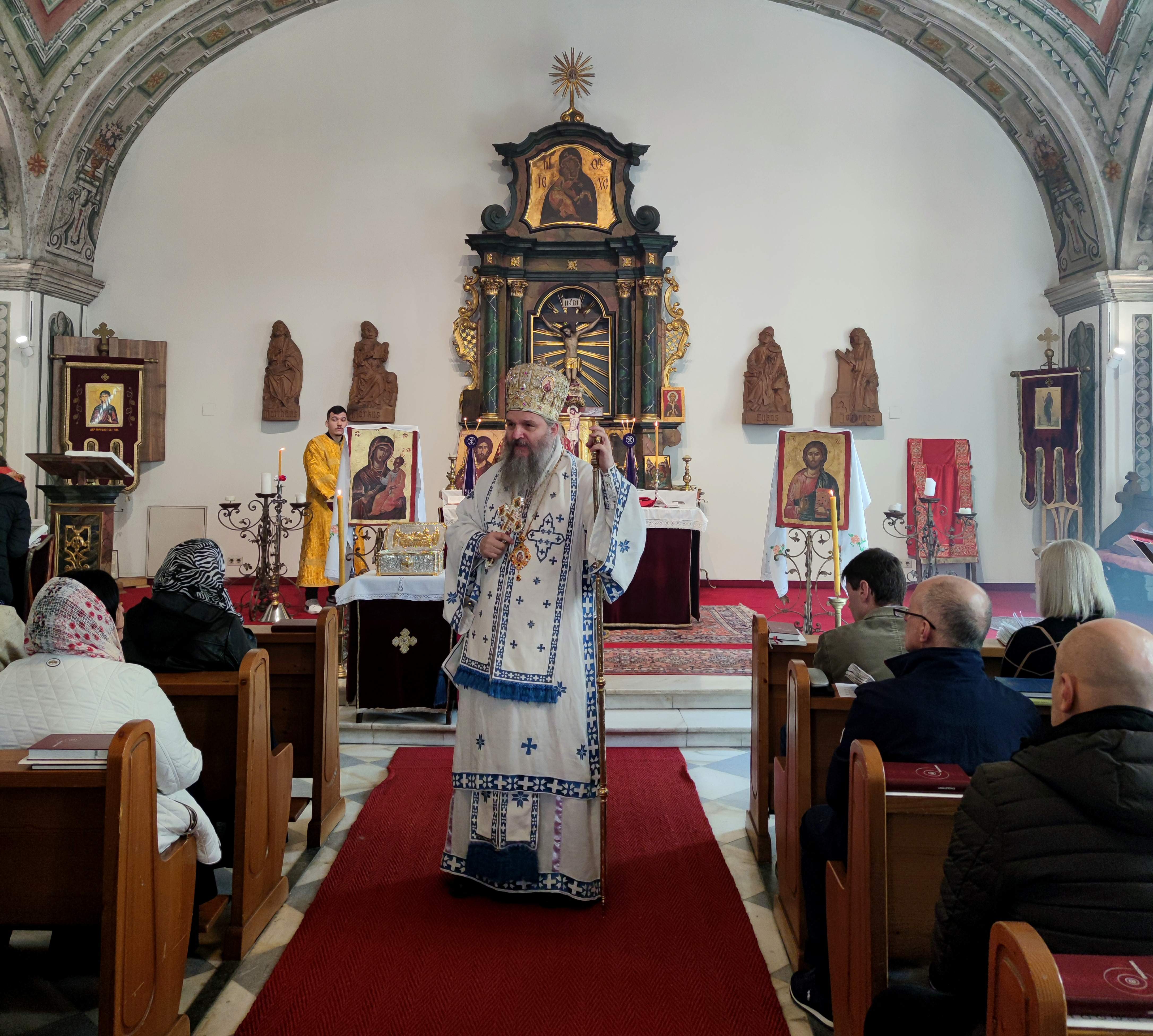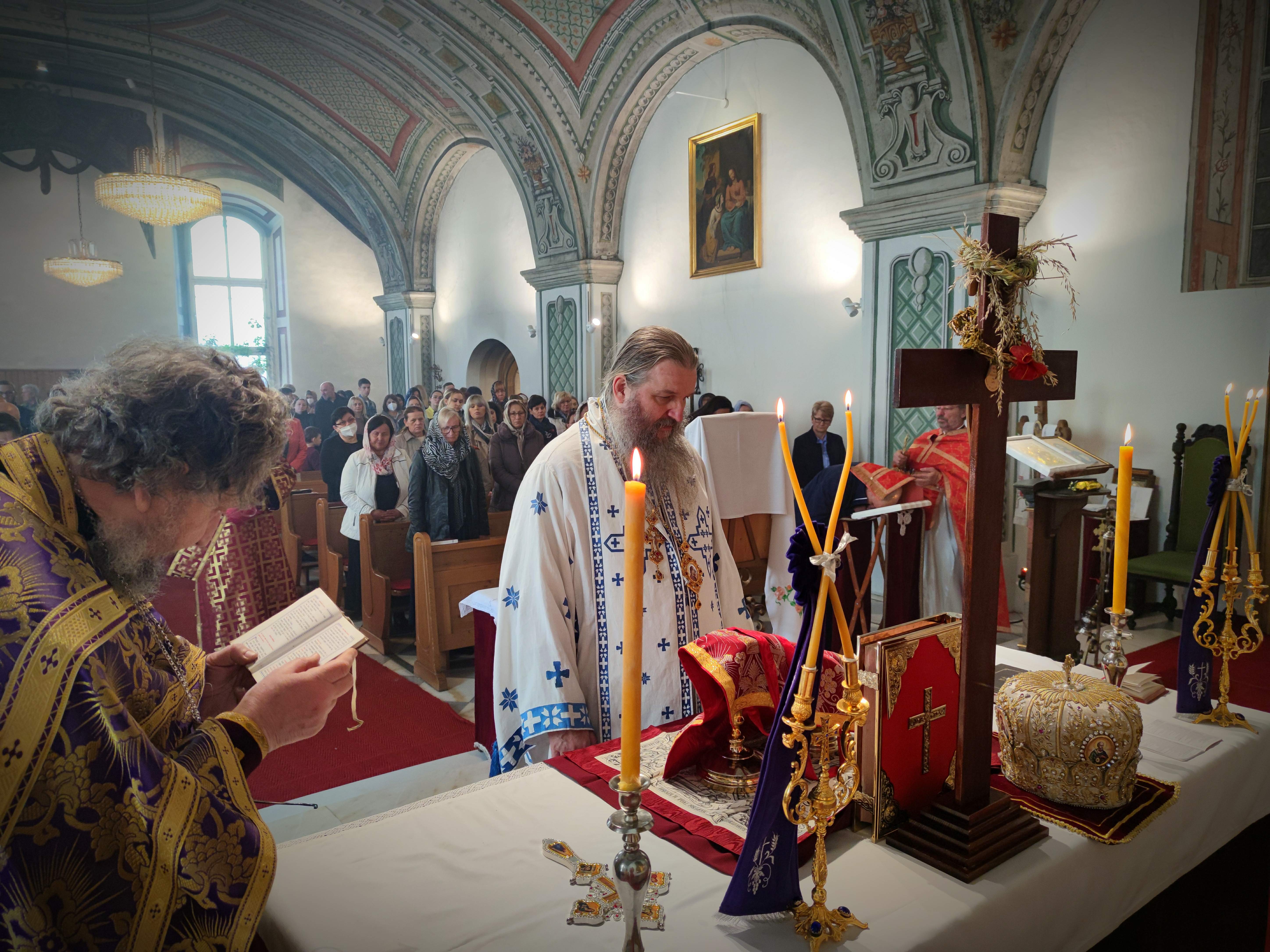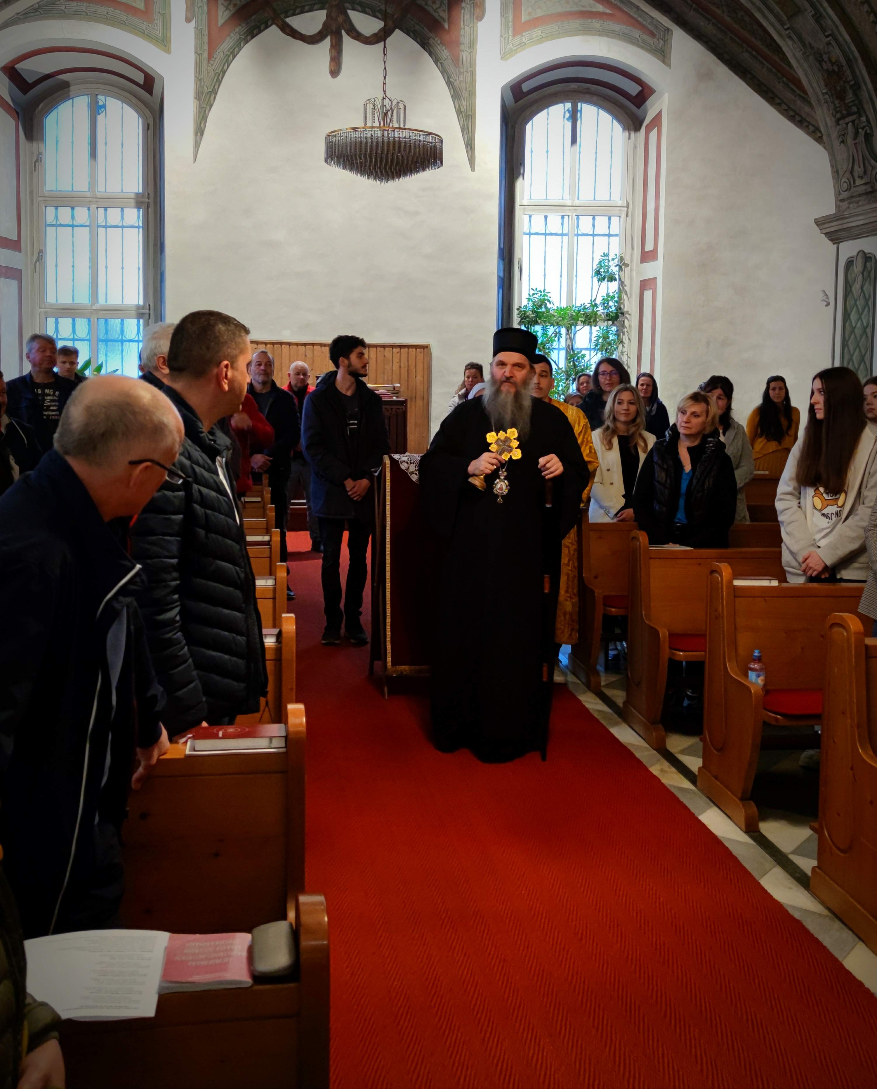 Уочи Треће недеље Васкршњег Поста, 25. марта 2022. године, Његово Преосвештенство Епископ аустријско-швајцарски, Италије и Малте Г. Андреј, у пратњи дипл. теол. Александра Савића из Беча, допутовао је у дводневну посету Црквеној општини Преподобне Мајке Параскеве у Клагенфурту. Испред храма, Преосвећеног Епископа је свечано дочекао надлежни парох јереј Љубомир Радованов заједно са месним парохом Румунске Православне Цркве о. Висарионом и ђаконом старокатоличке цркве Томасом Шолцем.