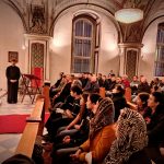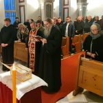 У 18 часова је одслужено Повечерје са каноном пред светим Причешћем којом је началствовао отац Висарион. На крају службе изнете су мошти Светог Владике Николаја, које однедавно духовно обогаћују Саборни храм аустријске престонице. Верни народ је са великим страхопоштовањем прилазио да целива мошти Владике Николаја како и доликује тако великом српском Светитељу! У својој беседи, Владика Андреј је поздравио присутни народ и захвалио се на љубави и поштовању које верници имају према својој Цркви и према Светом Владици Николају. После службе, приређено је послужење при парохијској сали.