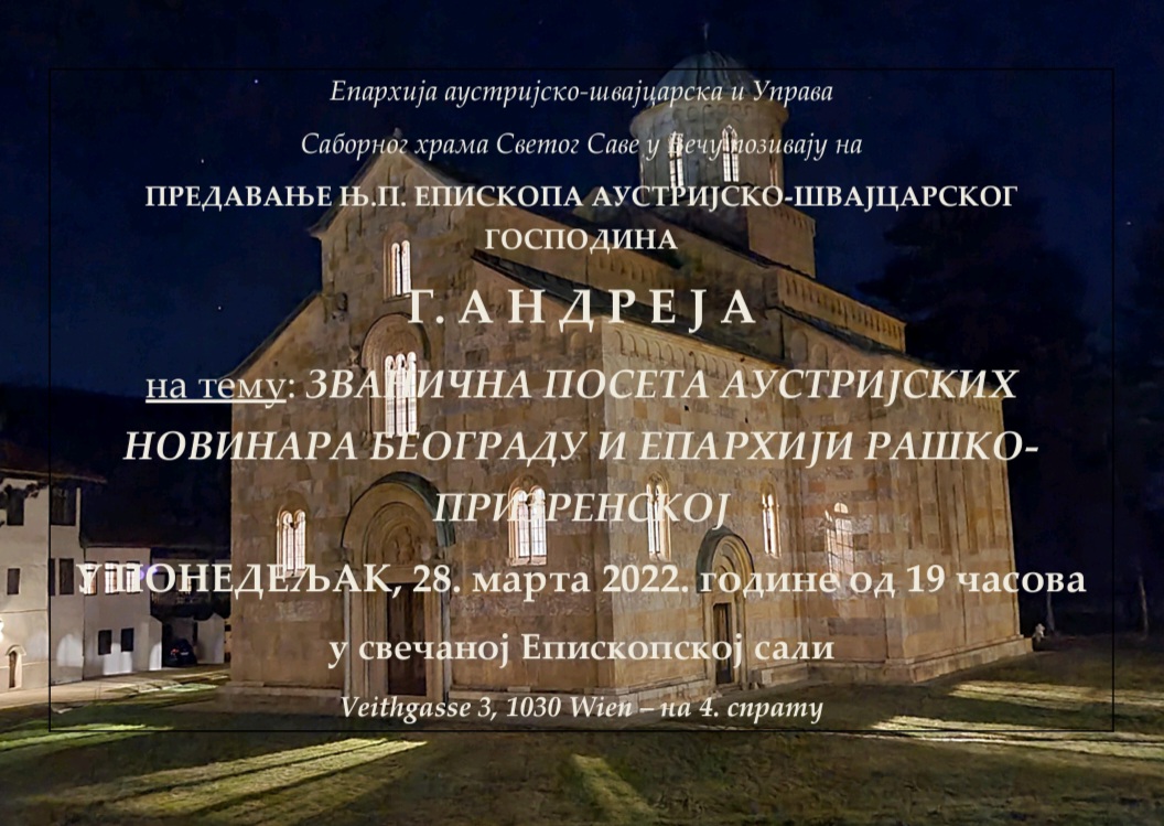 Најава: Предавање Епископа Андреја на тему званичне посете аустријских новинара Београду и Епархији рашко-призренској