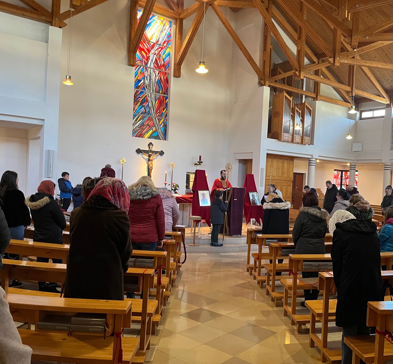 Након Свете Тајне Причешћа и поделе нафоре, отац Никола је вернима пренео благослов Његовог Преосвештенства Епископа аустријско-швајцарског Господина Андреја, који је апеловао на солидарност са народом у ратом захваћеној Украјини. Владика је овом приликом позвао вернике да као припадници народа, који је на својој кожи осетио страшне последице ратних дешавања, дамо свако у складу са својим могућностима прилог, који ће бити послан потребитима у Украјини.