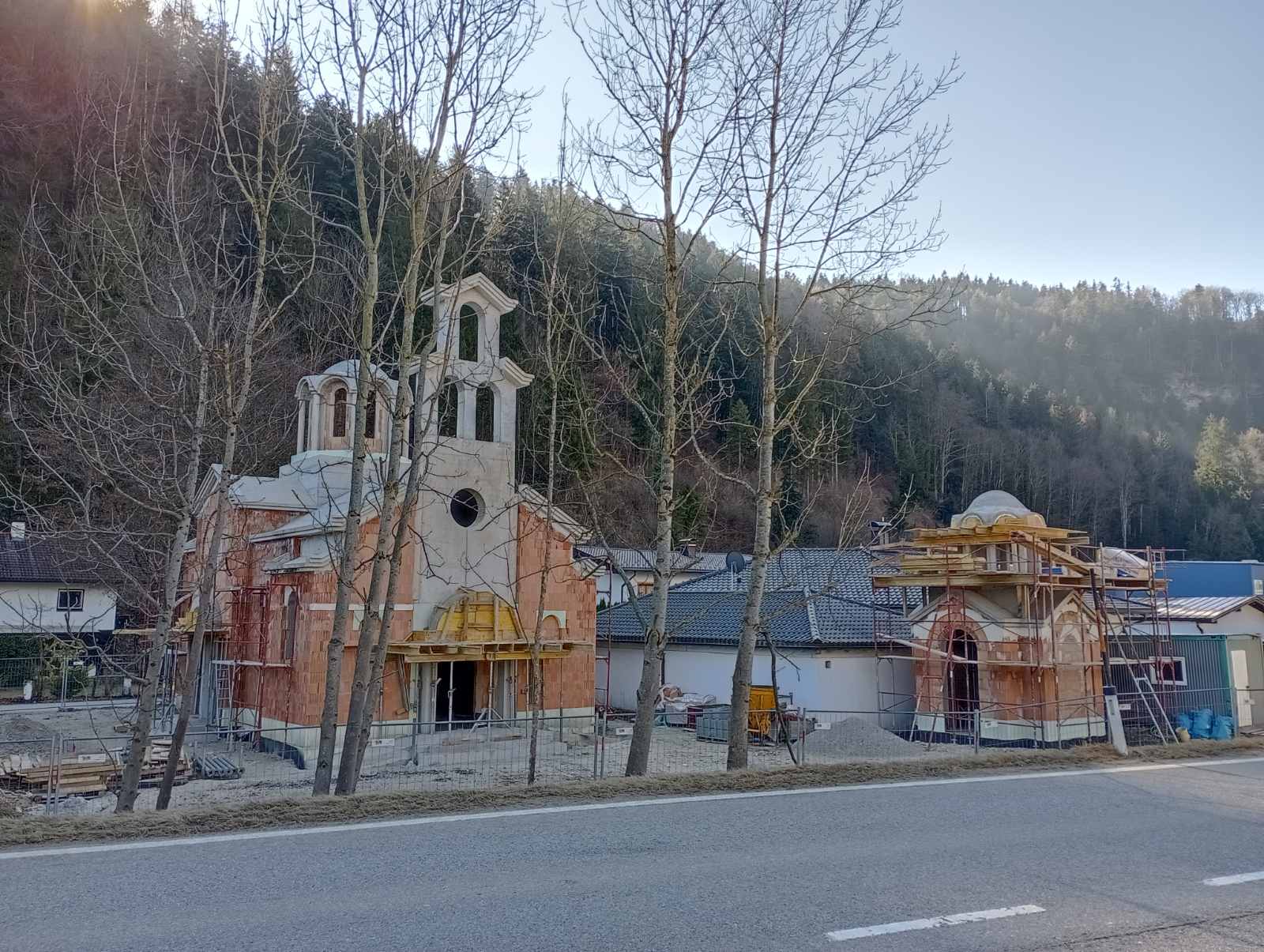 Након окрепљења после литургије, домаћини су госте одвели до новоизграђеног храма Св. Висариона Исповедника, где су они имали прилике да се увере о напретку изградње овог богоугодног дела, важног не само за парохијане куфштајнске парохије, већ и много шире.