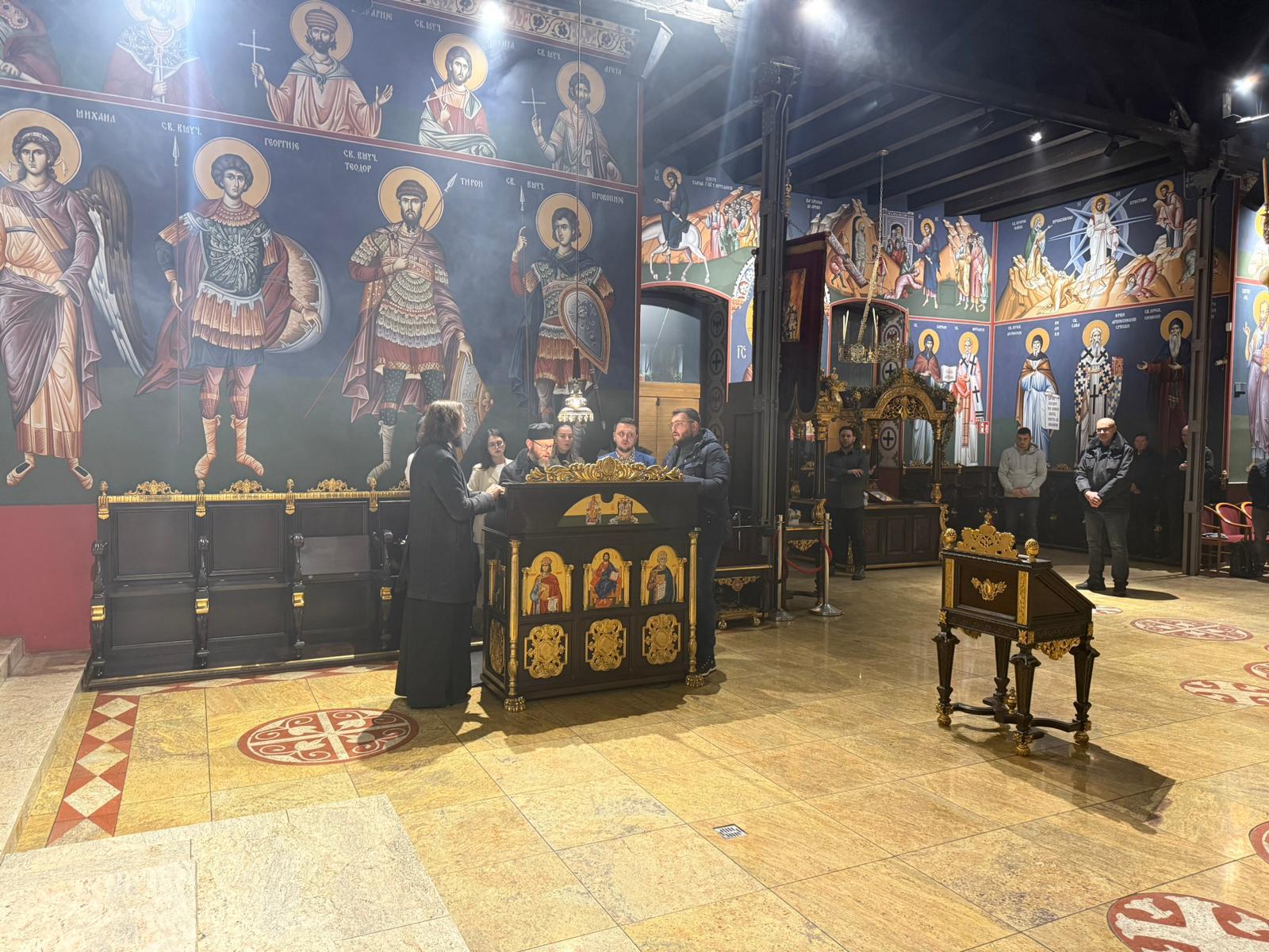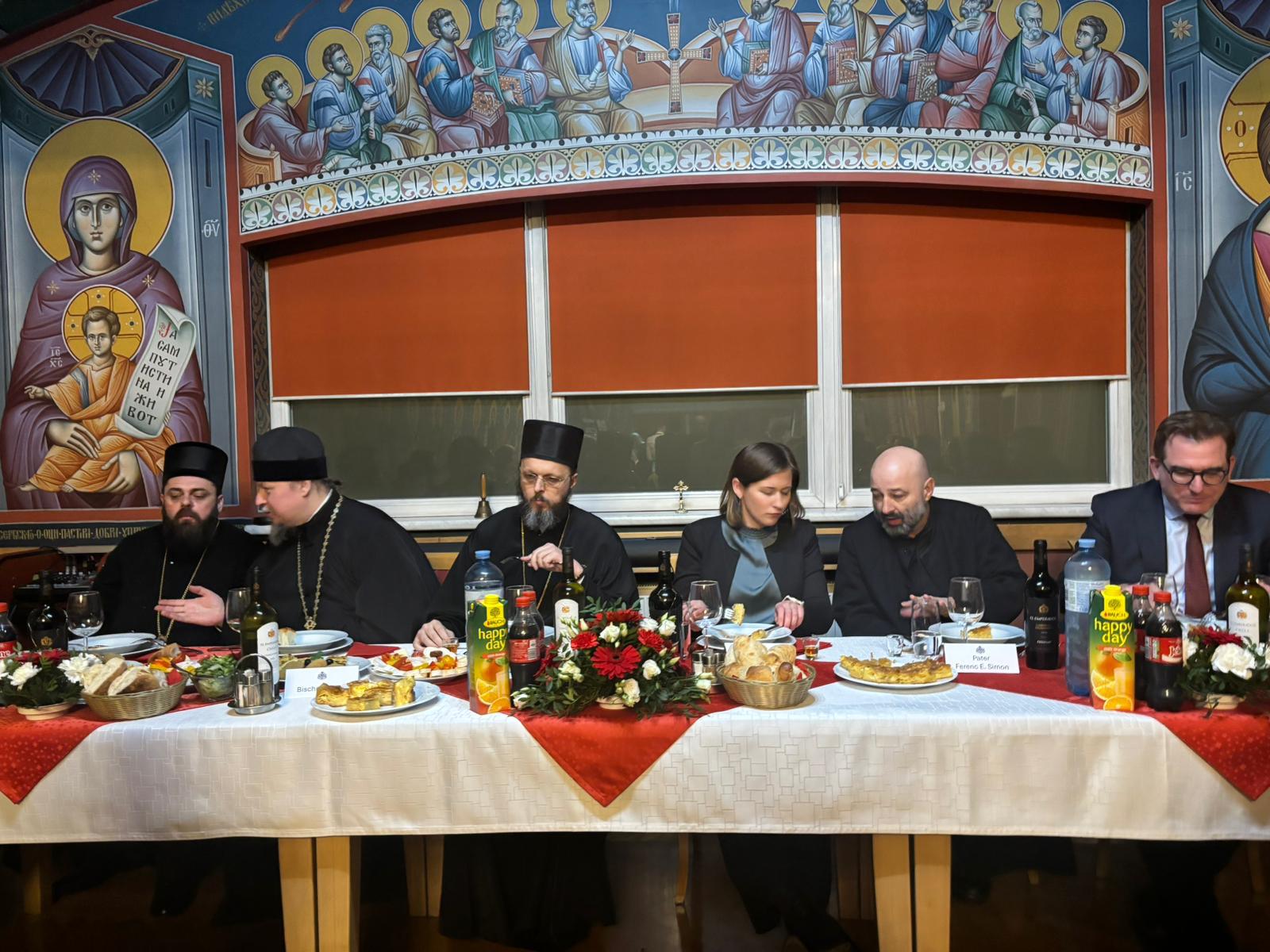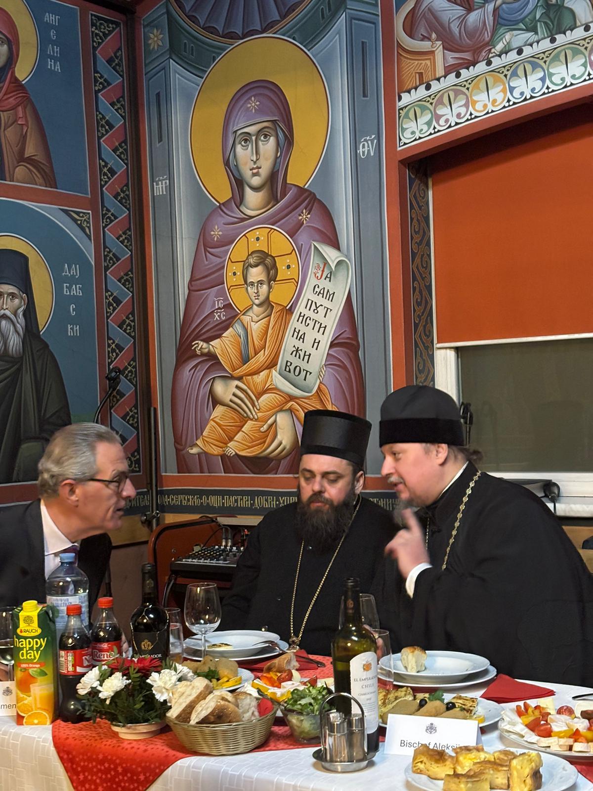 Владика Дамаскин поздравио је у Храму све госте на немачком језику и пожелео је свима благослов Божији у наступајућој Новој години. Госпођа министар Клаудиа Бауер захвалила се у свом говору домаћинима за време трпезе љубави, изразила је благодарност за досадашњу сарадњу и душебрижништво о православним верницима у Аустрији, поменула је лепоту богослужбеног простора који је на њу оставио приличан утисак, и истовремено је истакла важност породице и заједништва.