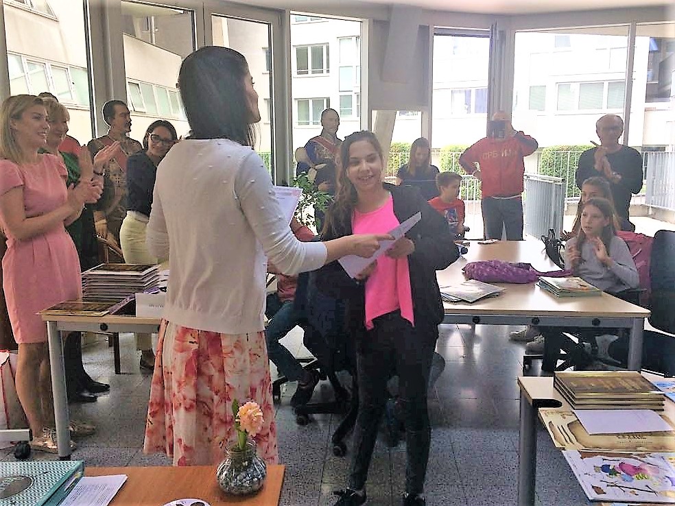 У недељу, 24. јуна 2018. године, полазницима Просвјетине „Школе српског језика“ свечано су уручена сведочанства о похађању. Додели су, поред ђака, родитеља, свештенства, присуствовали и сви Просвјетини педагози на челу са потпредседницом Просвјете, госпођом Светланом Матић. Званично је завршена пета школска година овог пројекта допунске школе. Ученици су, осим сведочанства, добили и дипломе часописа за децу Витез, као и књиге на поклон. Књиге су дониране од пријатеља Просвјете – часописа Витез из Београда, па ће ђаци на распусту моћи да вежбају ћирилицу уз Најлепше песме и приче Витезове антологије песника Недељка Попадића.