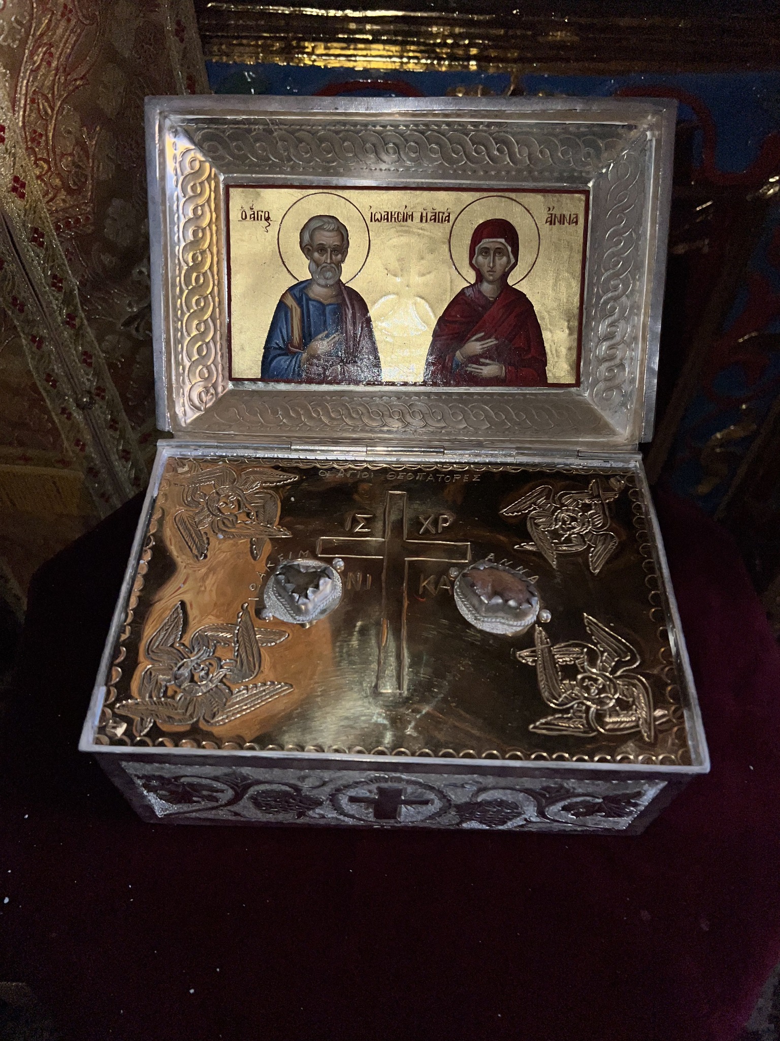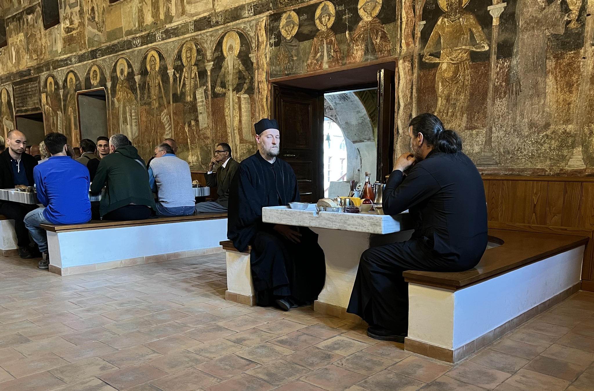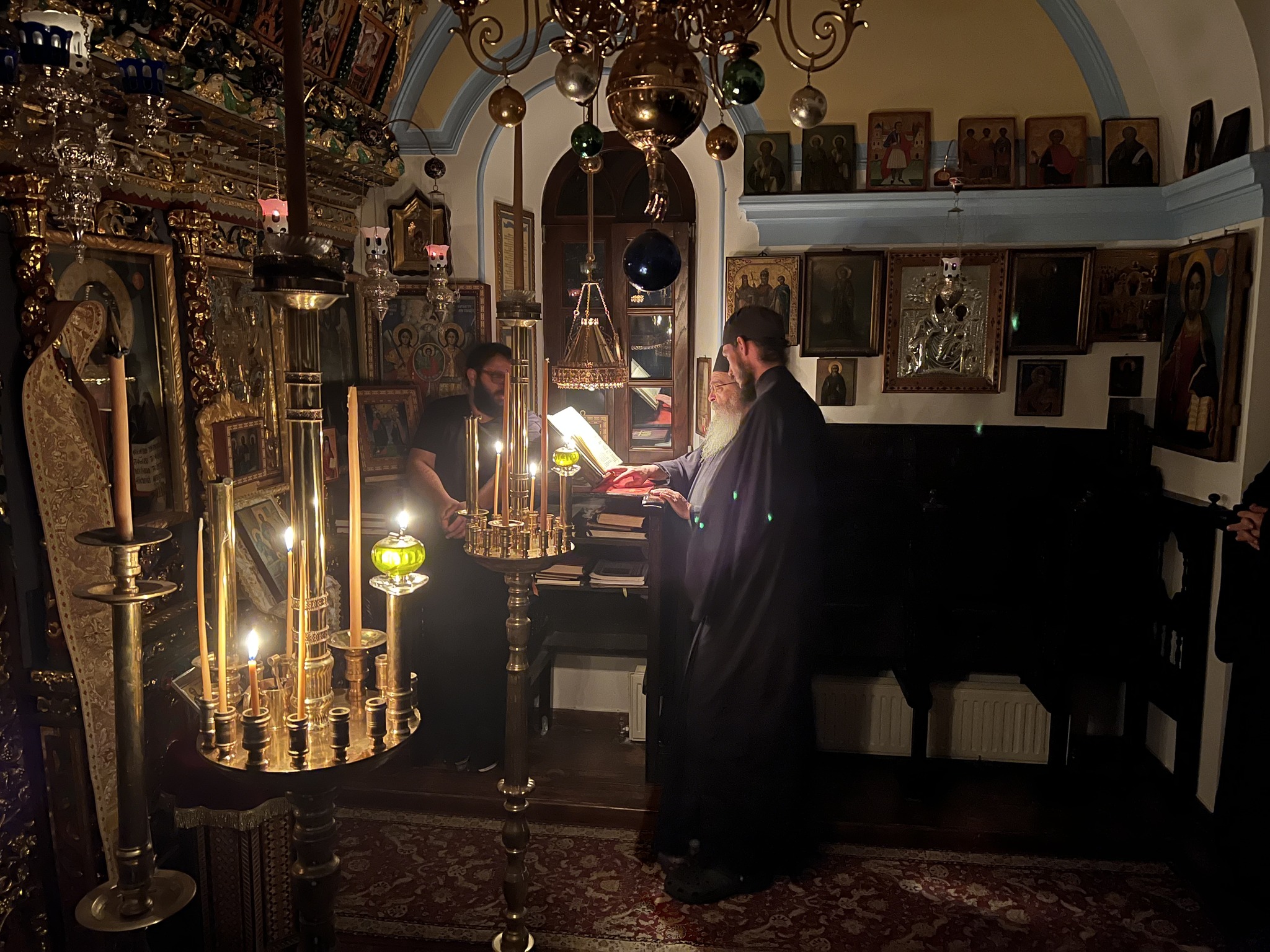 Очинско гостопримство у келији Свете Ане надомак Кареје свештеницима је пружио отац Антипа Скандалакис. Свештеници су се поклонили моштима ових светила Цркве, које се чувају у келији, уз молитвено учешће на богослужењима у келијској капели на празник Светих Јоакима и Ане.