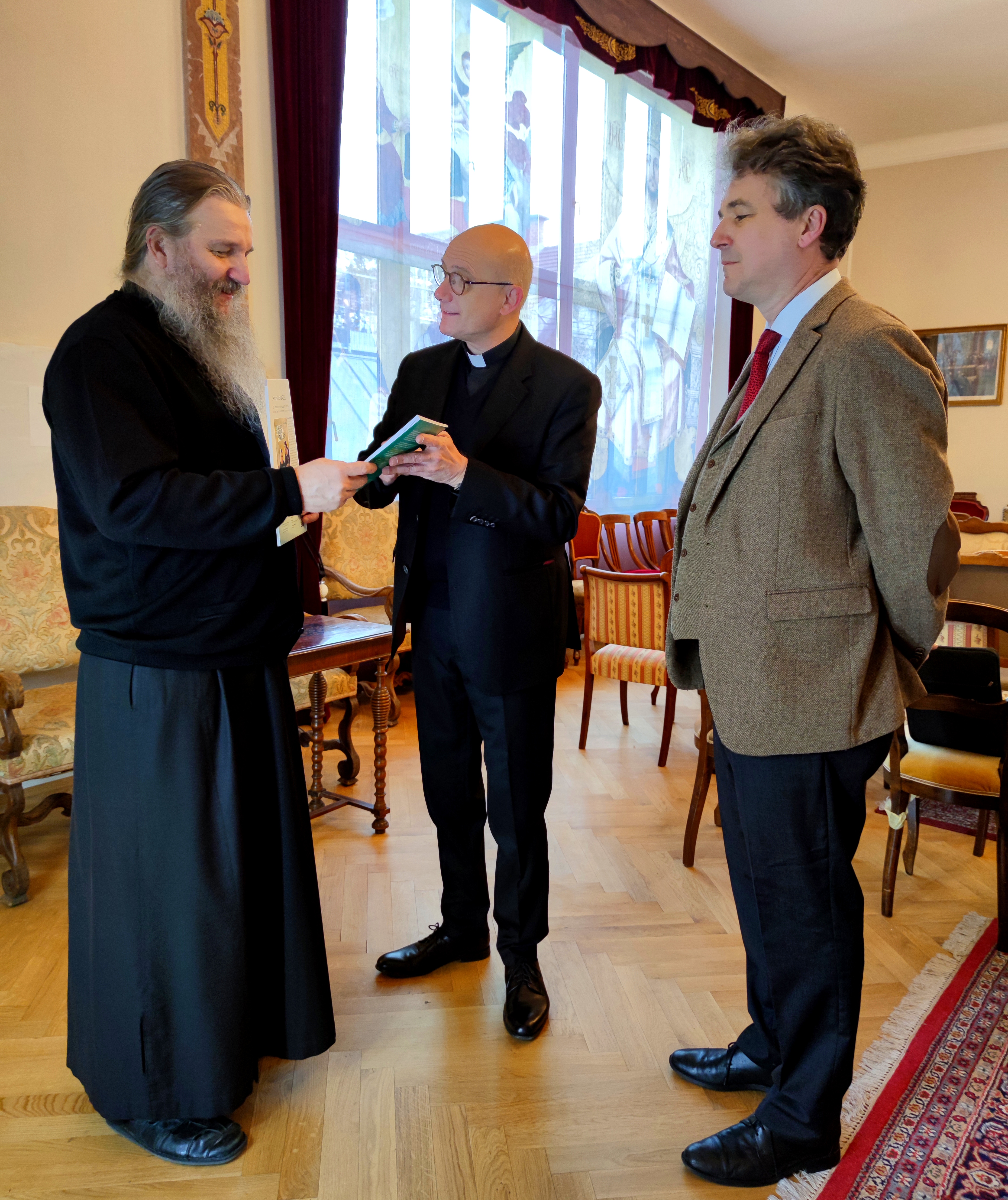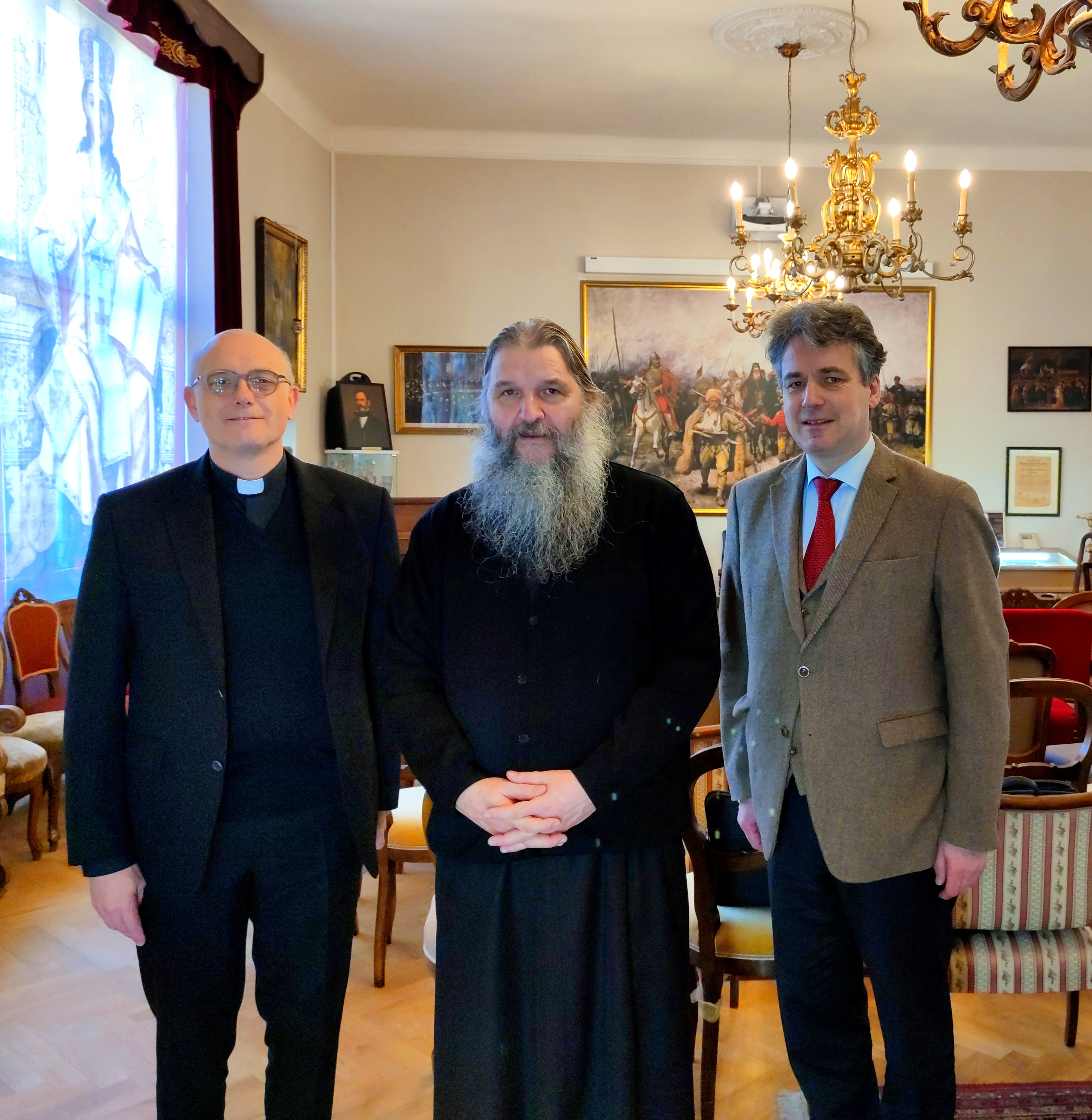 Његово Преосвештенство Епископ аустријско-швајцарски Господин Андреј приредио је у својој резиденцији у Владичанском двору у Бечу, у уторак 15. фебруара 2022. године, пријем за високу делегацију немачке римокатоличке добротворне Фондације солидарности Реновабис (Renovabis) из Минхена: новог директора фондације др. Томаса Шварца (Prof. Dr. Thomas Schwartz) и отправника послова Фондације др. Марка Ингелата (Dr. Markus Ingenlath).