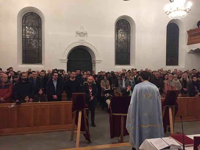 Поздрављајући вернике радосним божићним поздравом Мир Божји! Христос се роди!, отац Бране је свима честитао Рођење Богомладенца, позвао их да се редовно срећу у овоме и другим храмовима широм Швајцарске на богослужењима, као и да учествују у унапређењу парохијског хора. Окупљени данас око божићне трпезе, не смемо да заборавимо да има гладних и сиромашних, стога се опомињимо да чинимо добро потребитима, нагласио је свештеник.