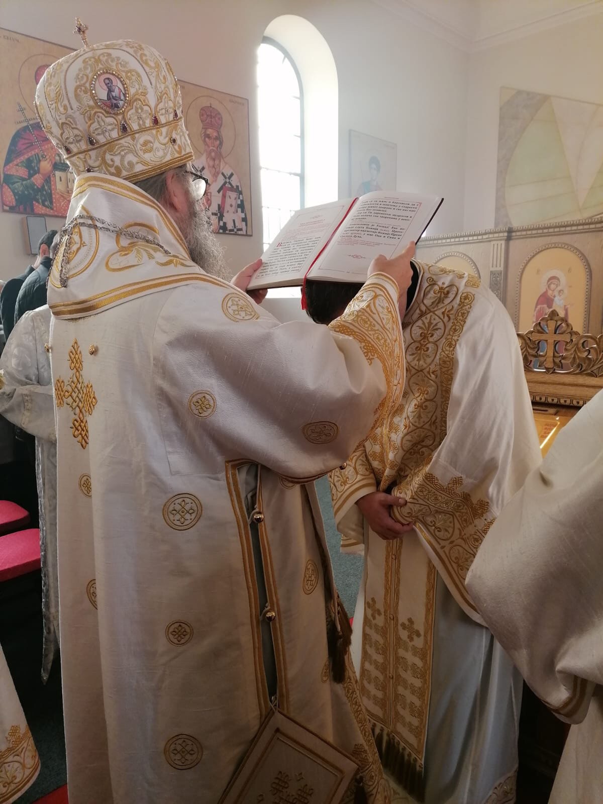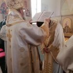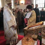 У току литургије, након малог входа, Епископ Андреј је одликовао надлежног пароха о. Александра Ресимића достојанством протојереја, похваливши га за ревност и труд. У својој беседи, Епископ Андреј се осврнуо на позив упућен Апостолима Андреју и Петру, рекавши да је то у исто време и позив упућен свима нама, јер иако смо хришћани по васпитању, потребно је да постанемо и хришћани по убеђењу.