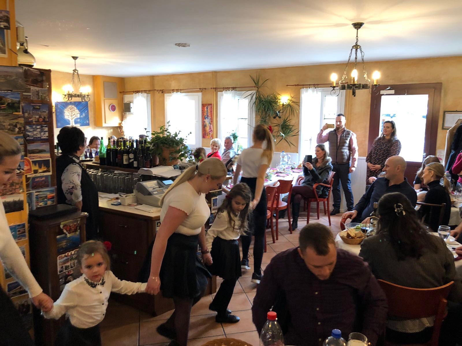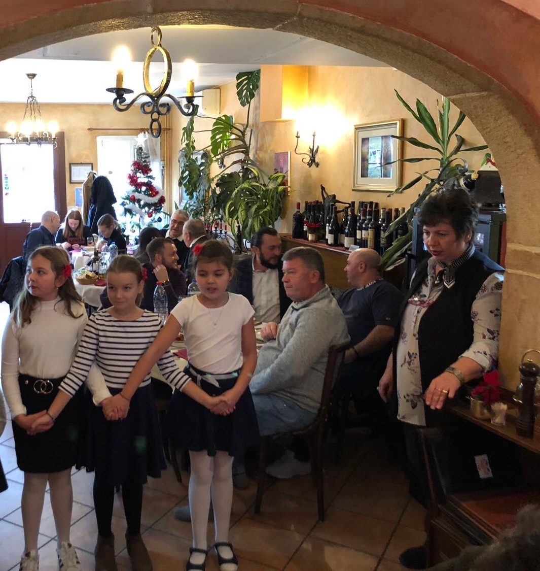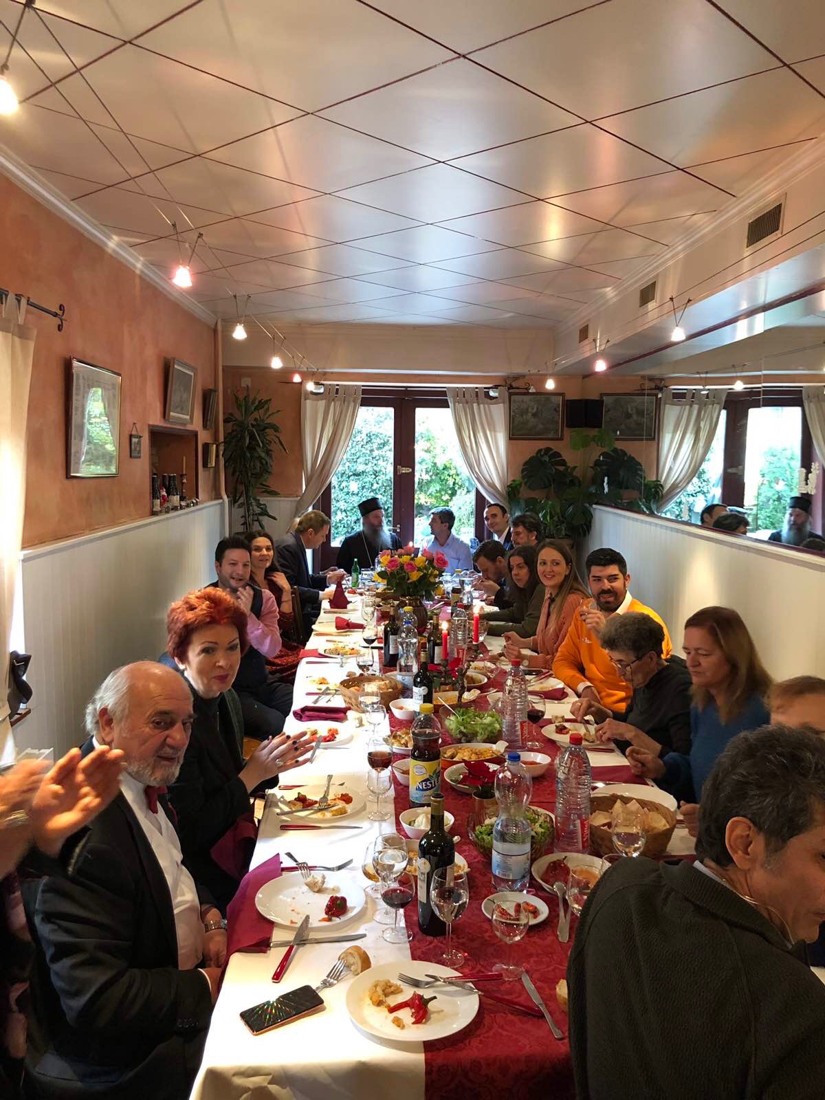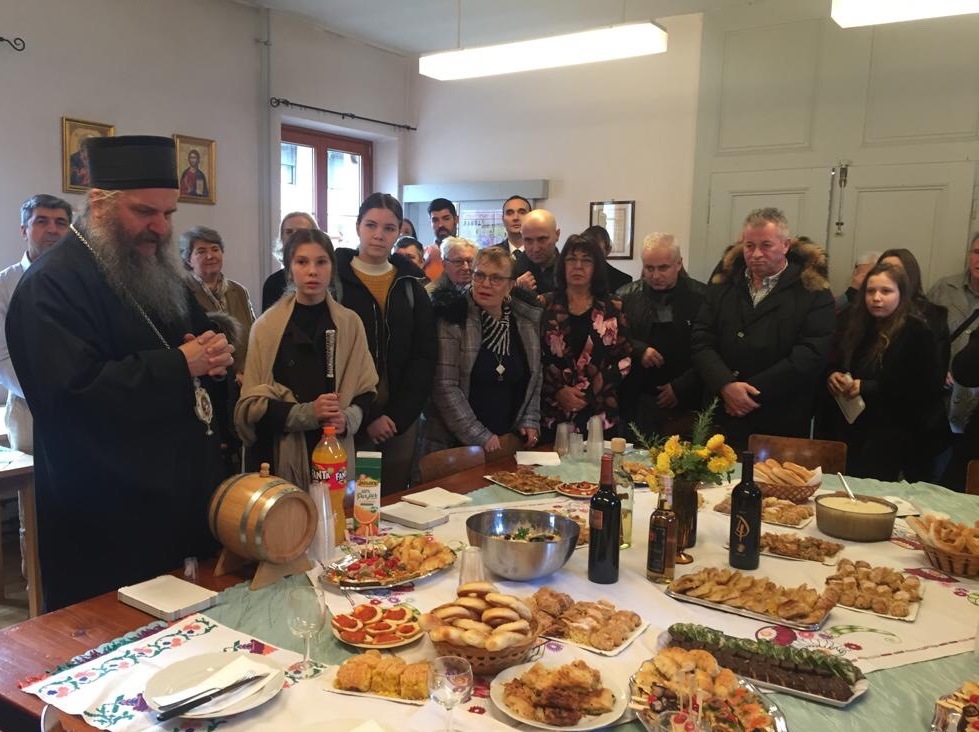Кум овогодишње славе био је г. Тодор Јовановић, предузетник из Женеве, који се са својом породицом потрудио да допринесе и улепша овогодишњу прославу Светог апостола Андреја Првозваног. Након послужења у парохијској сали, гости су прешли на славски ручак који је традиционално приређен у ресторану код Панте на Гранд Саконеу.