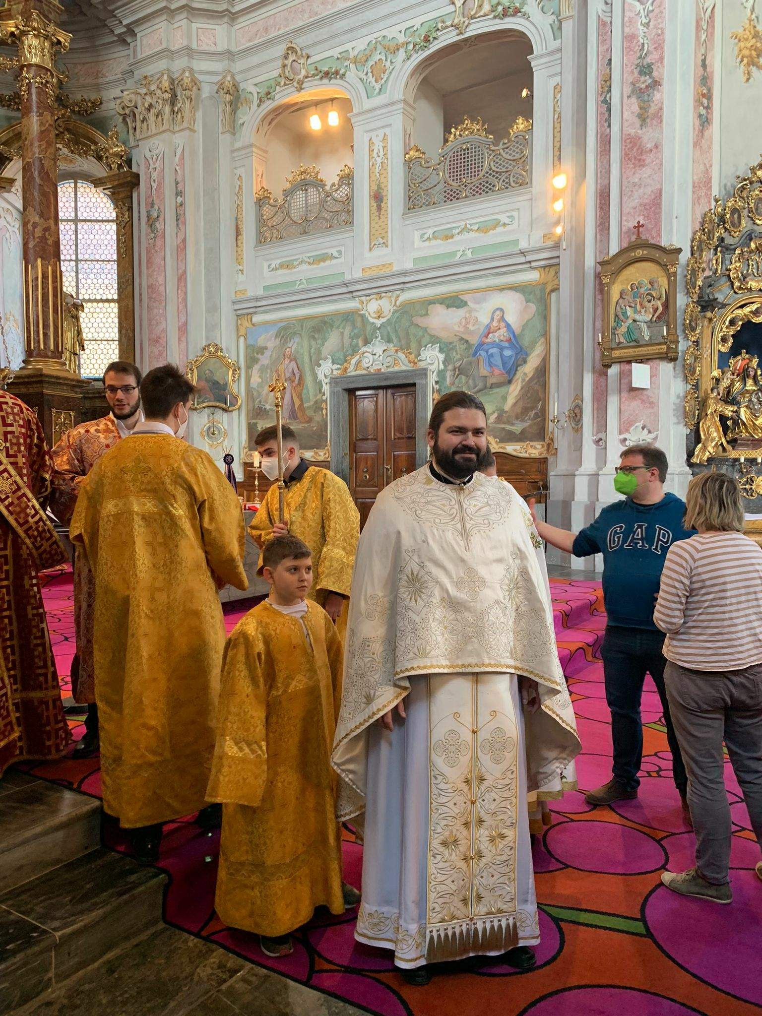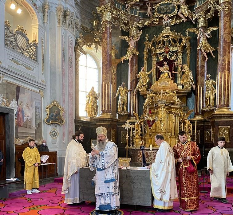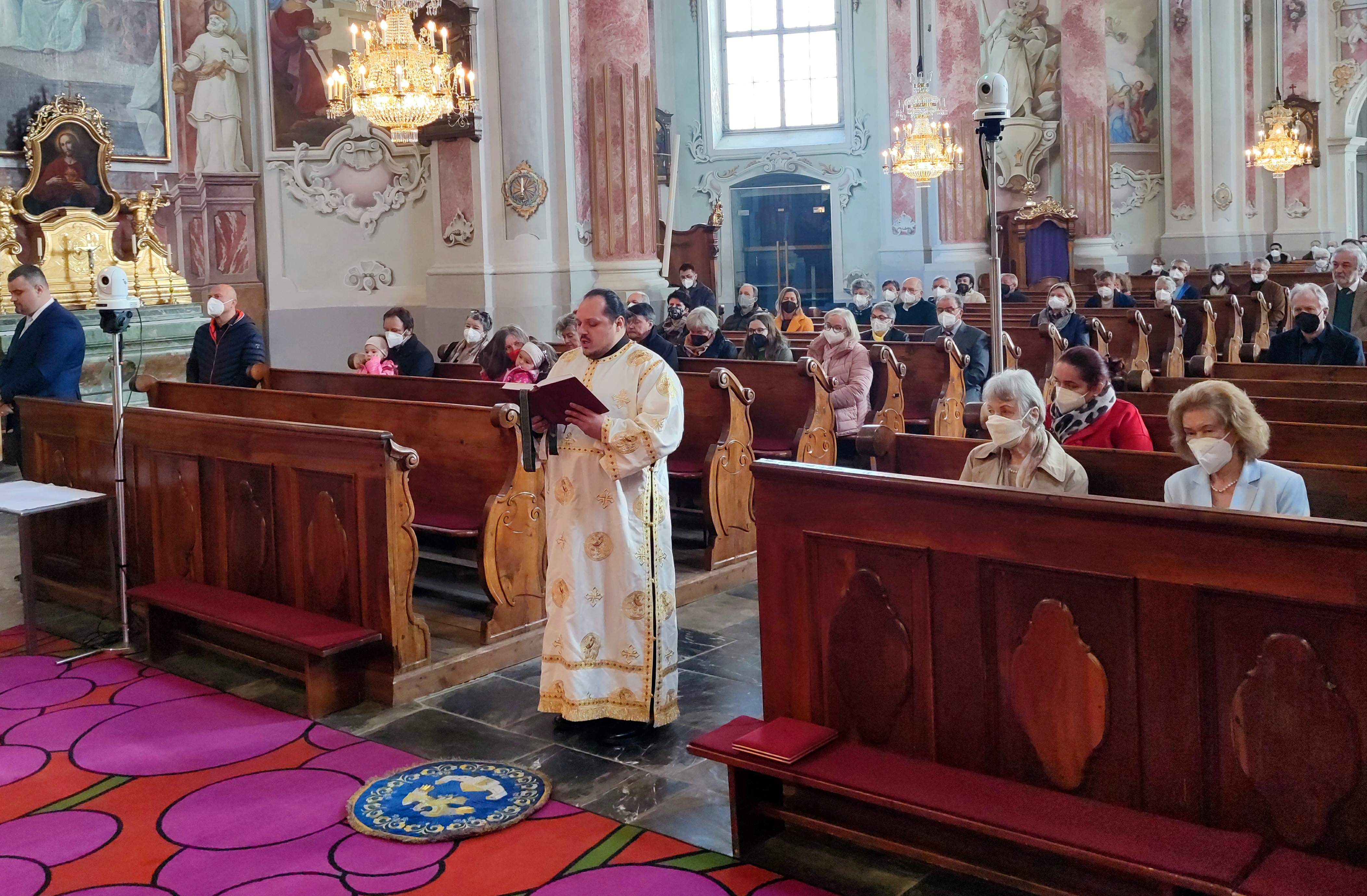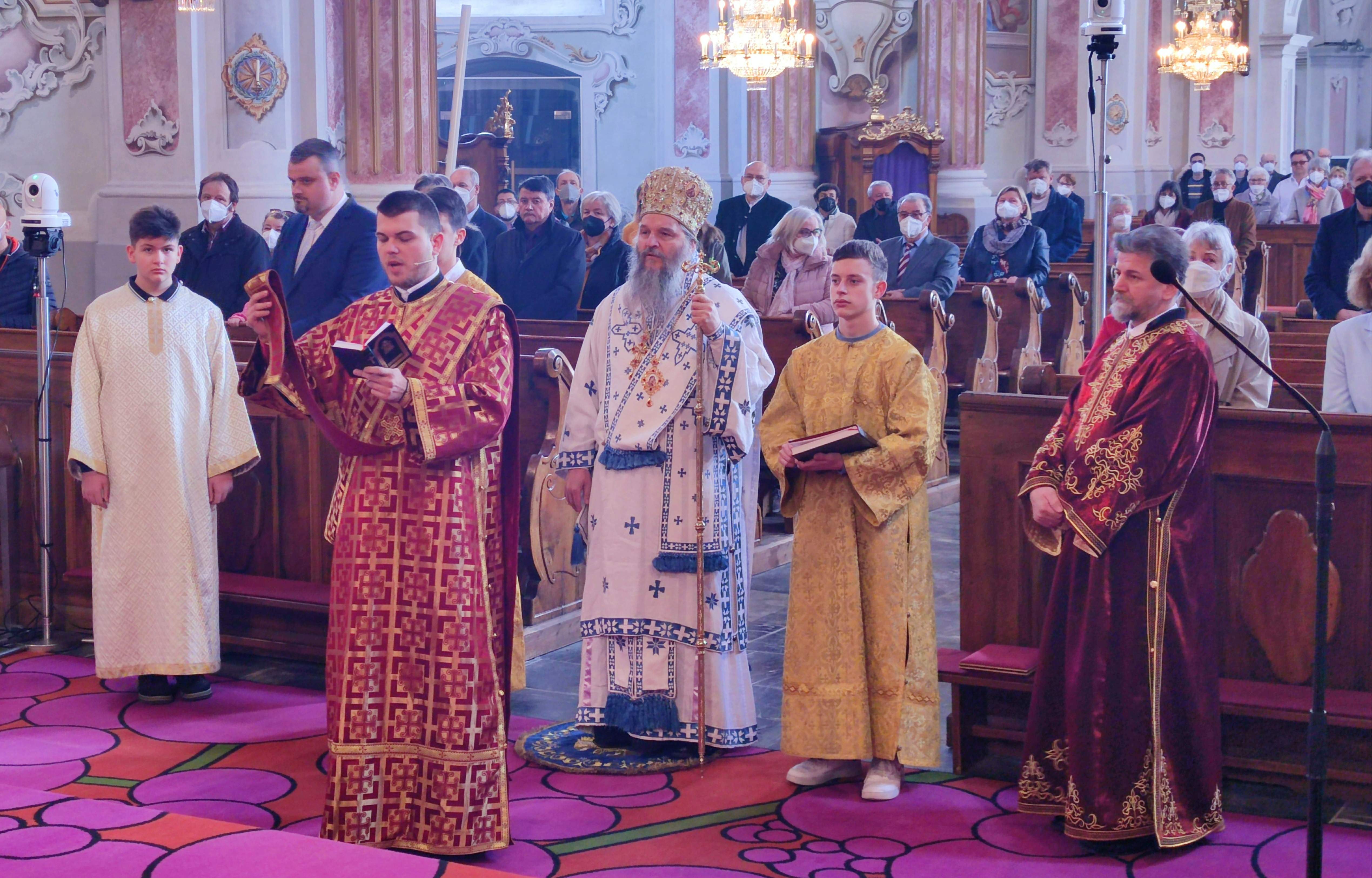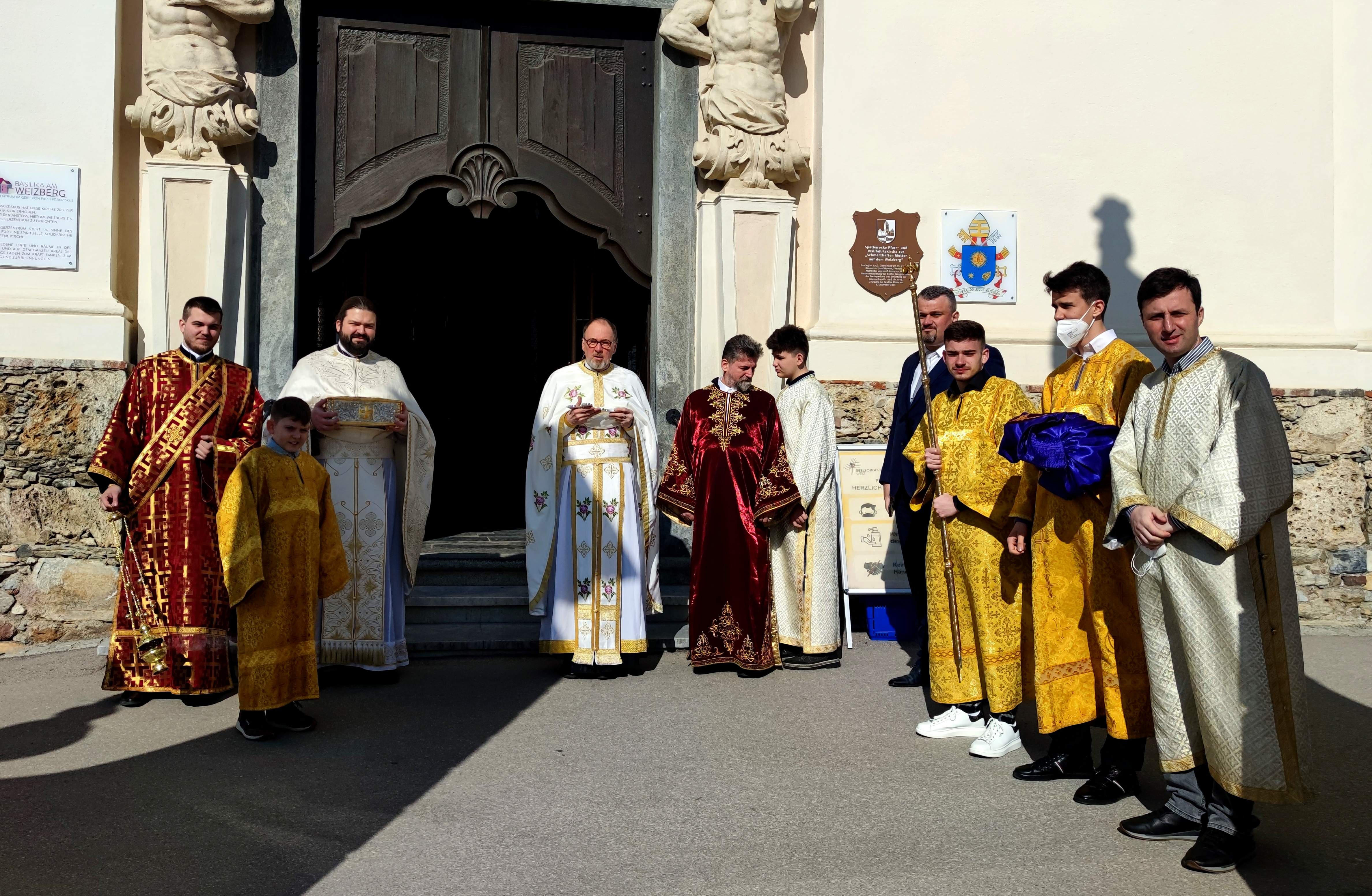 У недељу, 27. марта 2022. године, Владика Андреј je у Базилици ходочашћа одслужио Божанствену литургију Светог Василија Великог, уз саслуживање јерејâ Романа Фишера и Филипа Милуновића. Прислуживао је ђакон Ђорђе Мићић из Линца, уз учешће чтечева из Беча. Литургији је присуствовао наш српски верни народ, али и значајан број римокатоличких верника који су већ раније били обавештени да ће се тога дана у Базилици одржати православна Литургија. Светој чаши су приступили искључиво православни верници, а присутни инославни нису крили своје одушевљење због лепоте православног богослужења, те су на крају службе наградили Мешовити хор Епархије, аплаузом и многим комплиментима.