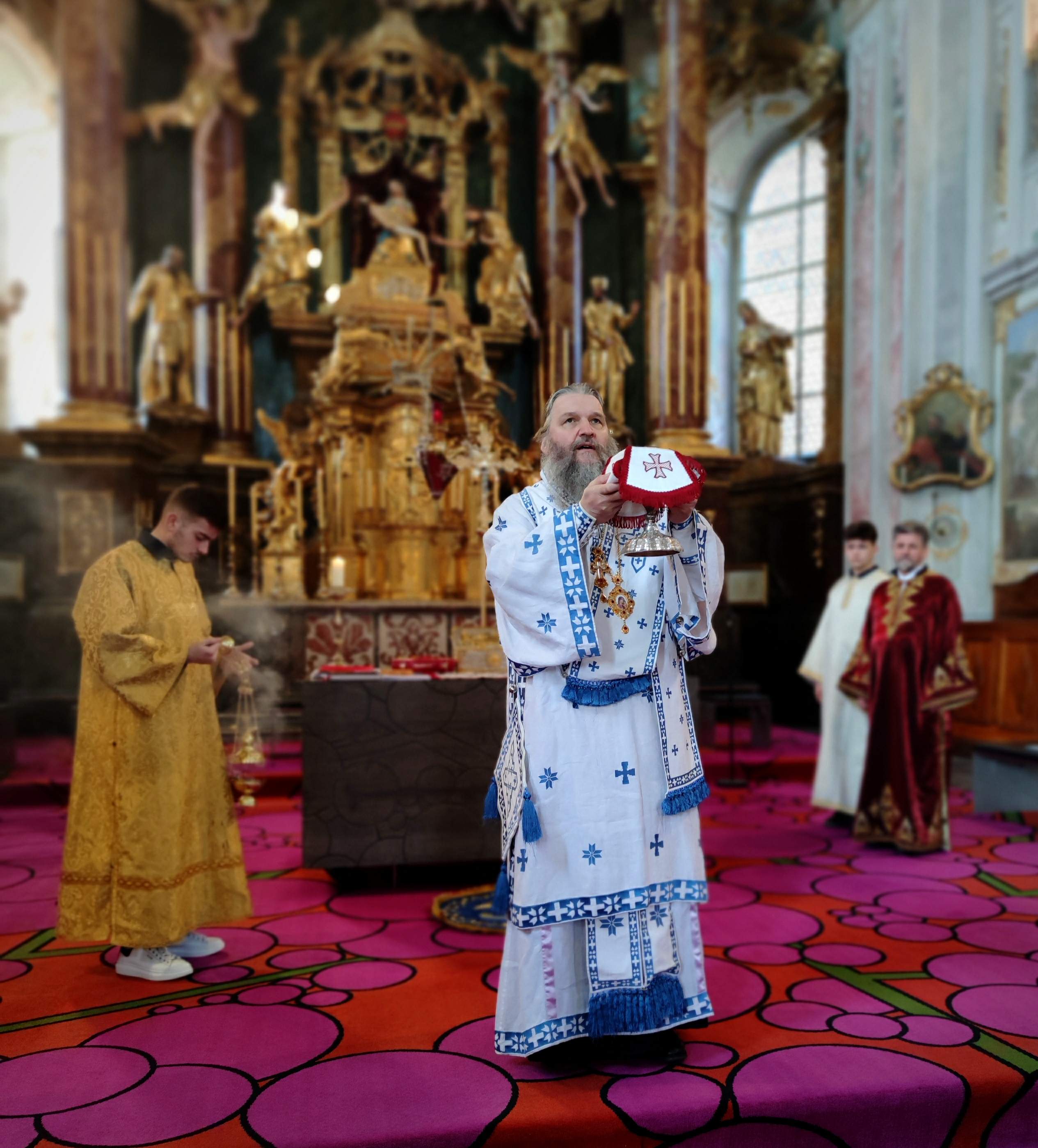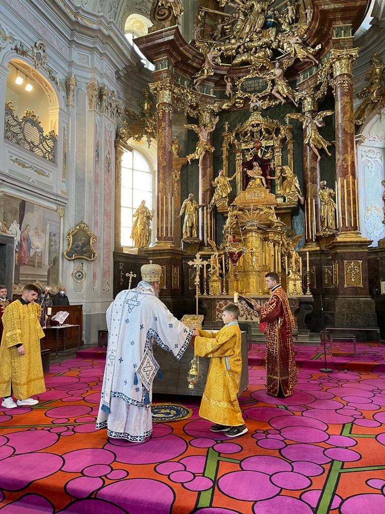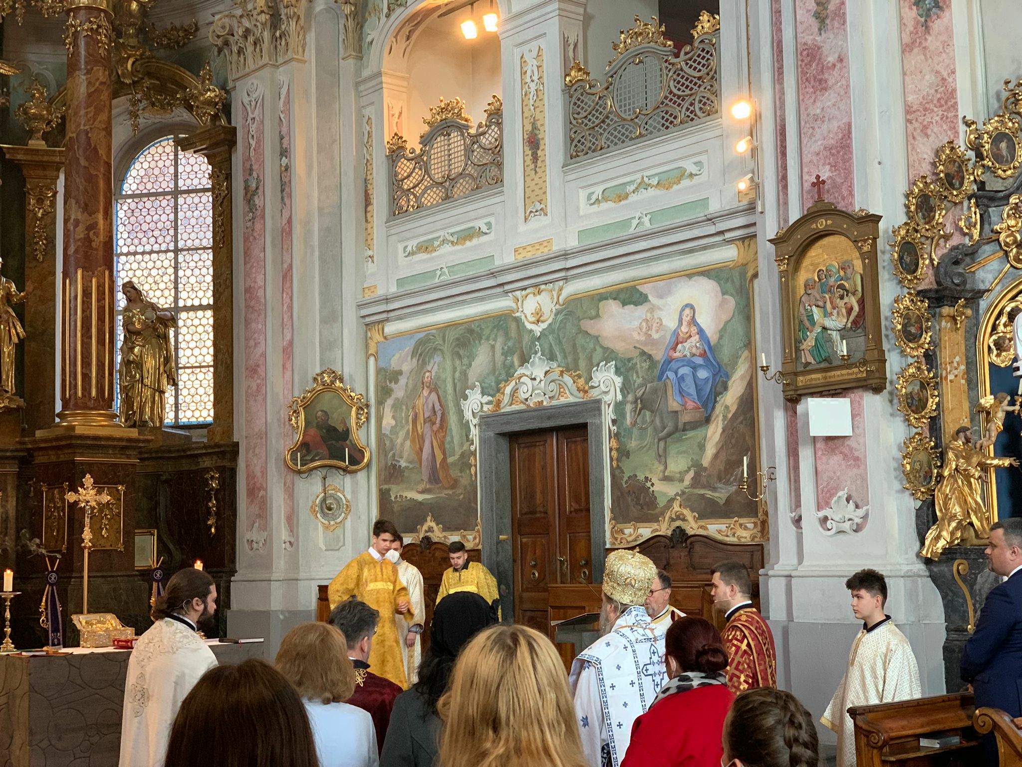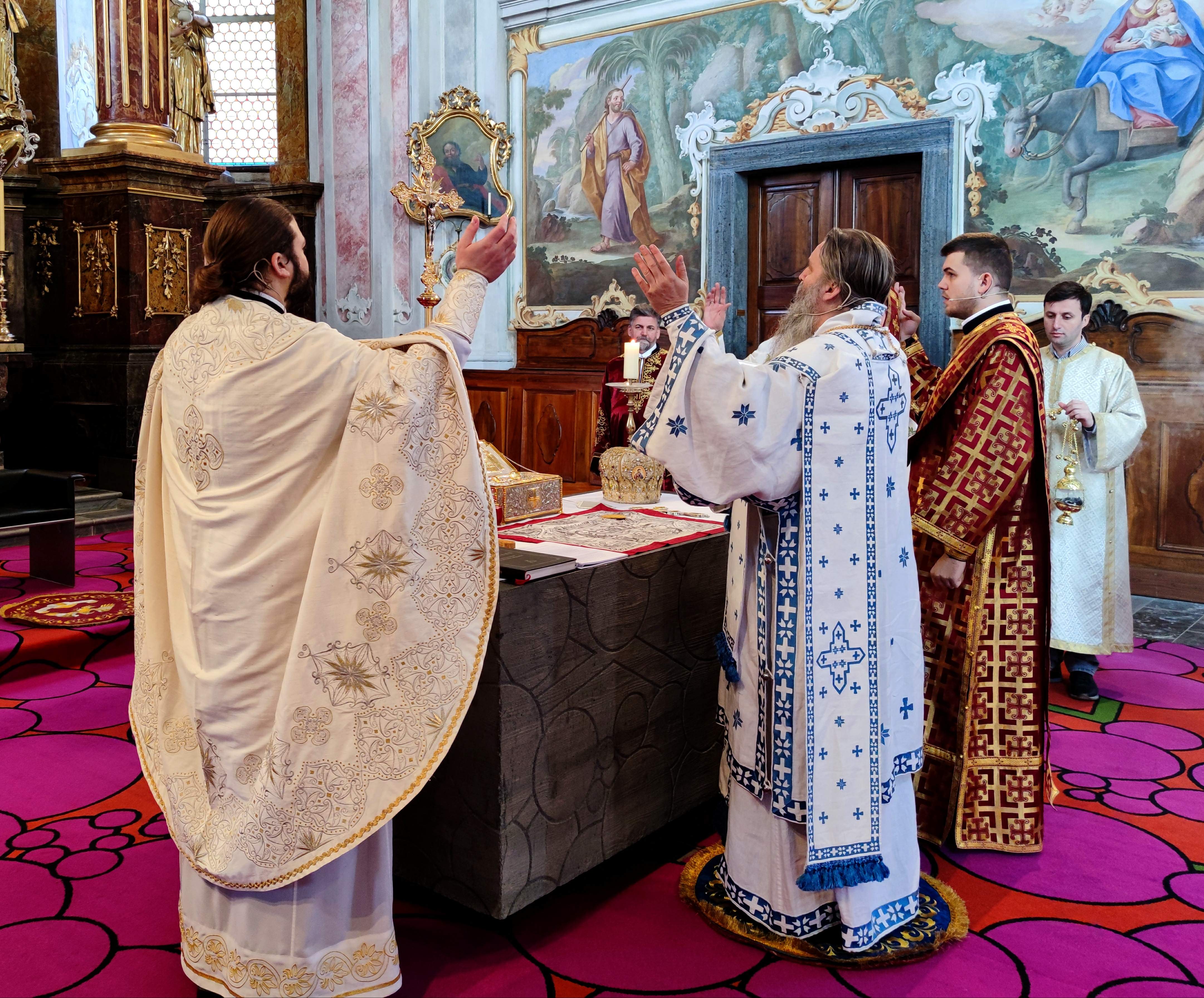 У недељу, 27. марта 2022. године, Владика Андреј je у Базилици ходочашћа одслужио Божанствену литургију Светог Василија Великог, уз саслуживање јерејâ Романа Фишера и Филипа Милуновића. Прислуживао је ђакон Ђорђе Мићић из Линца, уз учешће чтечева из Беча. Литургији је присуствовао наш српски верни народ, али и значајан број римокатоличких верника који су већ раније били обавештени да ће се тога дана у Базилици одржати православна Литургија. Светој чаши су приступили искључиво православни верници, а присутни инославни нису крили своје одушевљење због лепоте православног богослужења, те су на крају службе наградили Мешовити хор Епархије, аплаузом и многим комплиментима.