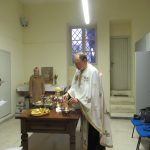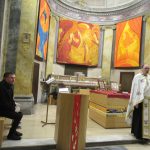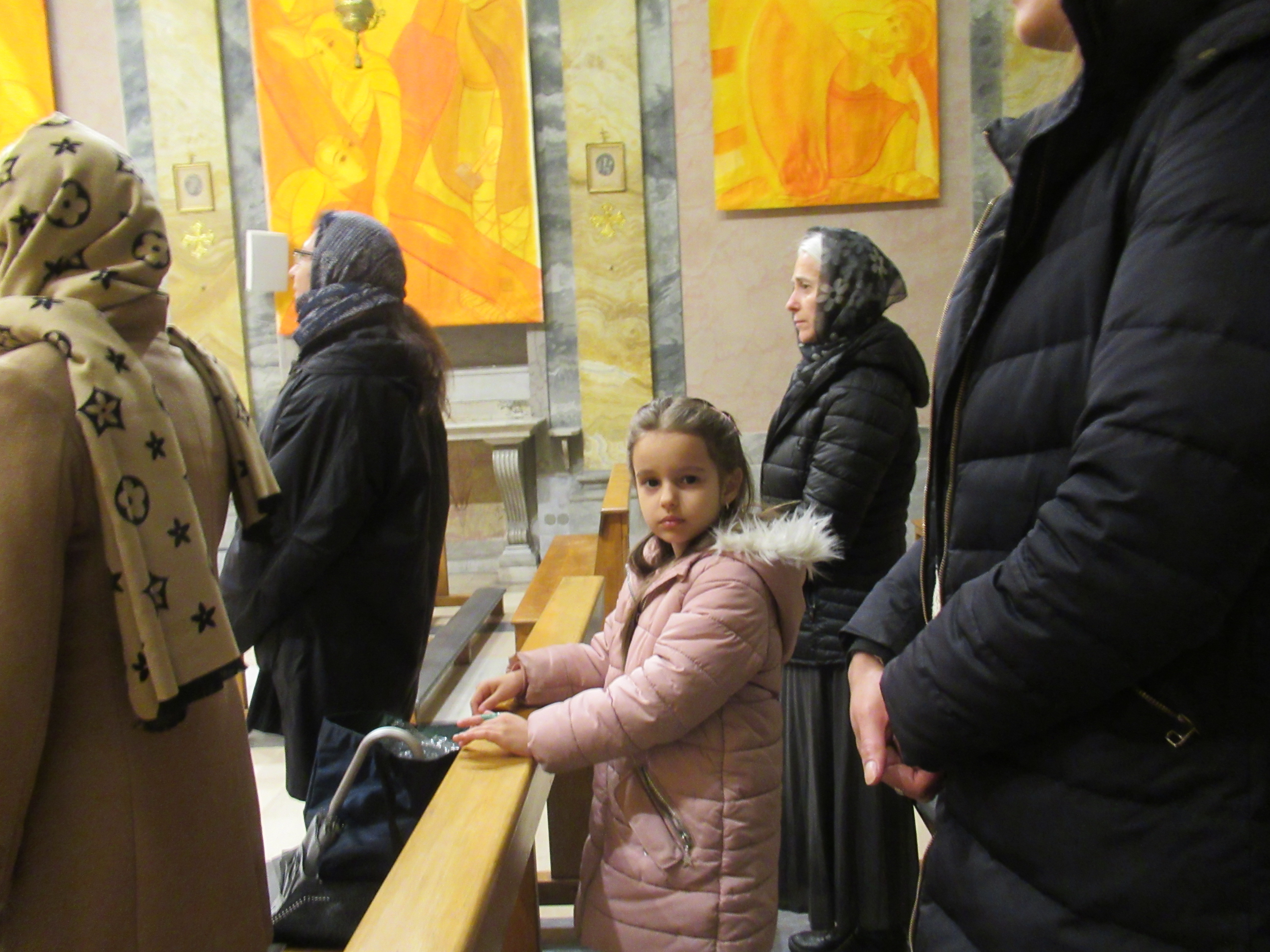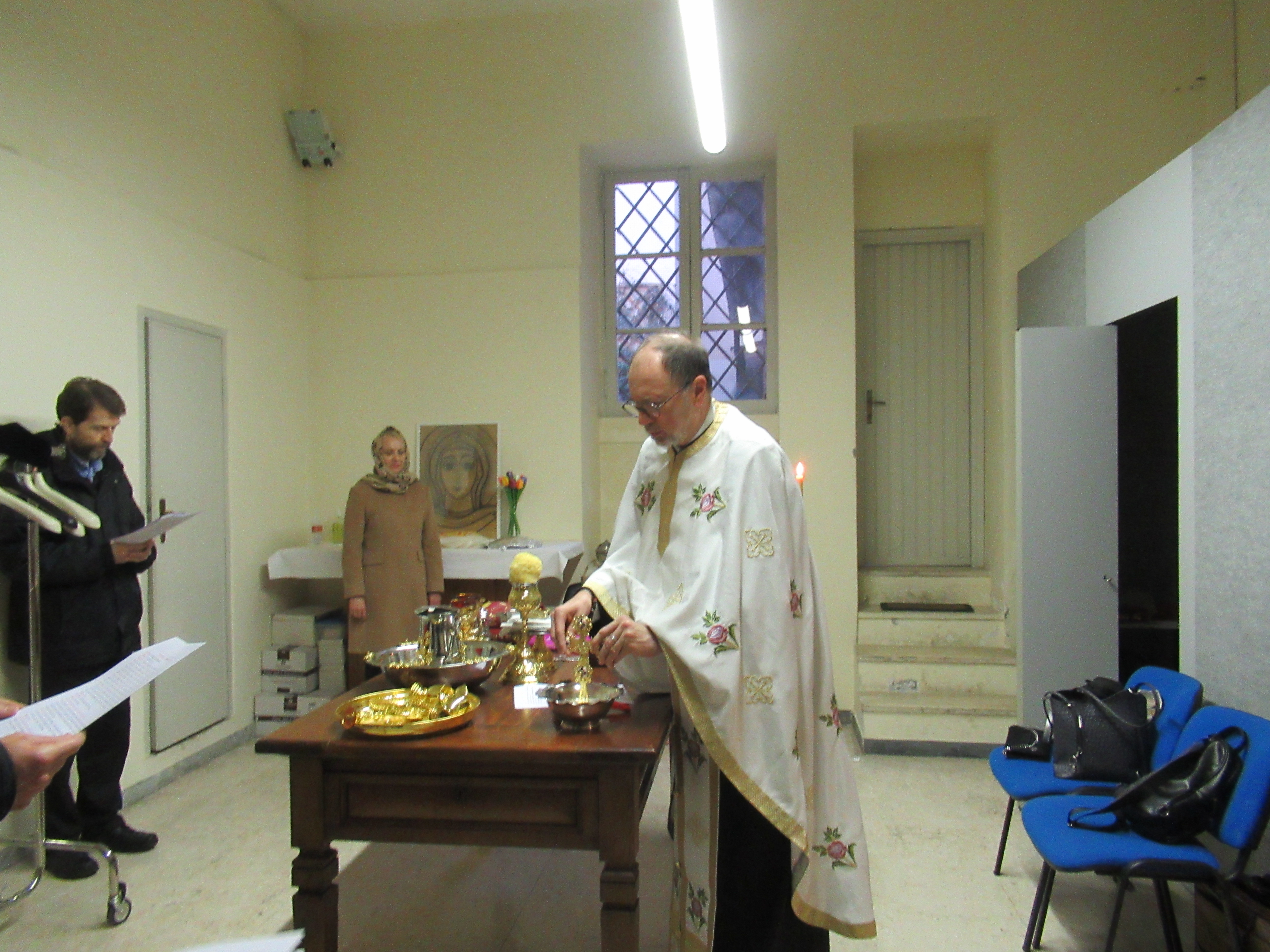 Током викенда, 2. и 3. априла, свештеник Роман и попадија Наталија дошли су у Рим да са римском парохијом прославе богослужења Четврте недеље Великог поста. После Вечерњег богослужења, 2. априла, које је отац Роман одслужио са појцем Стеваном Минићем и аколитом Иваном Плавшићем, отац Роман је служио водоосвећење. Нови свети сасуди, нова јеванђеља и нове књиге за службу потом су благосиљани тек освећеном водом.