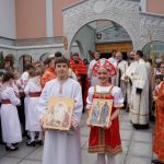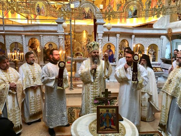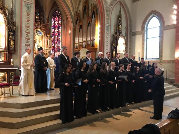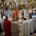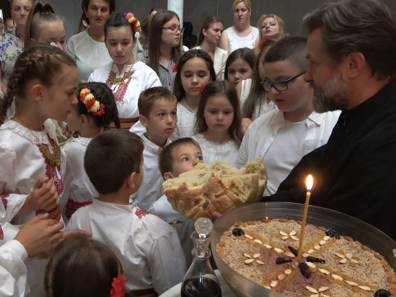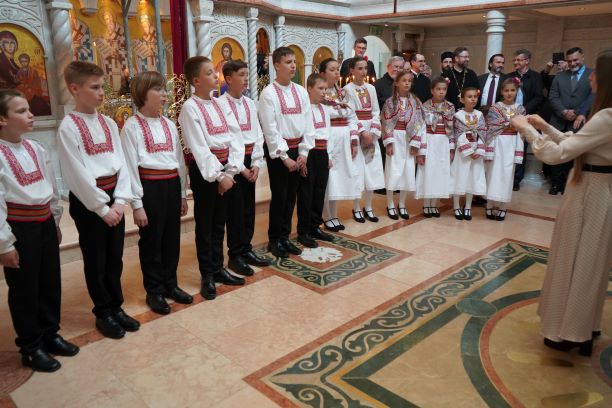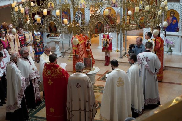 Свештенство Светоуспенског храма: протојереји-ставрофори Симеун Продановић, Ненад Михајловић и Мирослав Симијоновић, са гостом из Србије, игуманом Мардаријем из манастира Св. Јована Богослова код села Поганова, дочекали су са децом и родитељима испред храма Епископа Андреја и протиницу Маријану Ћилерџић. На вечерњем богослужењу је началствовао гост из Србије, игуман Мардарије а певао је црквени дечији хор ”Богородичин” са диригентом Дариом Крутои. За певницом је певао Владика Андреј са братством Светоуспенског храма.