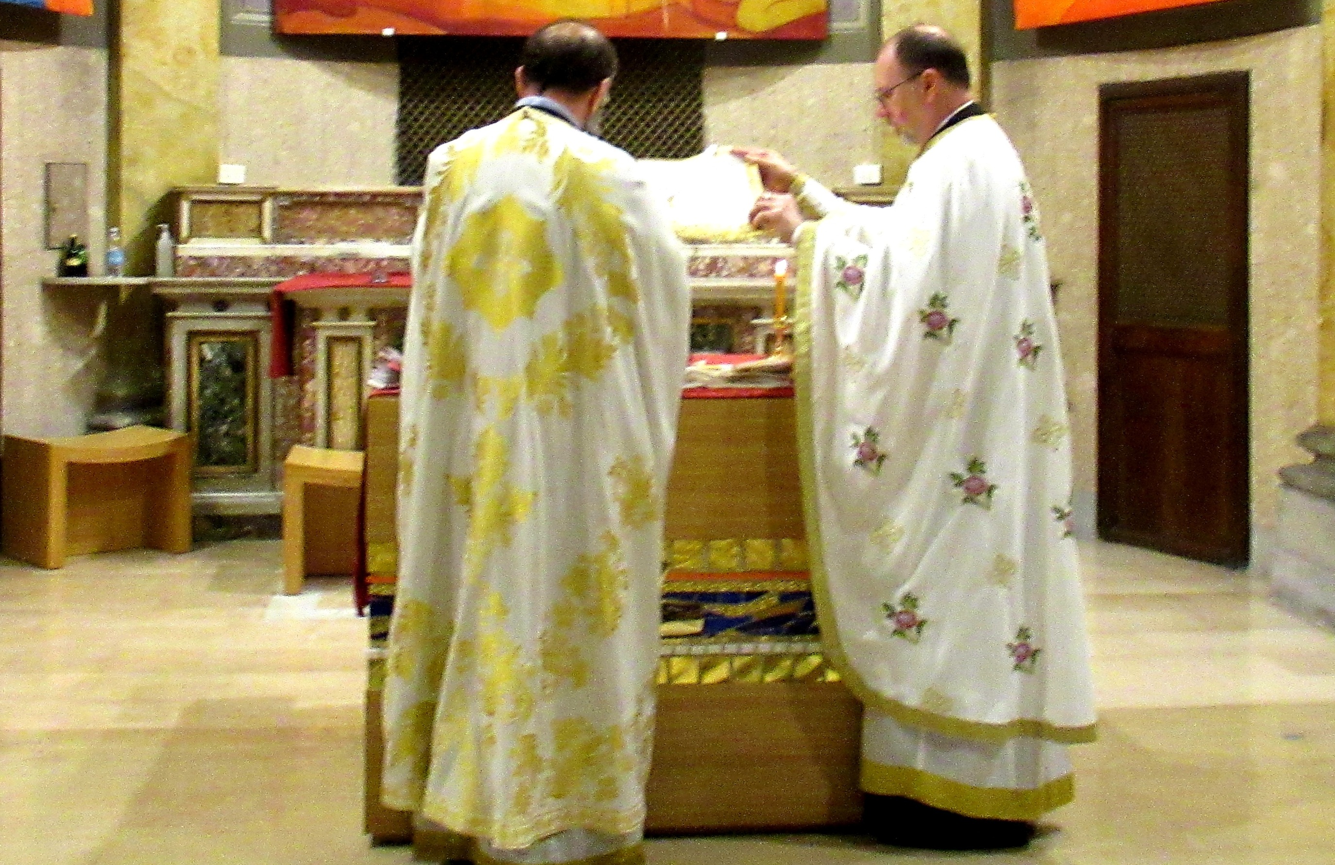 У недељу 6. марта, пароси су одслужили Свету литургију. Свечаности допринели су др Милосав Ђоковић са појцима Иваном Плавшићем и Стеваном Минићем који су појали и неизменично испомагали и као чтечеви. Светој литургији присуствовало је око 30 верника, уз учешће Његове Екселенције Амбасадора Републике Србије при Светој Столици др Симе Аврамовића, бившег декана и дугогодишњег професора Правног факултета у Београду. Исто тако, учешће у литургији узела је гђа Саша Тодоровић-Колунџија, конзулка при Амбасади Републике Србије у Италији.