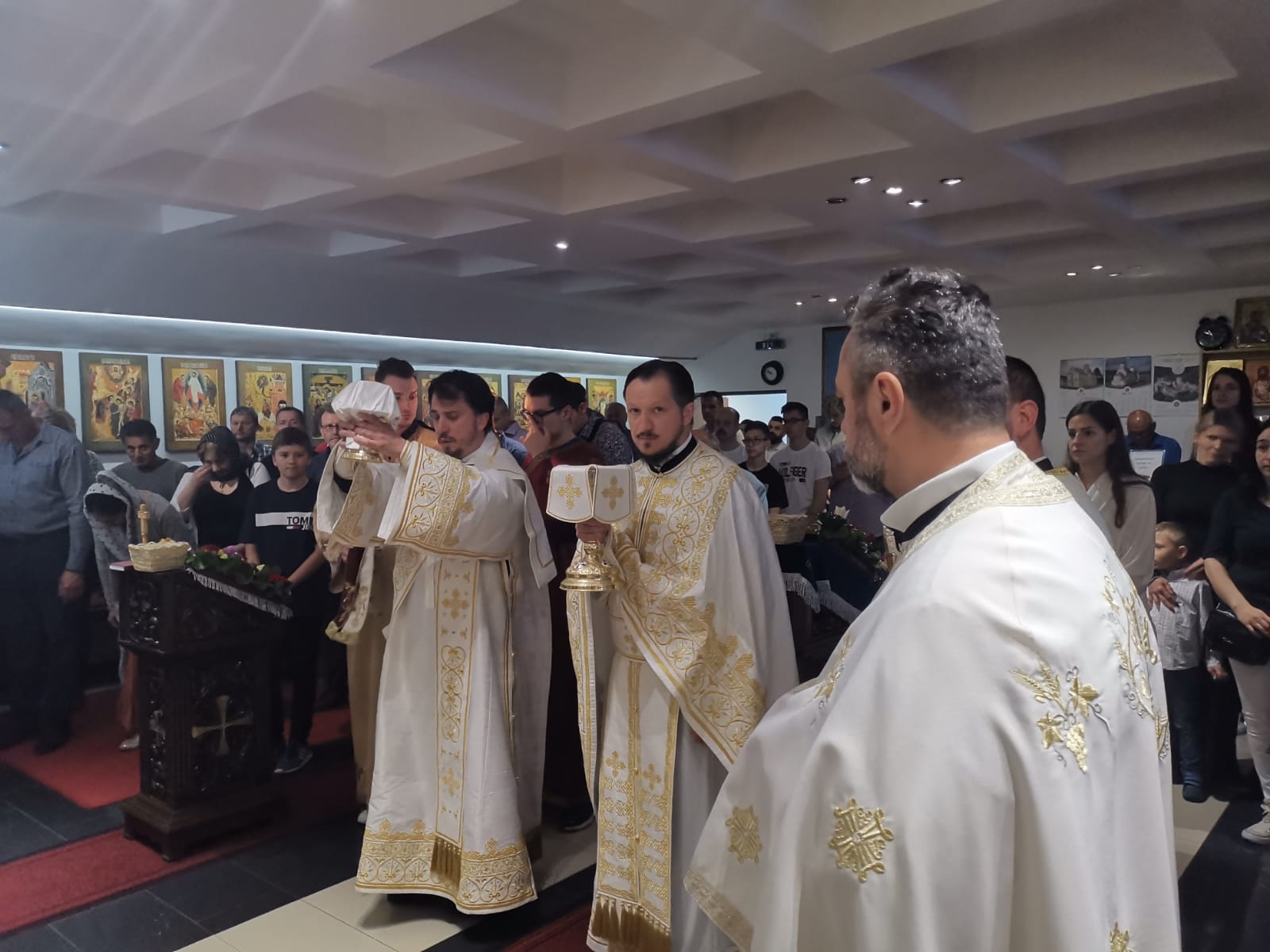 Света Архијерејска литургија служена је у капели Светога цара Константина и царице Јелене са почетком у 10:00 часова. Тој свечаности су присуствовали и саслуживали о. Бране Сарић из Санкт Галена, о. Никола Баловић из Фелдкирха, надлежни парох у Брегенцу о. Горан Ерић и ђакон о. Иван Толић из Ивердона.