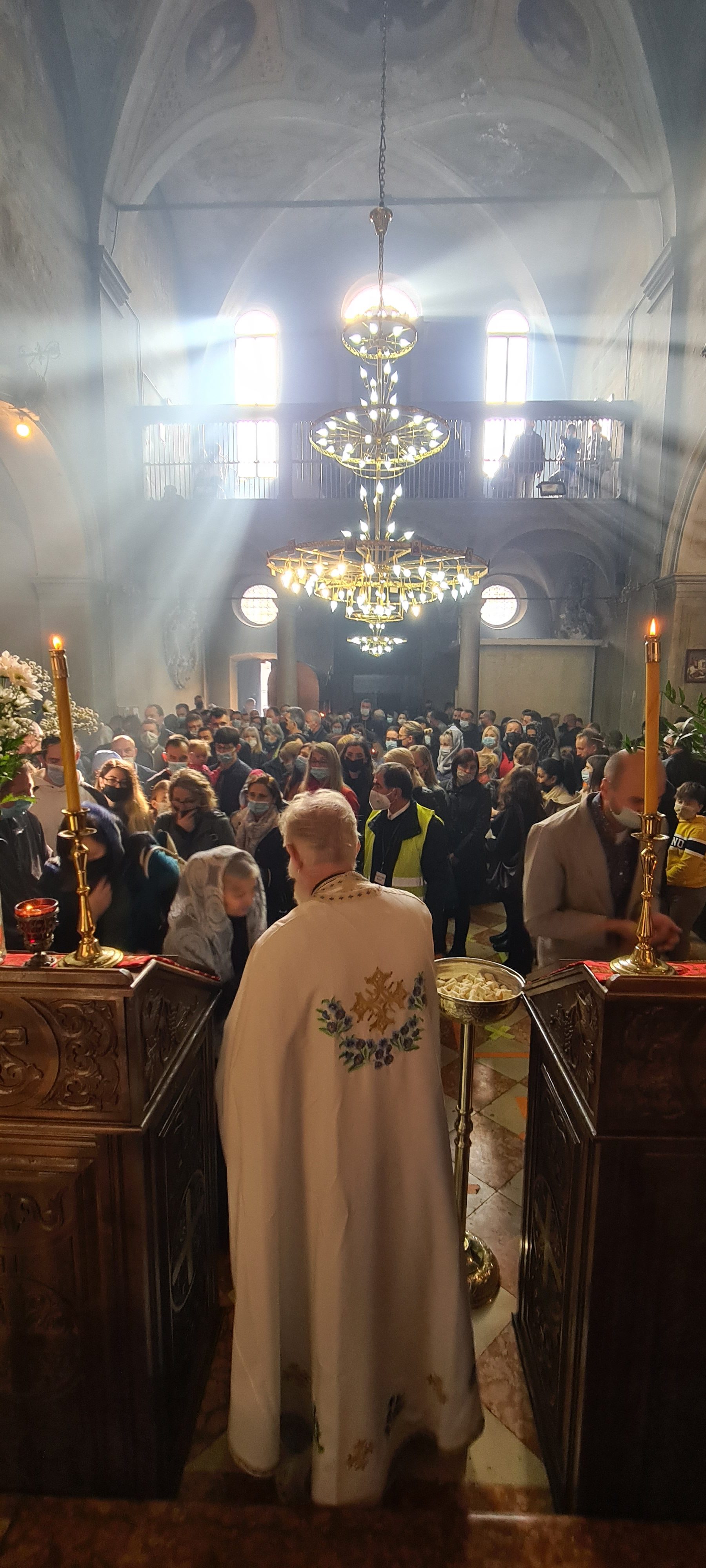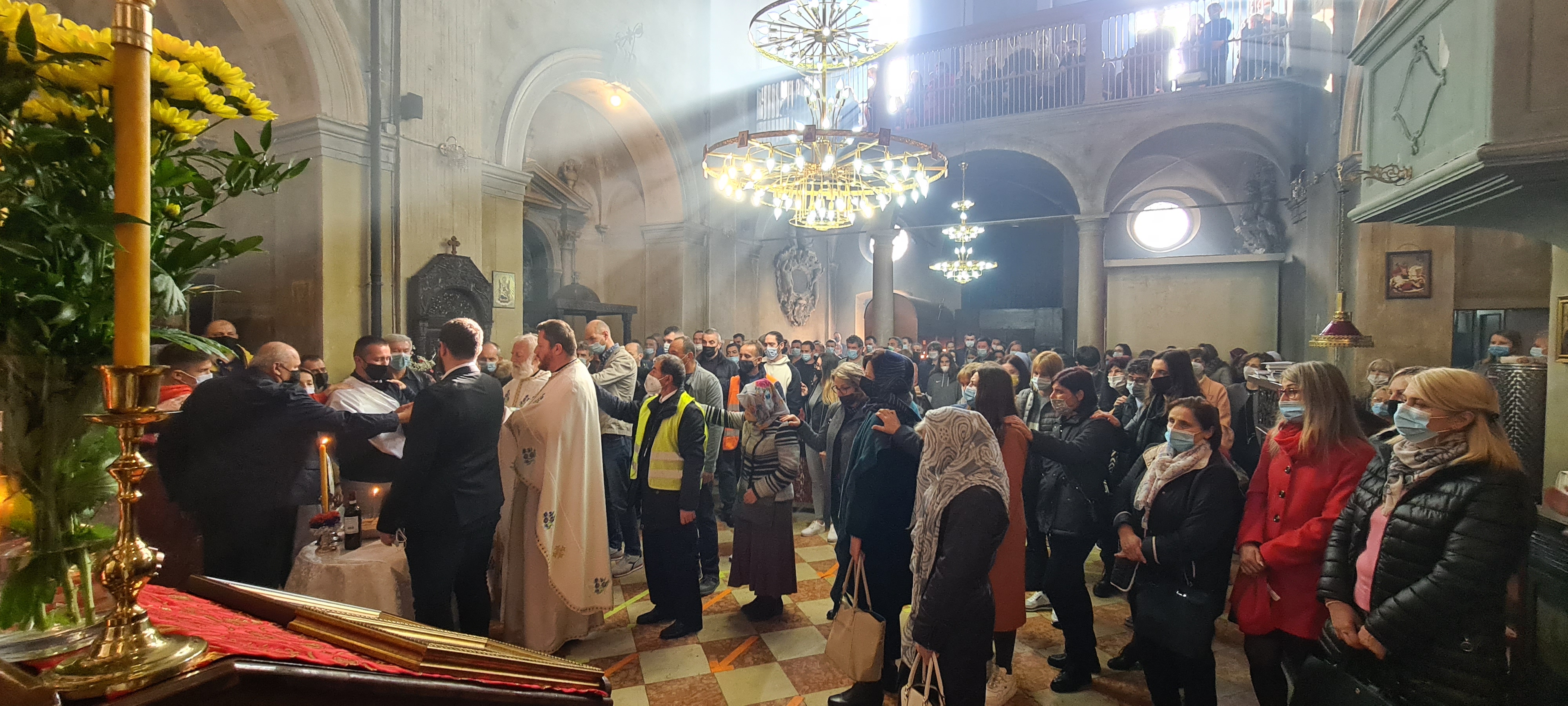 Благословом Његовог Преосвештенства Епископа аустријско-швајцарског г. Андреја, светом Литургијом на сам дан празника 31. октобра 2021. године началствовао је протојереј-ставрофор Рашко Радовић, парох у Трсту уз саслужење надлежног свештеника протојереја Далибора Ђукића. Светој Литургији присуствовали су верници из свих крајева парохије, као и уважени гости, представници свих активних парохија са територије Италије.