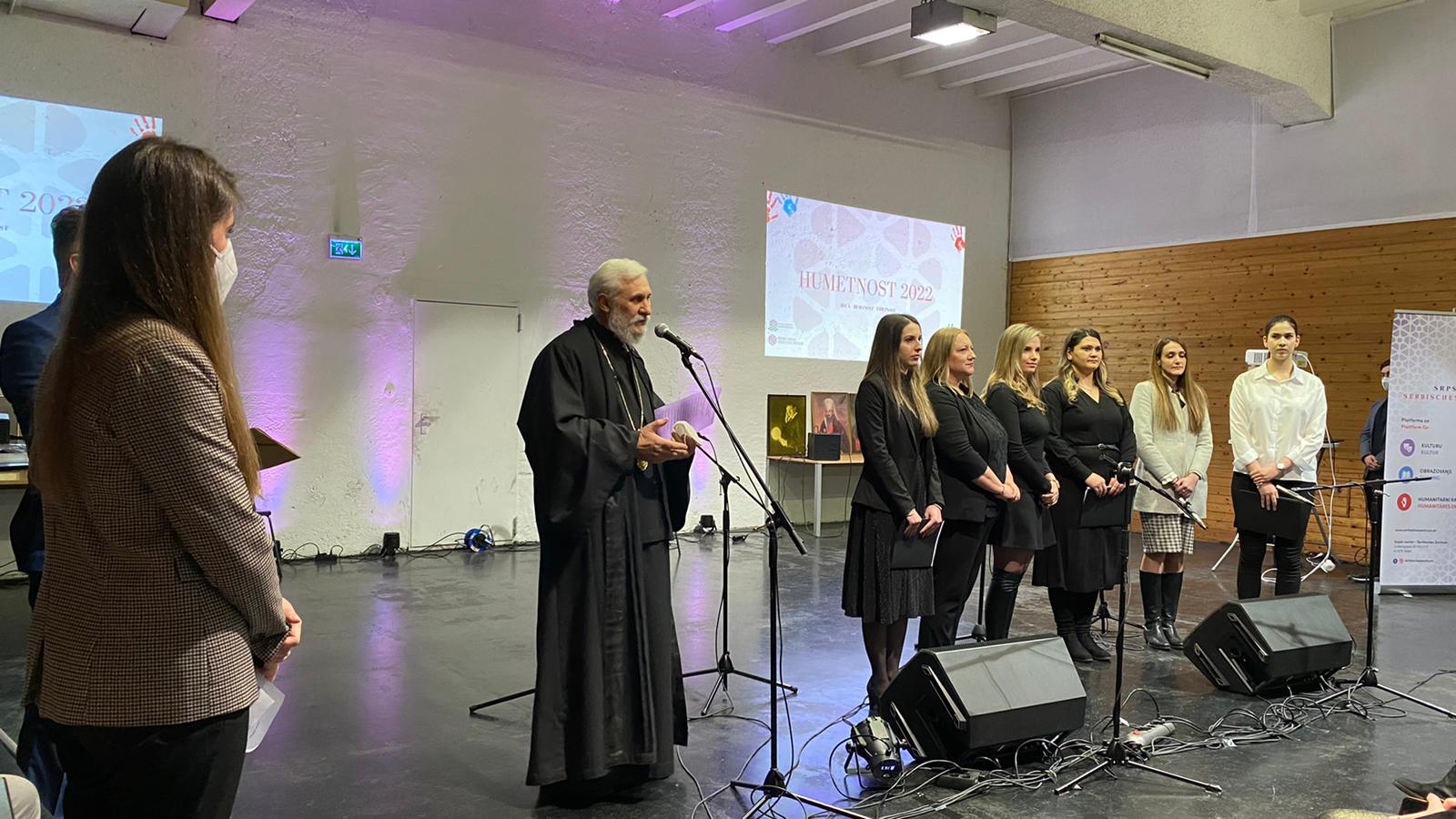 У име Епископа Андреја организаторе је поздравио протојереј-ставрофор Петар Пантић, старешина Богородичиног храма који је похвалио организаторе зато што нису заборавили наш народ са Косова и Метохије, и пожелео да оваквим манифестацијама подстичемо наше младе на очување идентитета и неговање српске културе. То треба да нам помогне да се не отуђимо од свога народа, али и да се на најбољи начин, као отворени укључимо у аустријско друштво у коме живимо и стварамо. Прота је објаснио да хуманитарни рад код нас Срба, има своје библијско-црквене основе. Искрено човекољубље извире из истинитог богољубља. Вера и љубав према Богу јесте покретач и снага за љубав према сваком човеку, а чињење добрих дела и помагање ближњих јесте потврда праве и истините вере и љубави.